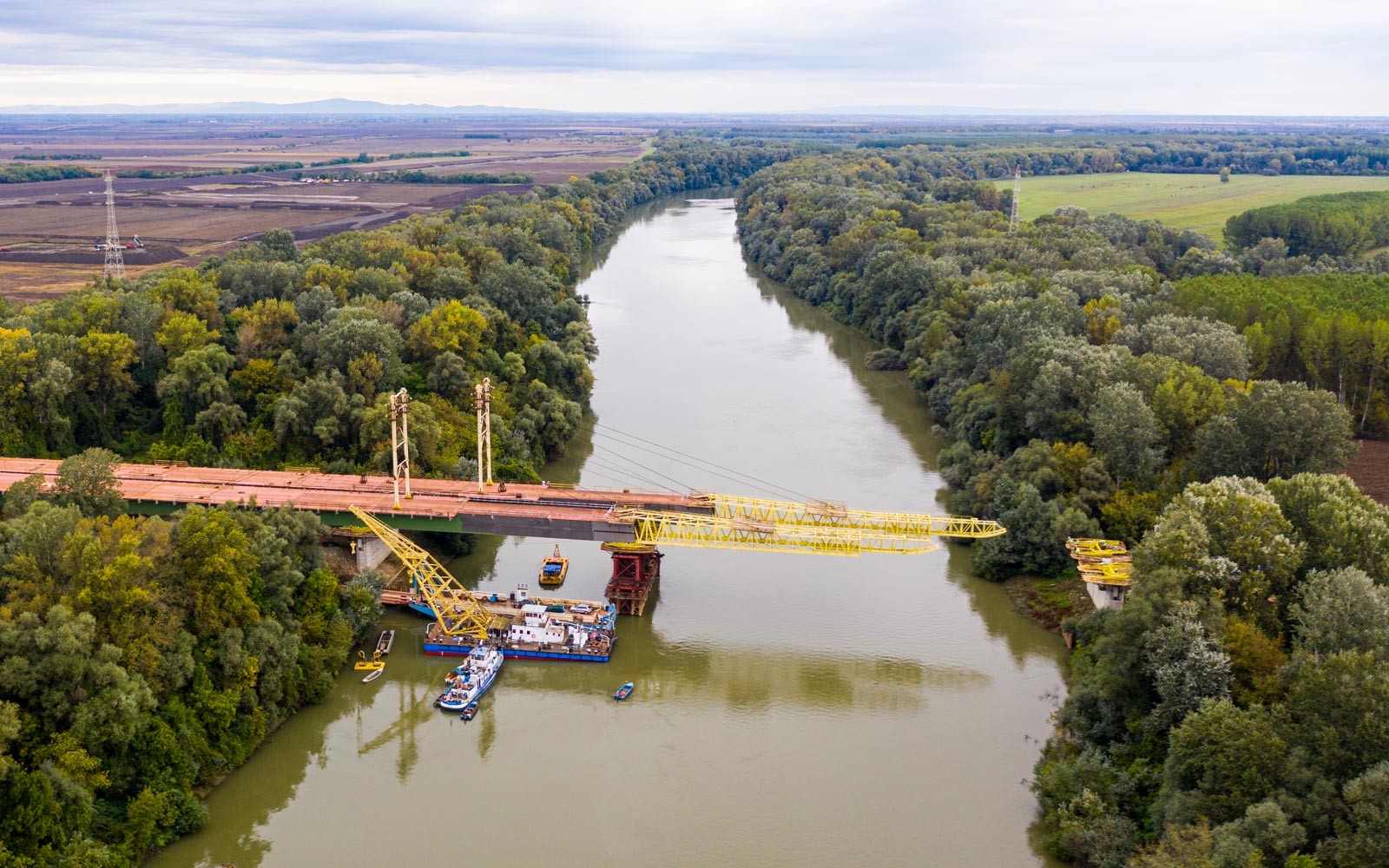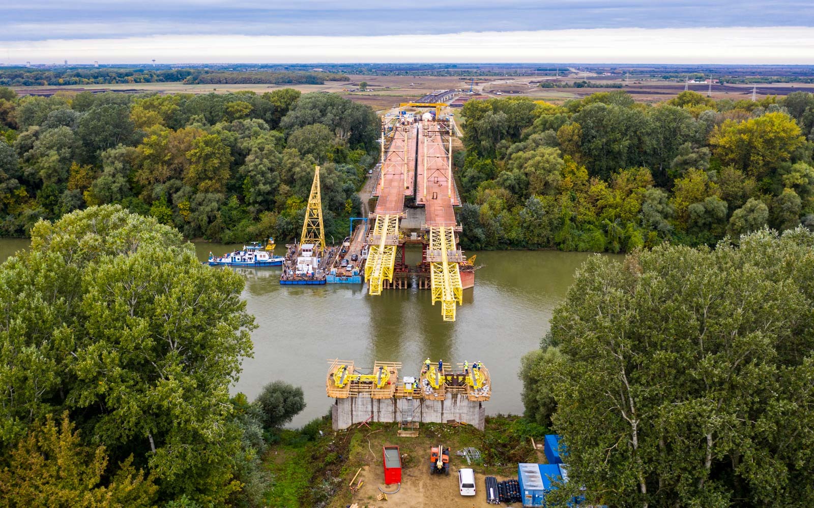 A mai bejáráson az hosszabb híd szerkezetének betolási folyamatát élőben tekinthette meg a sajtó, melynek során az átkelő vége közelebb érkezett ahhoz, hogy átérjen a Tisza balpartjára.