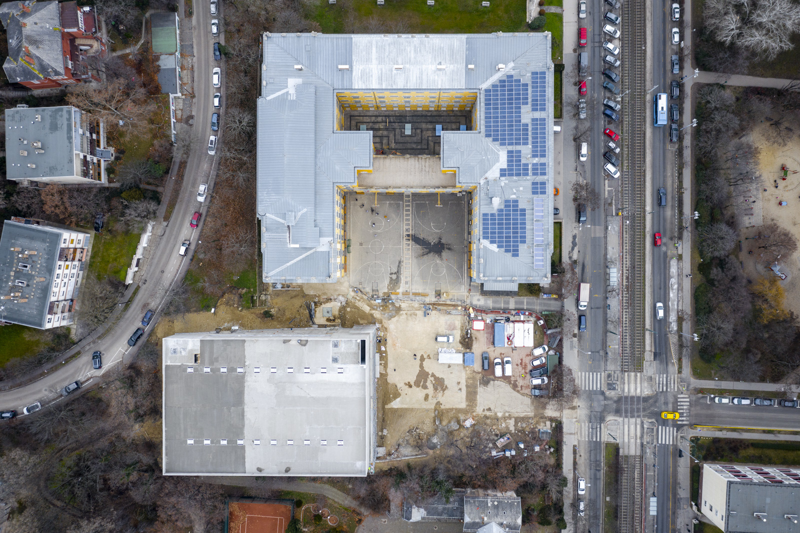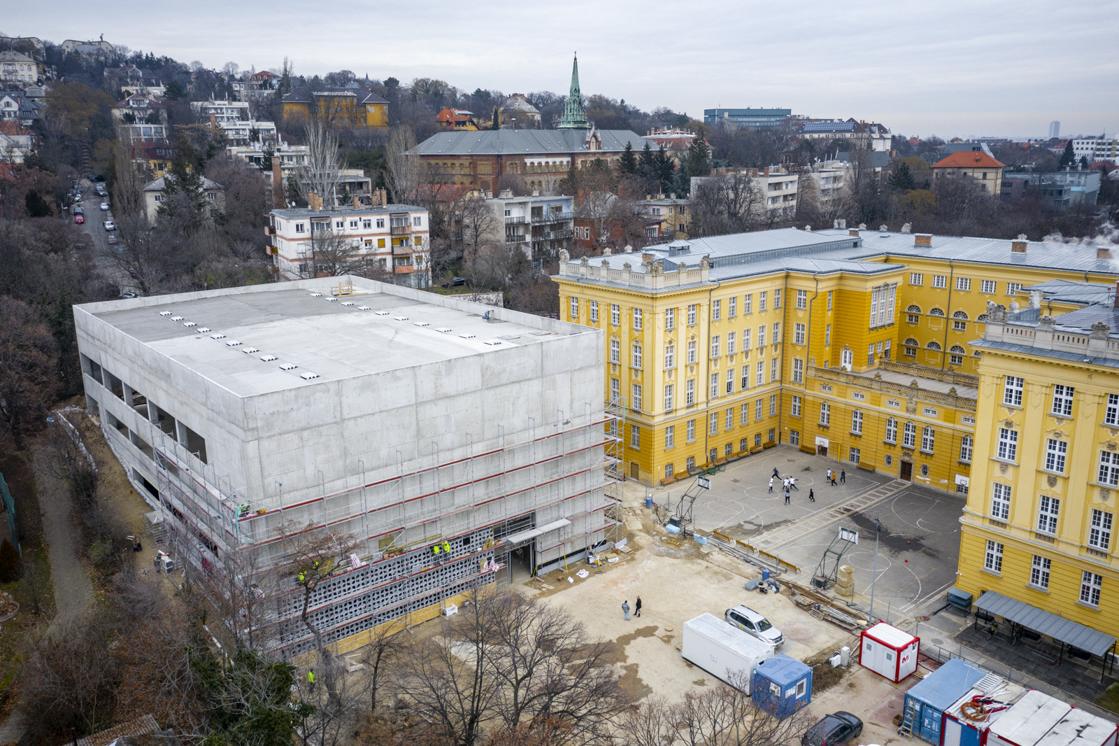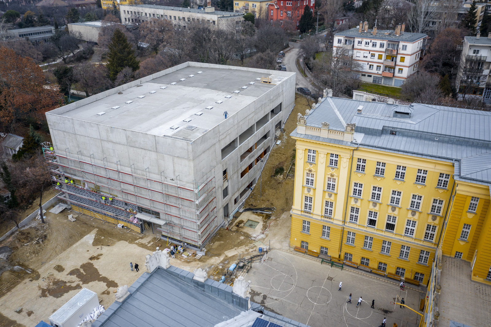 A több mint százéves intézmény műemlékjellegű főépületének korszerűsítése mellett egy különleges kialakítású sportcsarnok is épül a Horváth Építőmester Zrt. és a Possibuild Kft. által kivitelezett nagyszabású projektben.