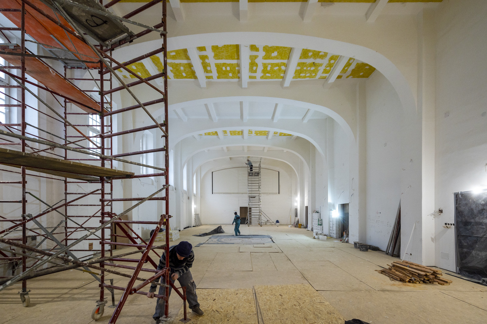 Jelenleg a csarnok szerkezetkész, tervezett belső kialakításából még nem sok látható, de a burkolatokról már megszületett a döntés.