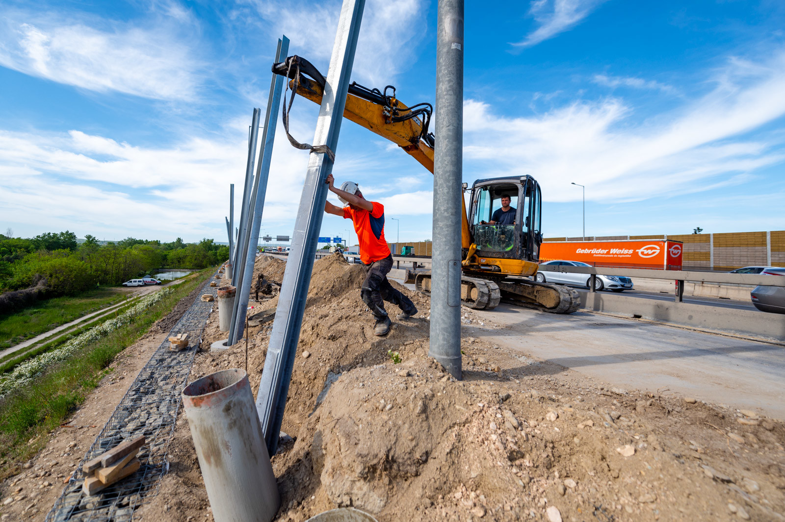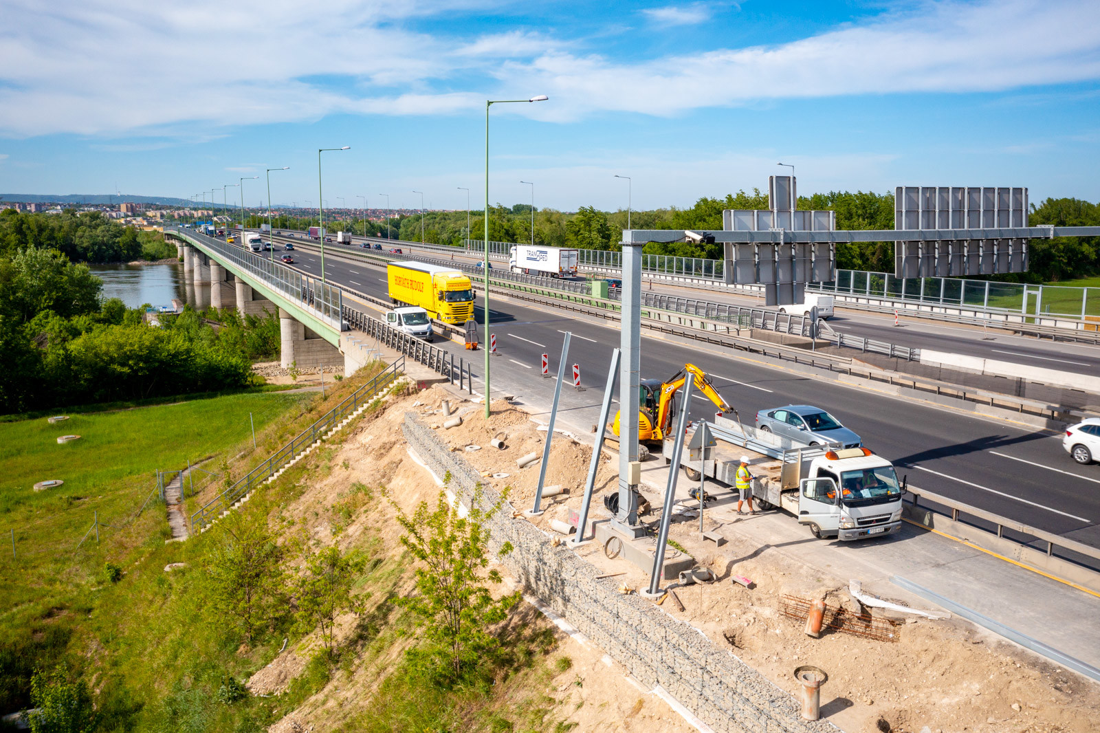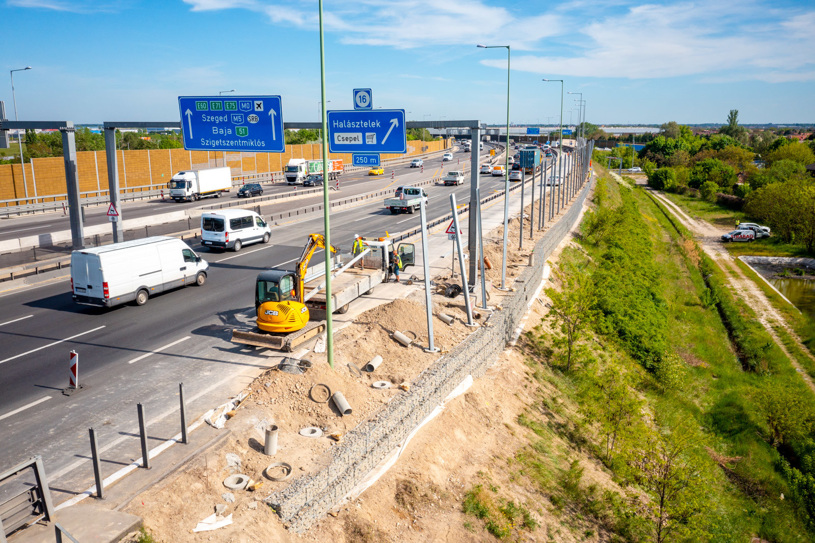 Budapest elkerülő útjának fontos hídján a zajvédő fal építése hamarosan befejeződik, miközben párhuzamosan felkészülnek a későbbi munkálatokra.
