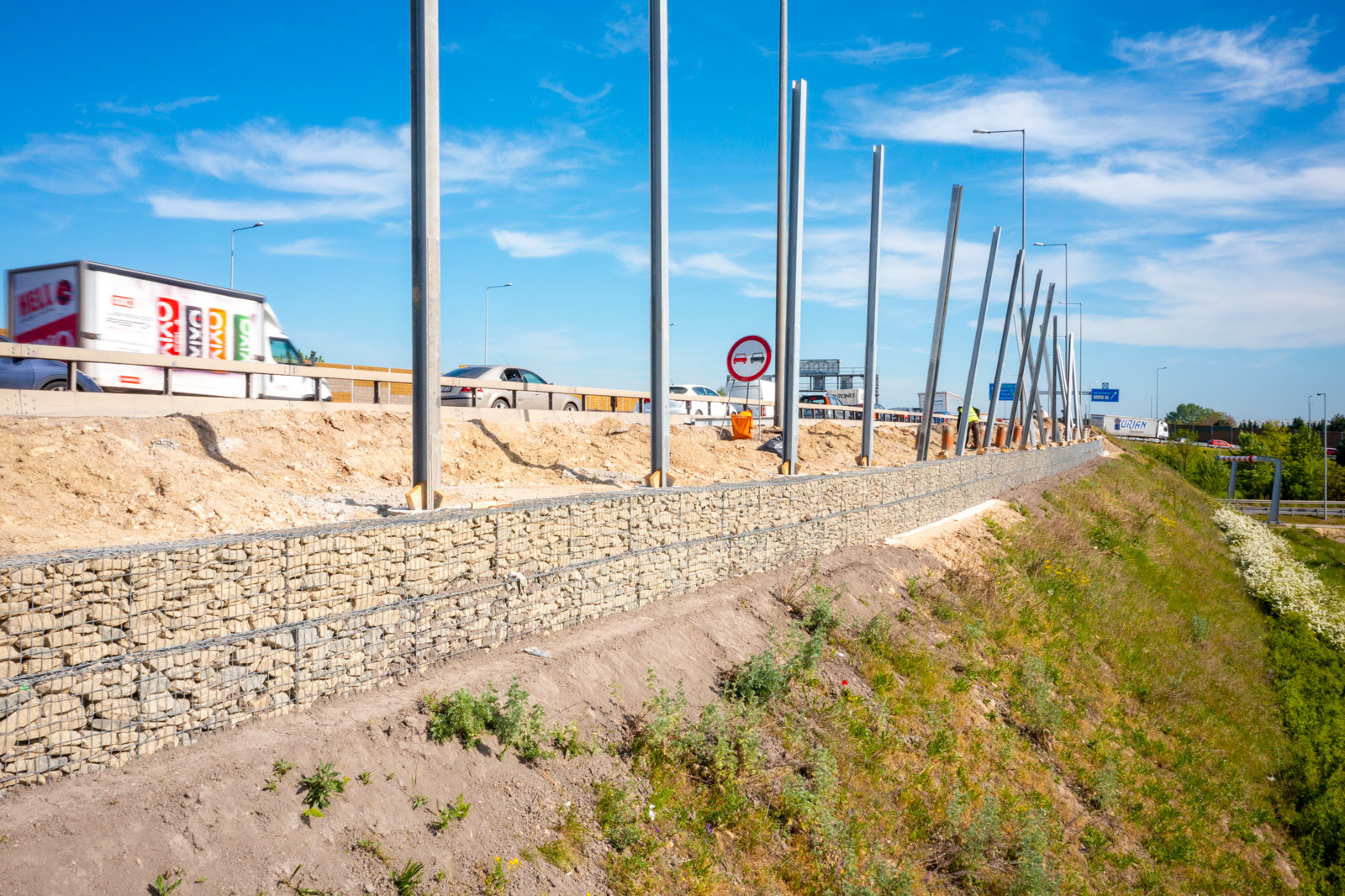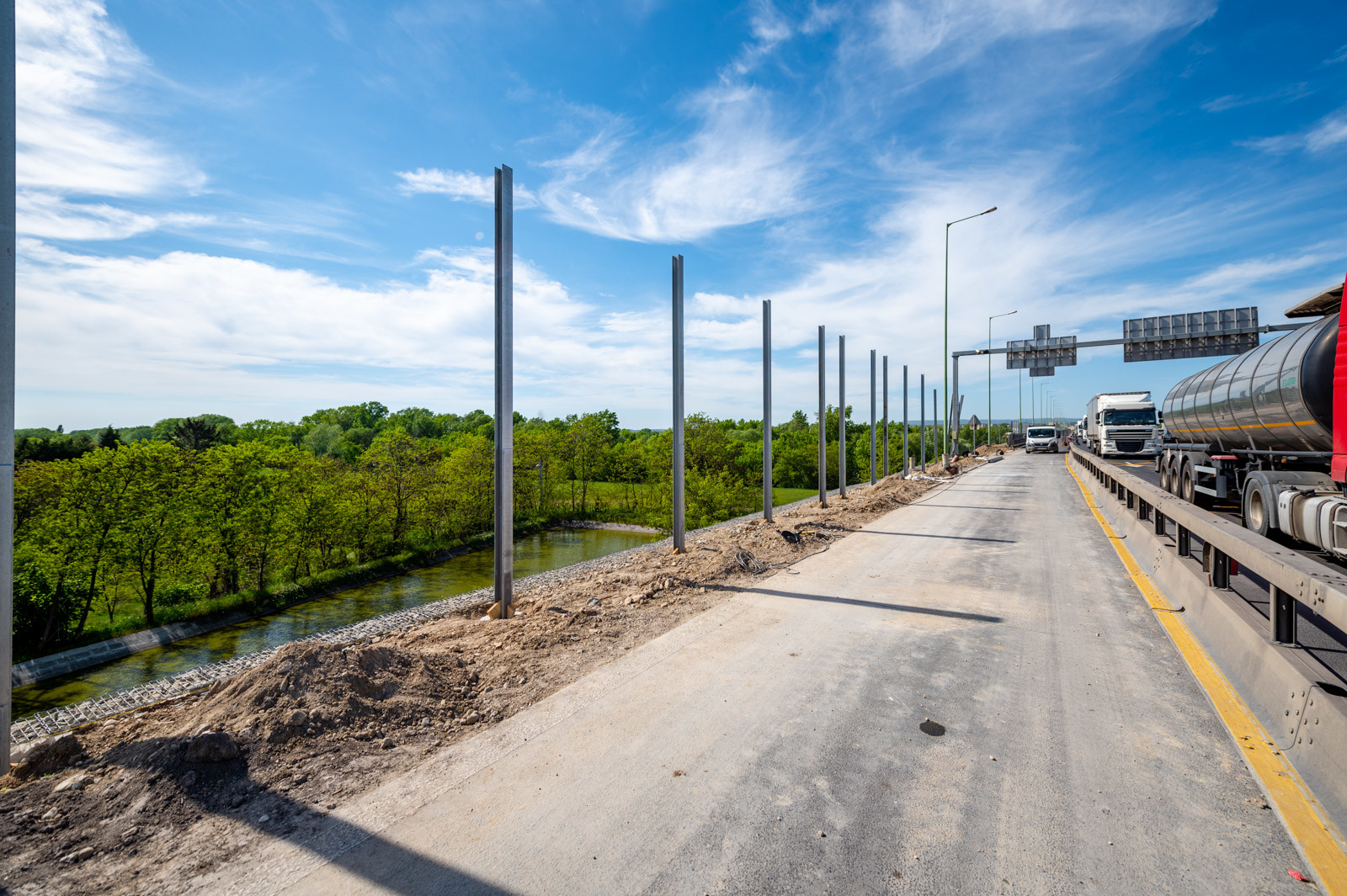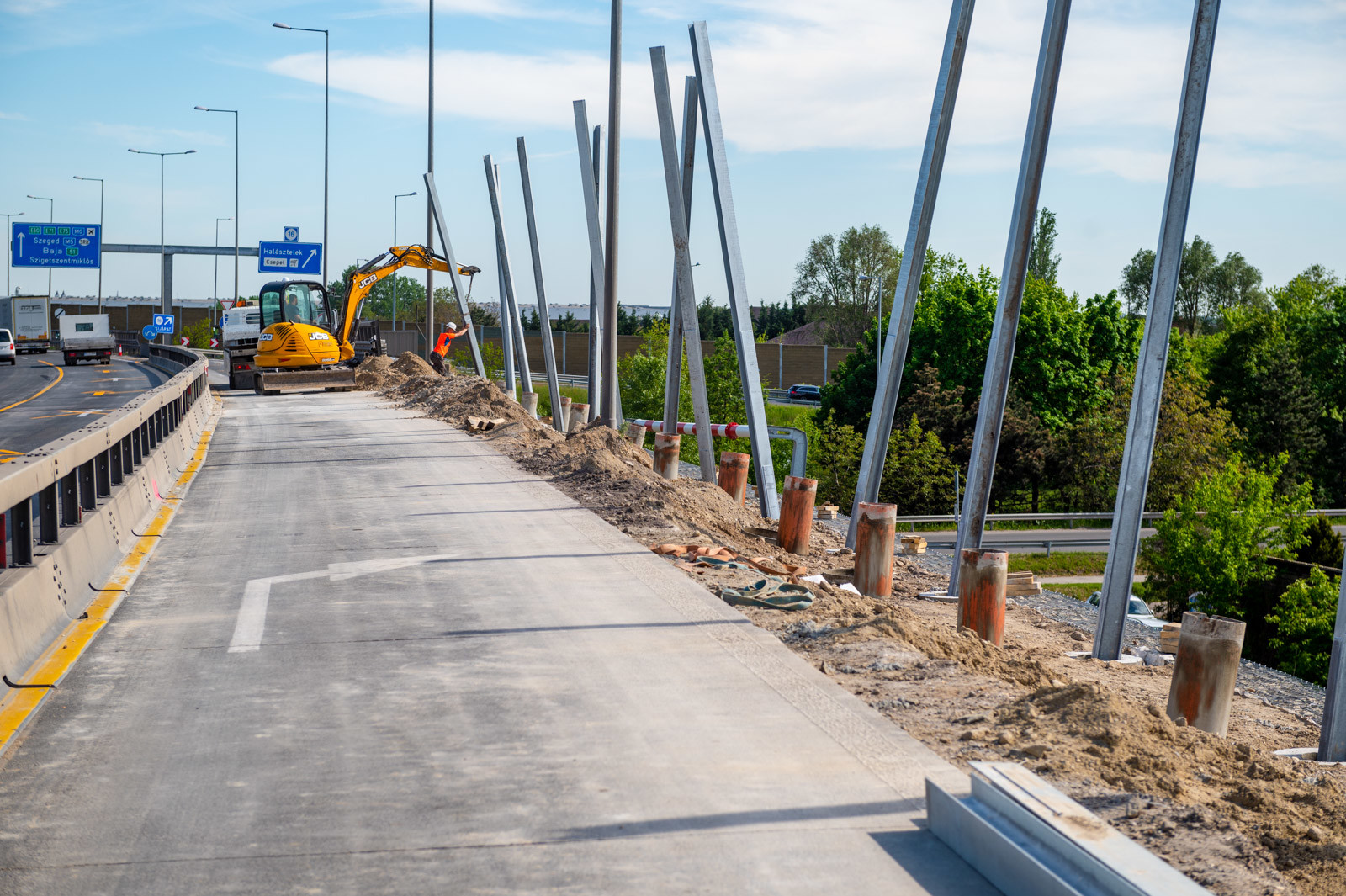 Azóta nemcsak a szerkezeten folytatódik a beruházás, hanem a projektben meghatározó részt képviselő burkolatfelújításhoz és közlekedési minőség fejlesztéshez kapcsolódó munkák is zajlanak. A zajárnyékoló falak építése is ez utóbbihoz tartozik.