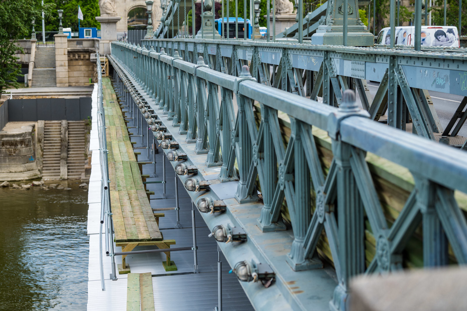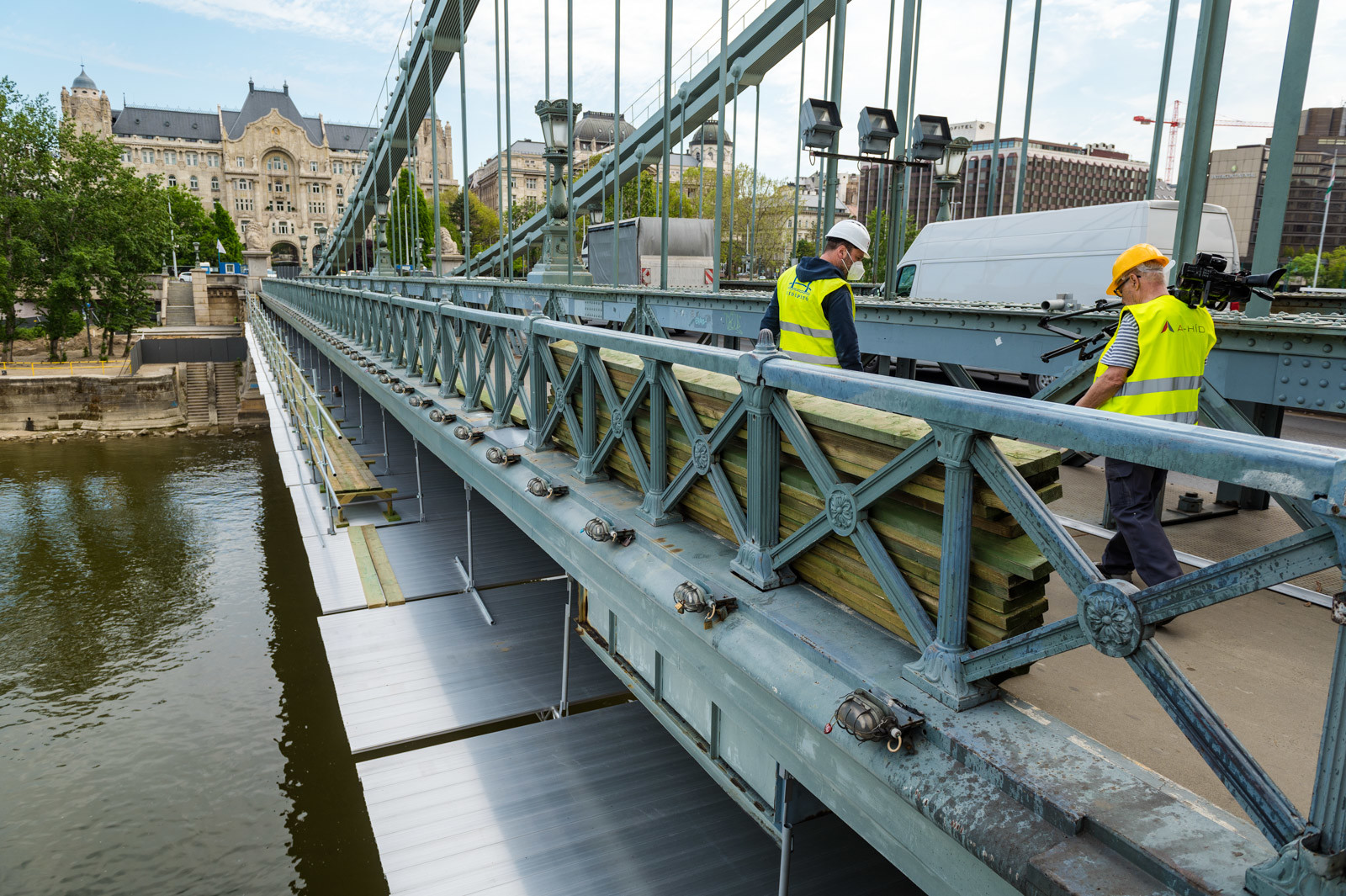 A Lánchíd felújításának folyamatáról többször beszámoltunk már, legutóbb akkor, amikor az A-Híd Zrt. átvette a teljes munkaterületet április közepén. A Lánchídon és környezetében javában tartanak a felújítást előkészítő munkák – derült ki a BKK lapunkhoz is eljuttatott közleményéből. A Duna érintett szakaszának medréről korábban szonárfelvételek készültek a híd tengelyétől mért 250-250 méteres távolságig.
