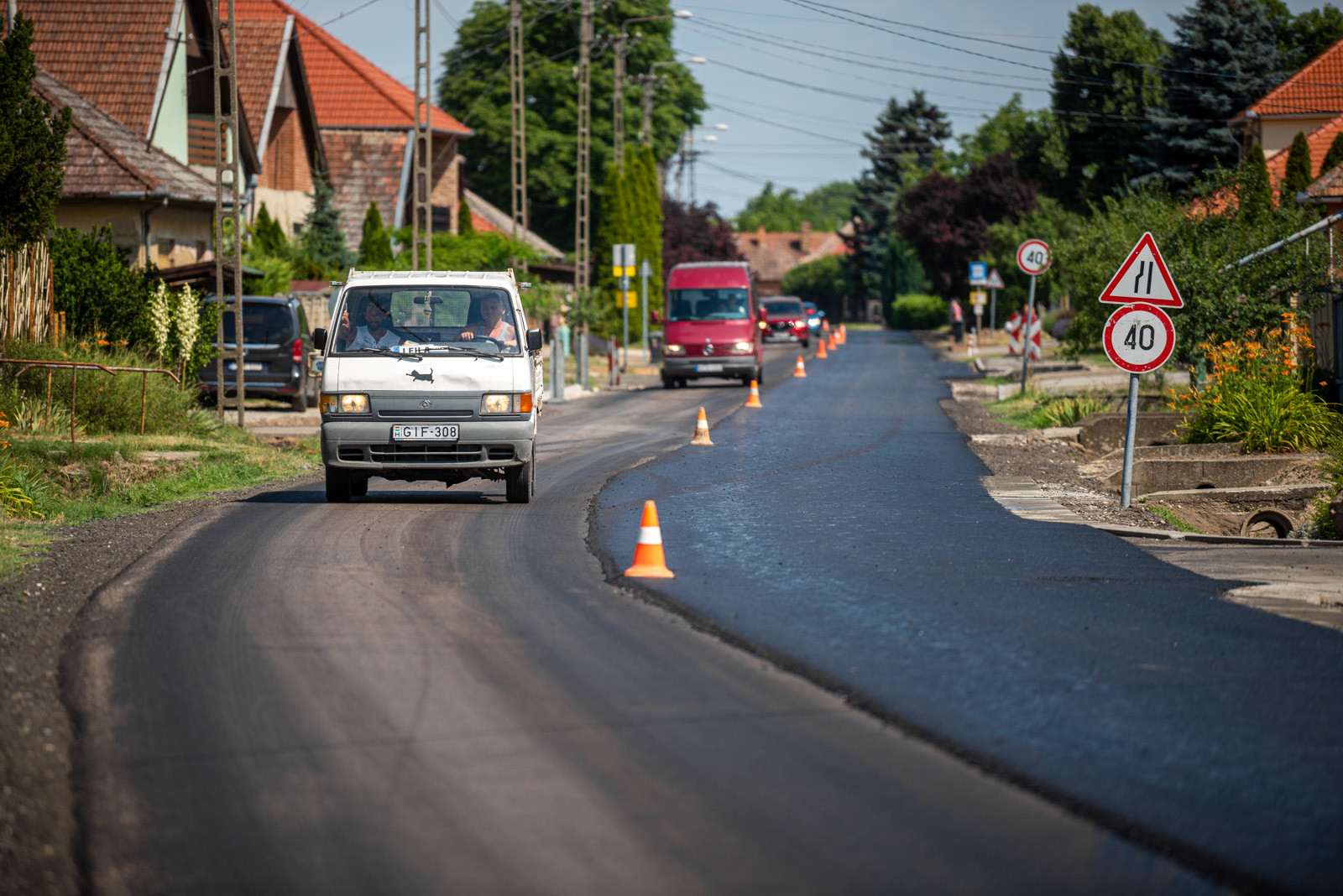 A hátralévő munkák közé tartozik az aszfalt kopóréteg megépítése, illetve a végleges forgalomtechnikai jelzésrendszer kialakítása. A munkavégzés félpályás zárás és jelzőőrrel irányított váltakozó irányú forgalom fenntartása mellett folyik, a teljes szakaszon 40 kilométer/órás sebességkorlátozás van érvényben. Az ideiglenes forgalmi rend a műszaki átadás-átvételi eljárás lezárásáig lesz érvényben.