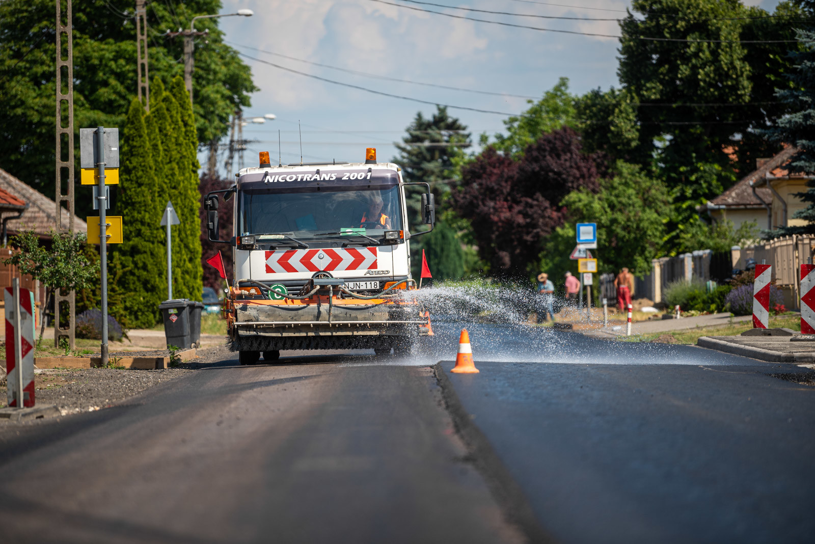 A burkolaton kívül elkészült a csapadékvíz elvezető-, illetve gyűjtő árokrendszer tisztítása, szükség szerint az árokburkolat helyreállítása és az árkokhoz csatlakozó átereszek tisztítása. Jelenleg az aszfalt kopóréteg építésének előkészítése folyik, ennek részeként a végleges burkolatszintre emelik az aknafedlapokat, illetve a burkolt kapubejárókat.