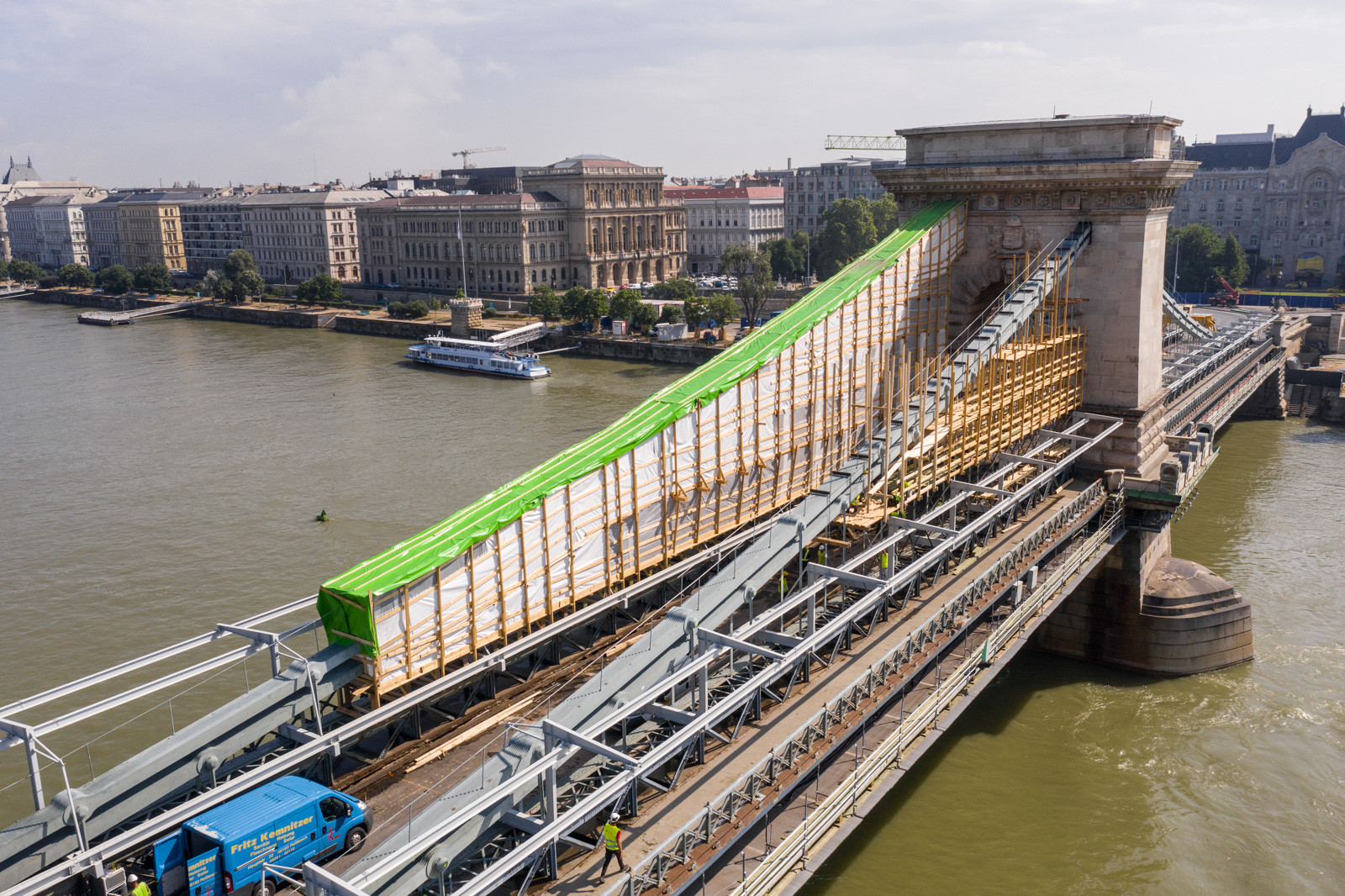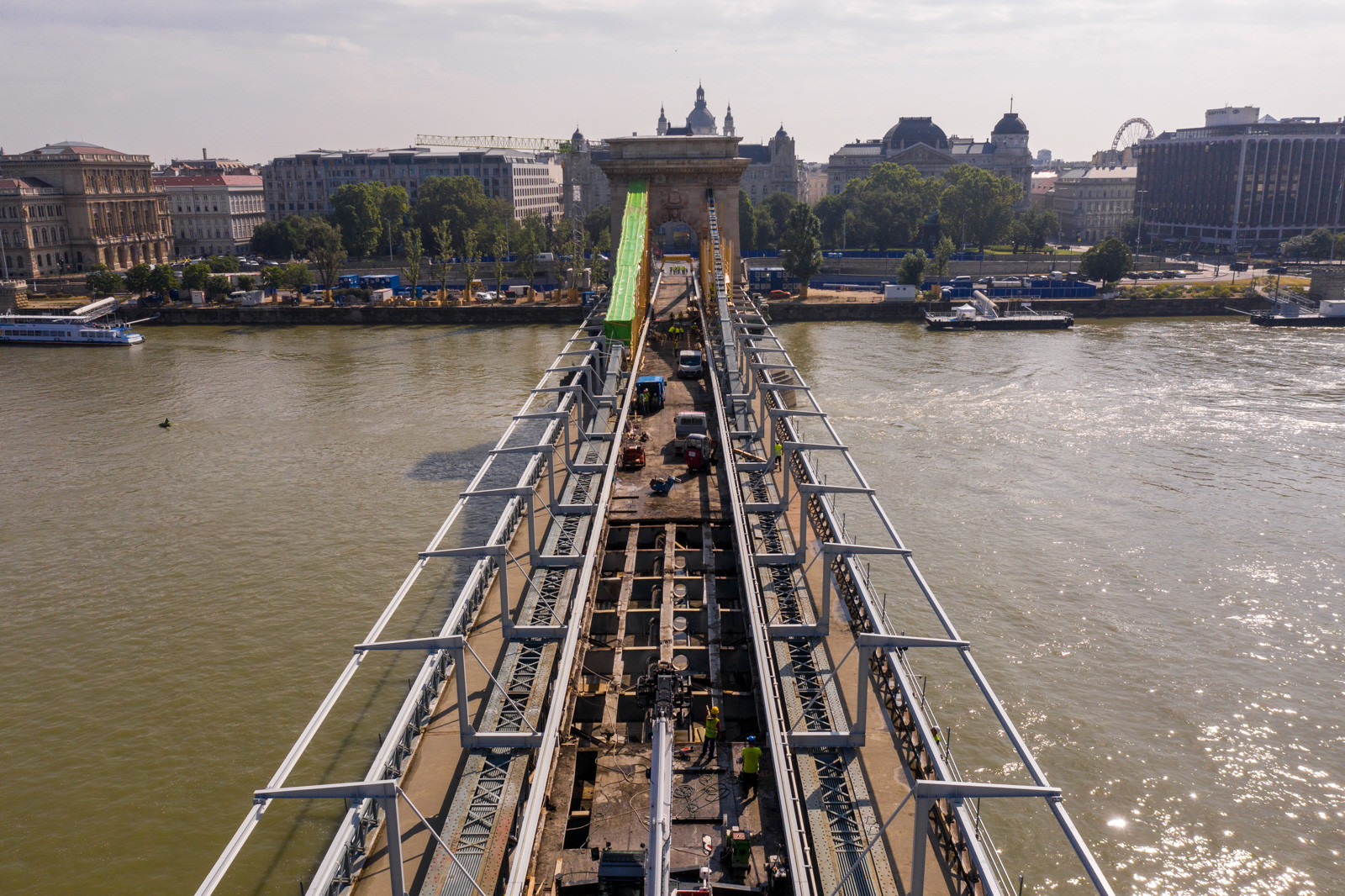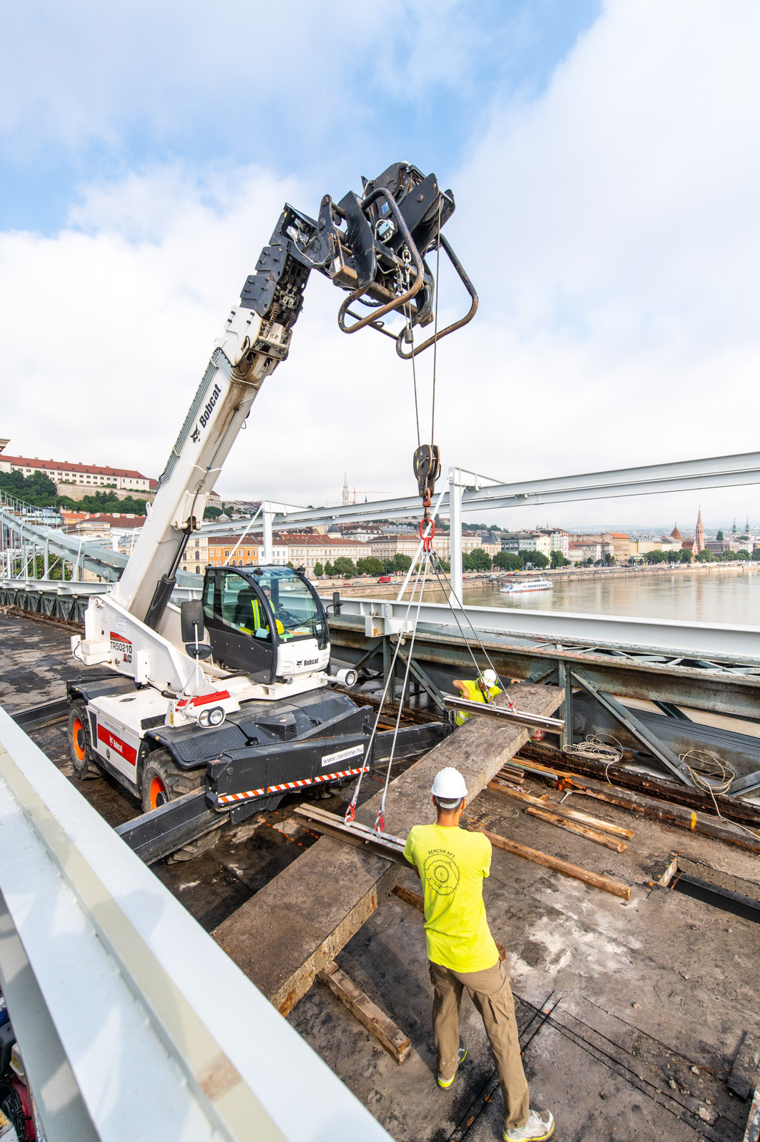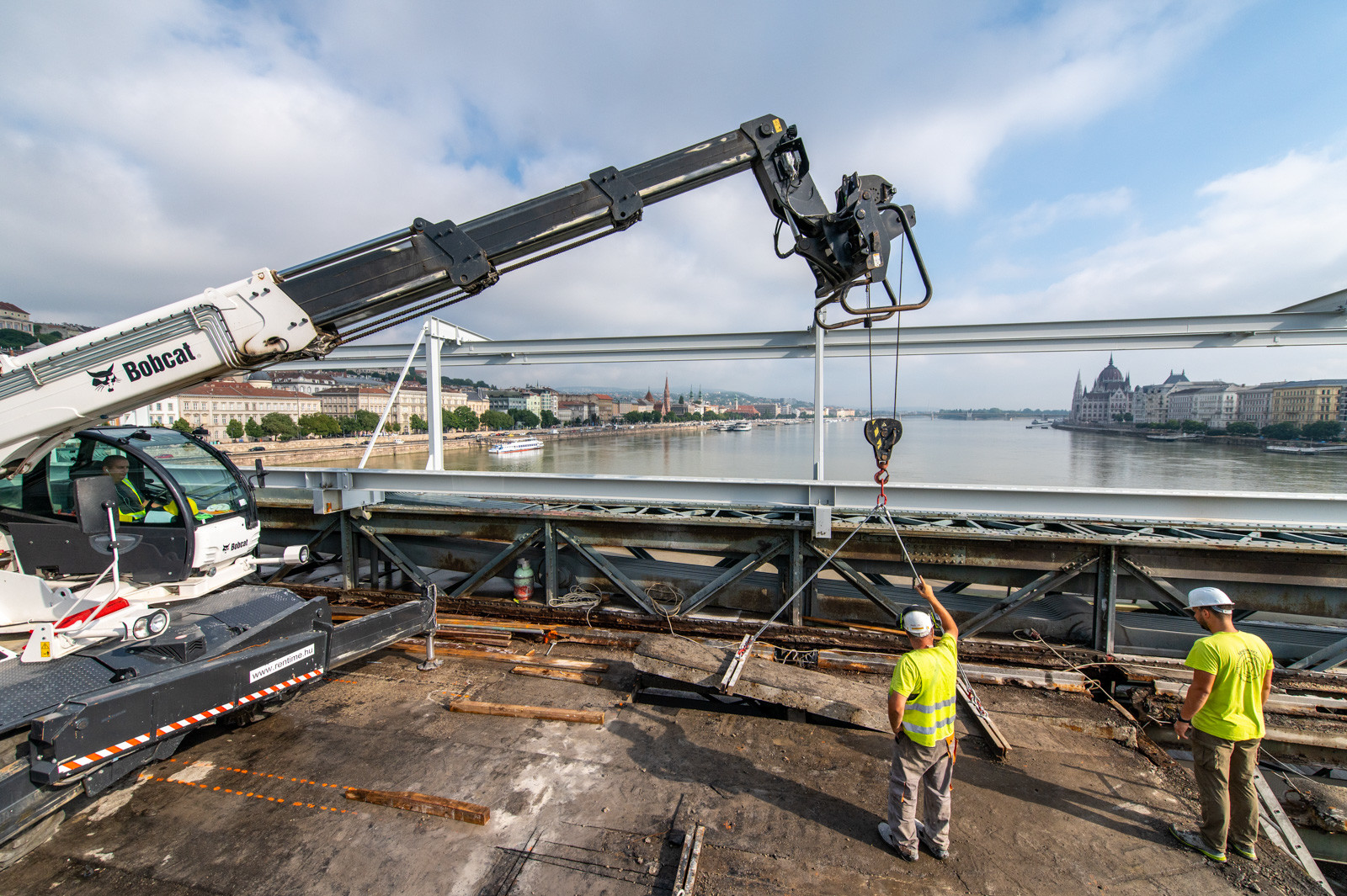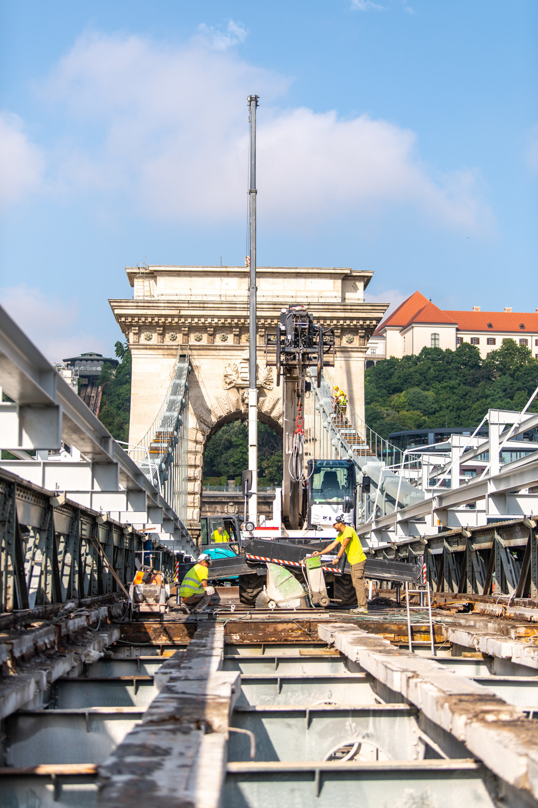 A Lánchíd teljes szélességében 4 ilyen darab körbevágása a feladat része: ezek súlya 2, valamint 3,5 tonna között mozog.