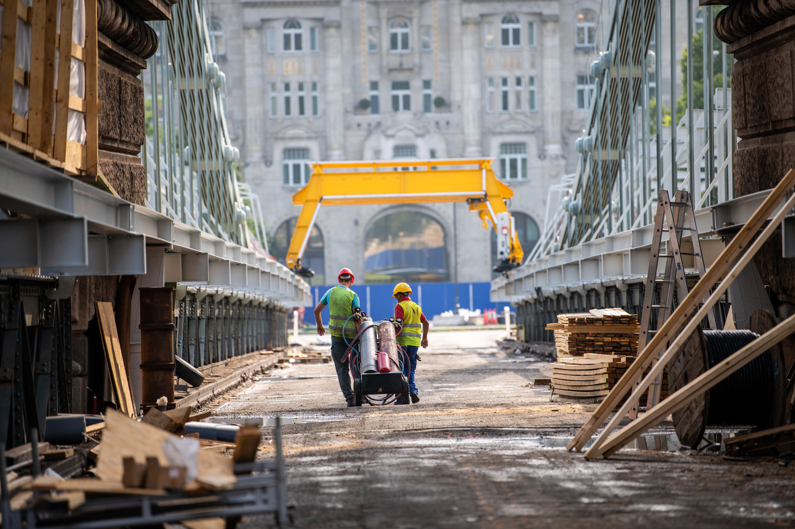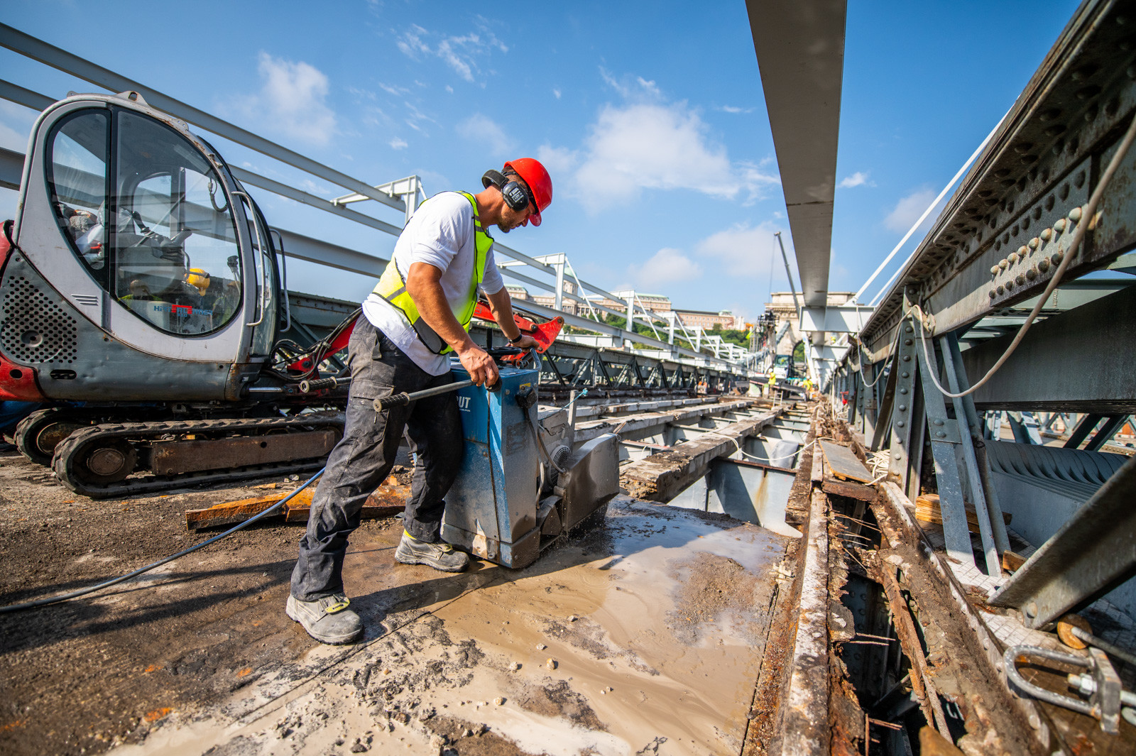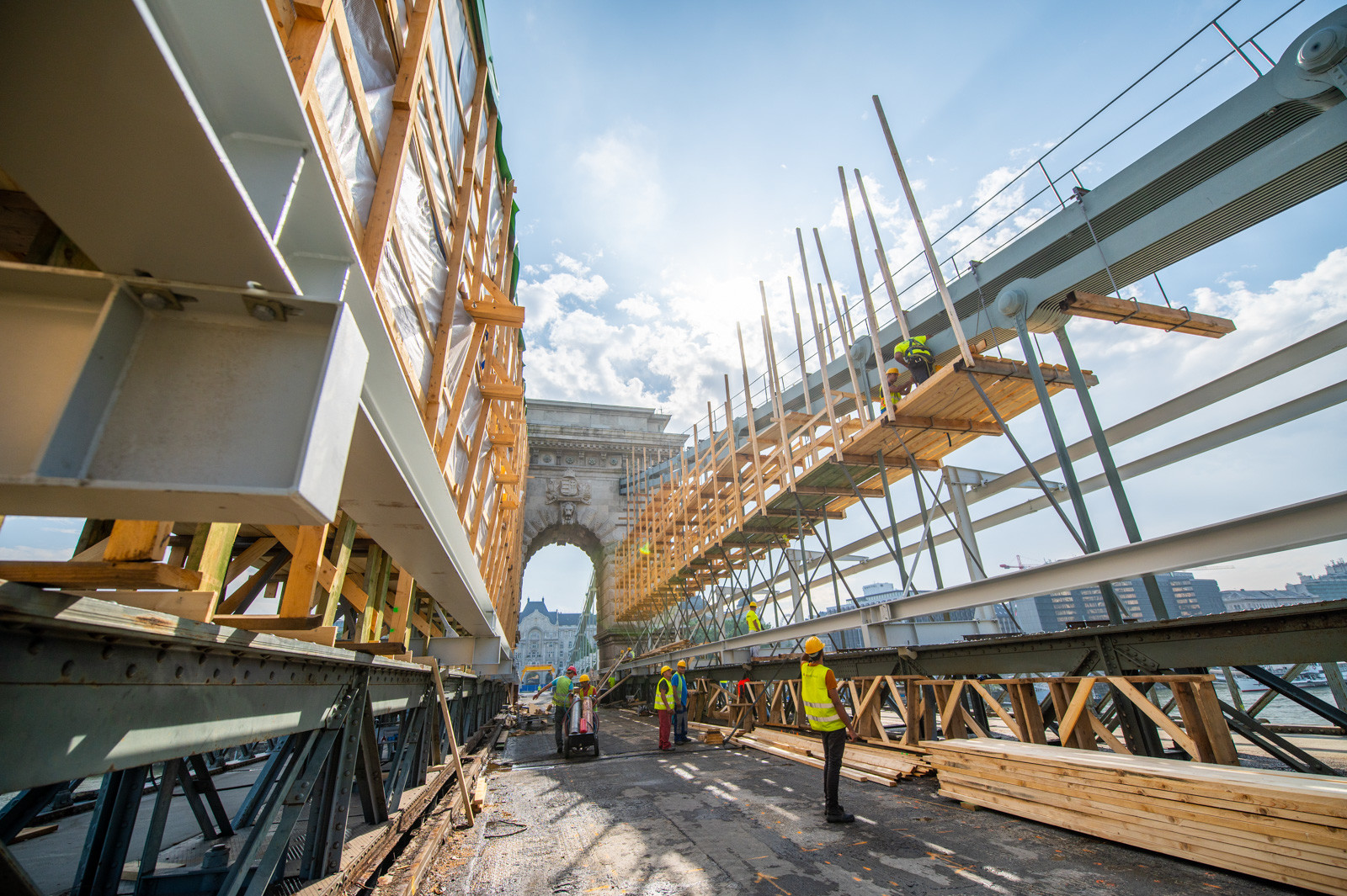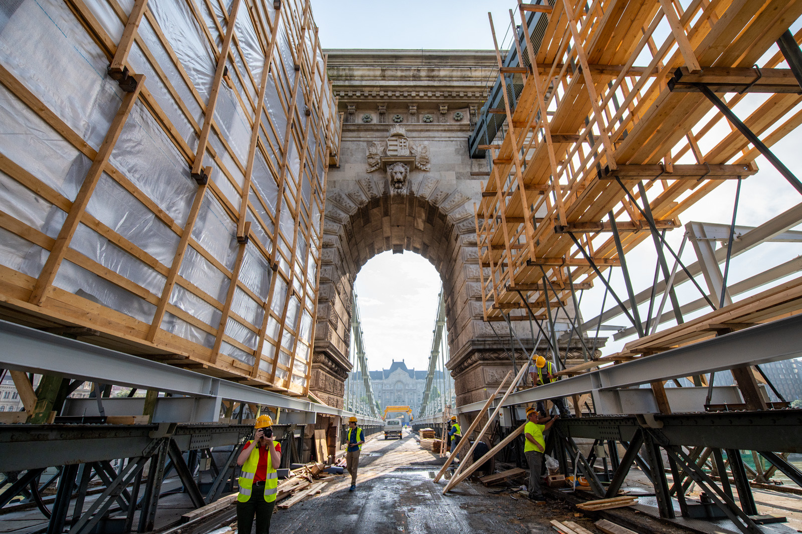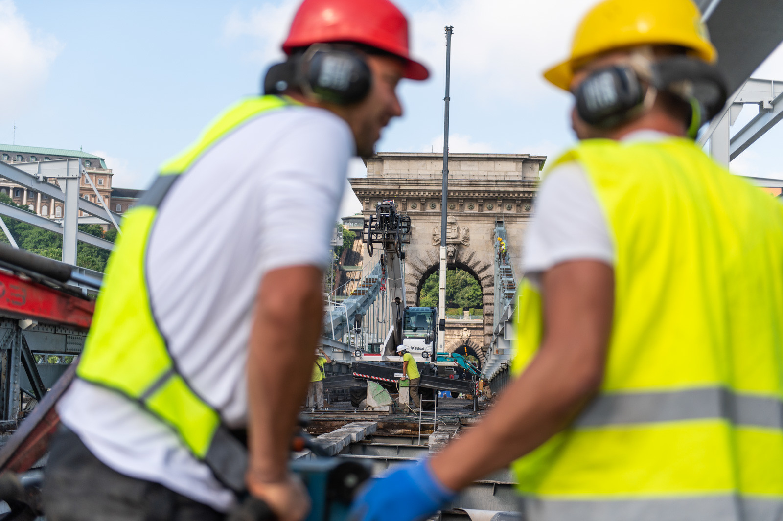 A Lánchíd teljes szélességében 4 ilyen darab körbevágása a feladat része: ezek súlya 2, valamint 3,5 tonna között mozog.