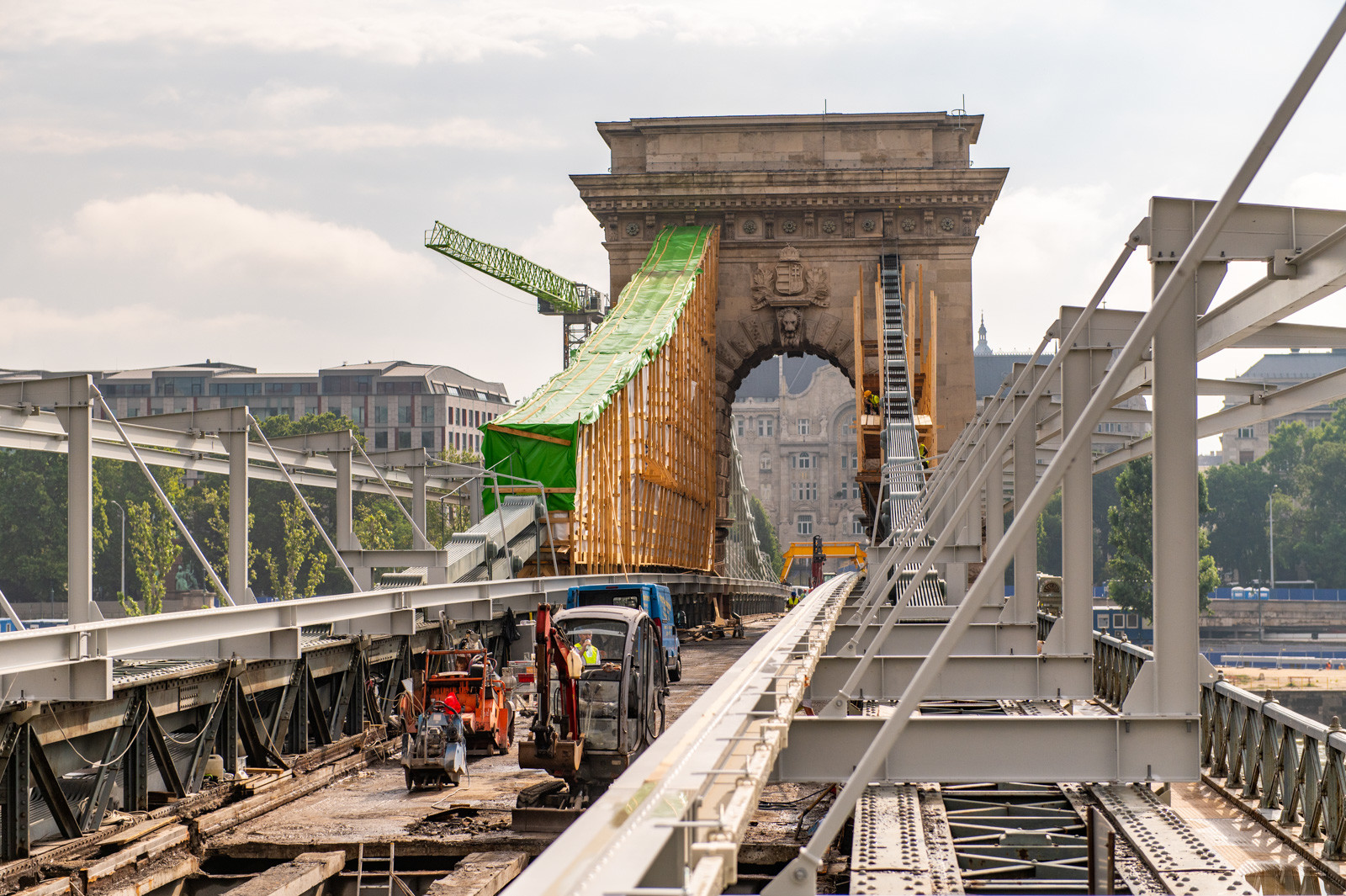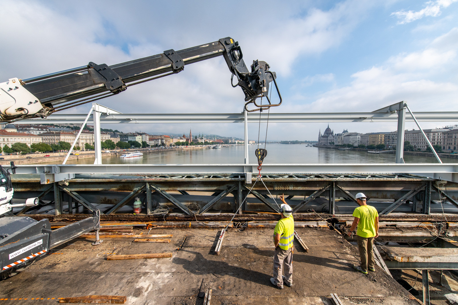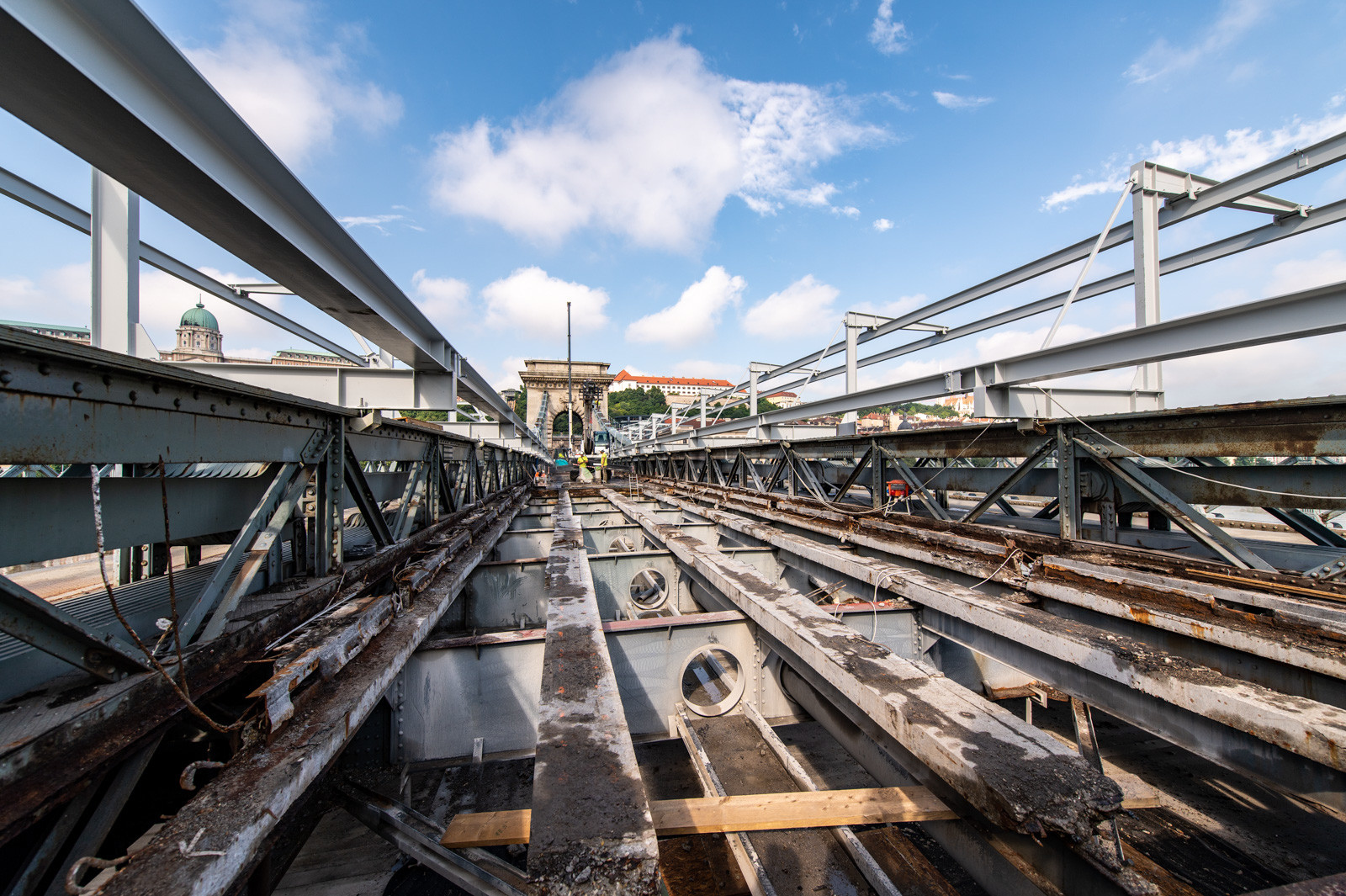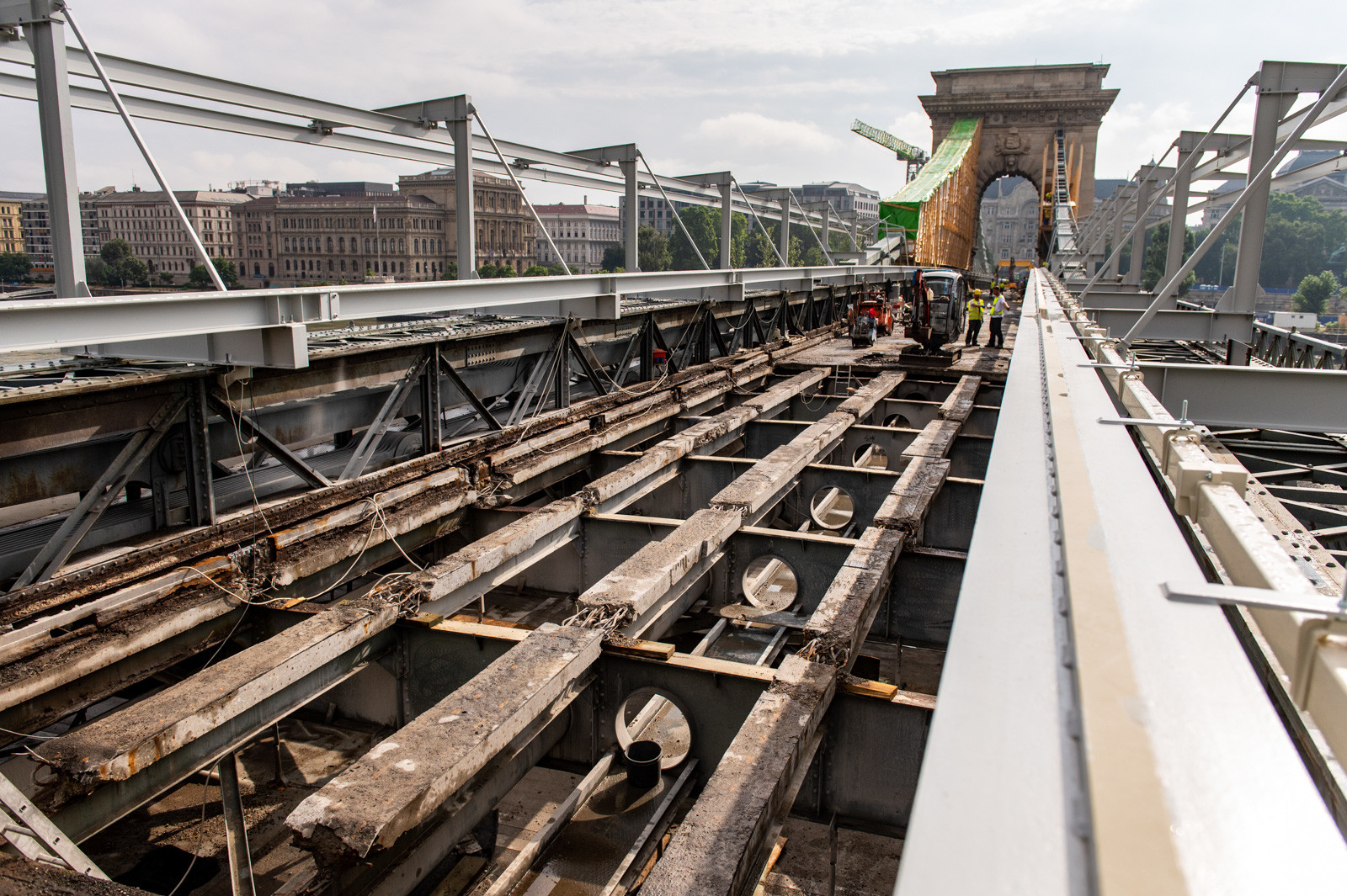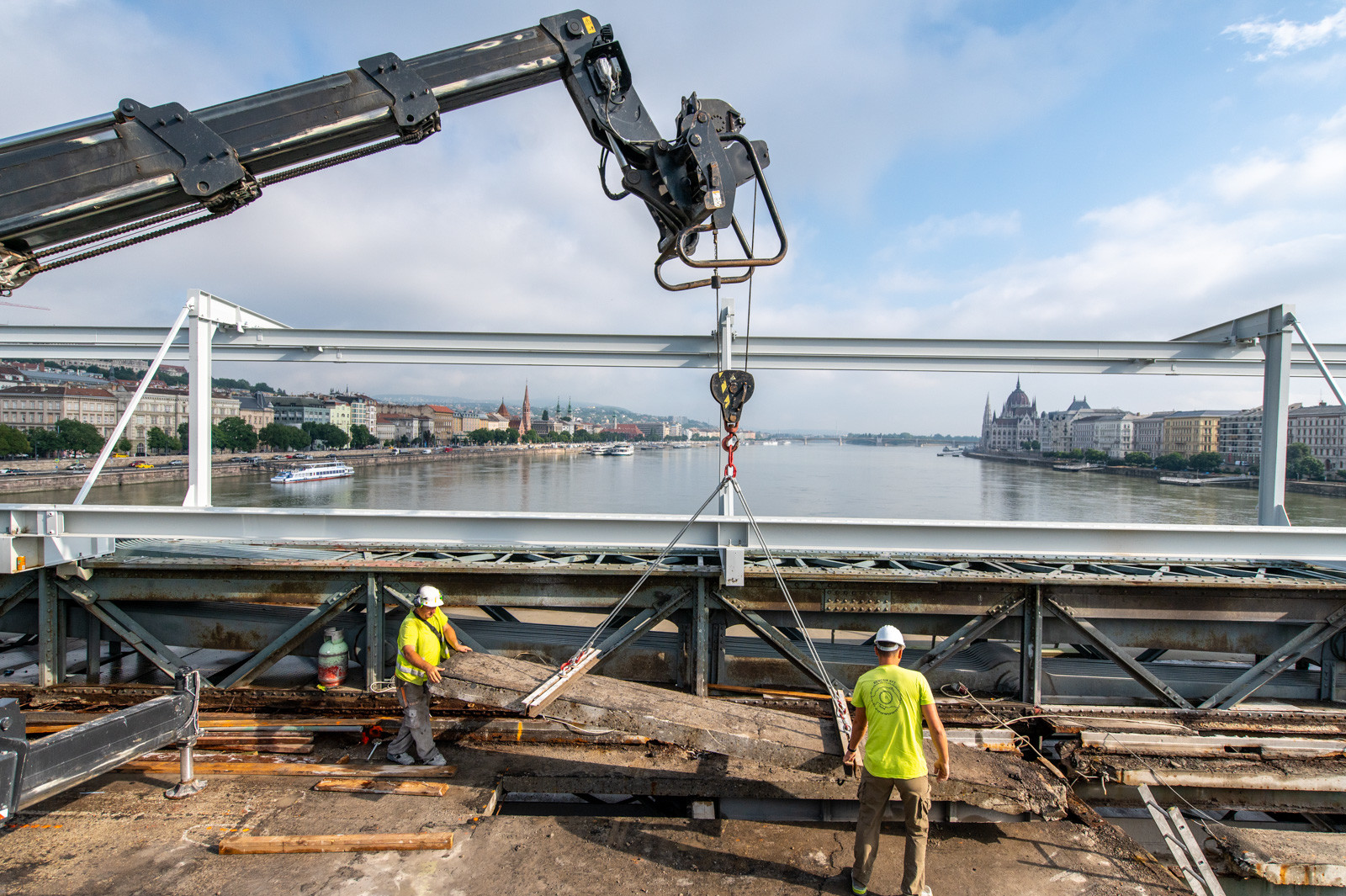 A hídról leszerelték a dísz- és közvilágítást, illetve az aszfaltot is eltávolították az úttestről, és az útszegélyek bontásával is előrelépett a cég. A híd útpályájának jelentős átalakítása is a projekt része: az átkelő eddig használt elöregedett szerkezetének elbontása egy hete kezdődött el.
