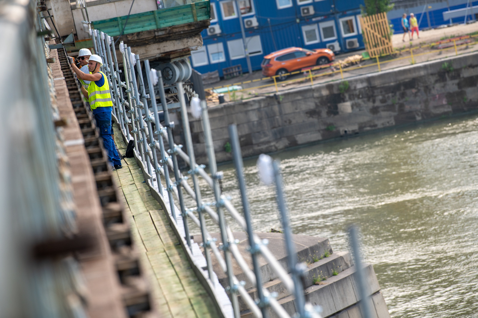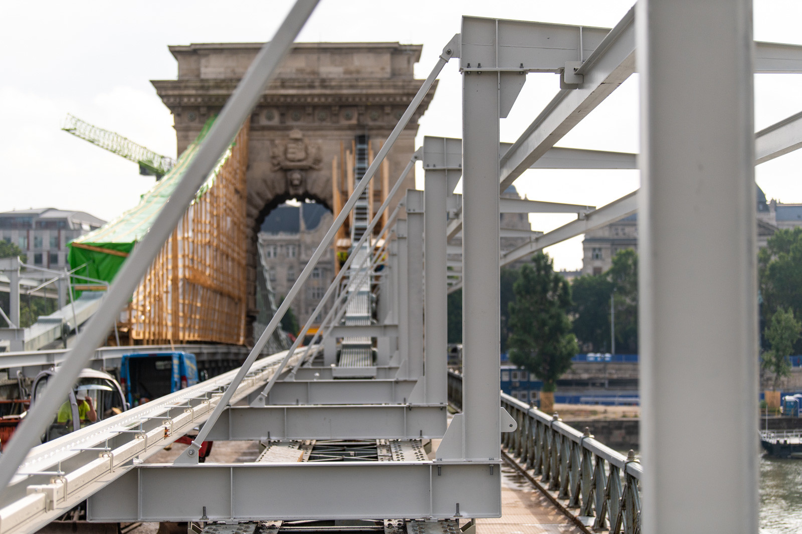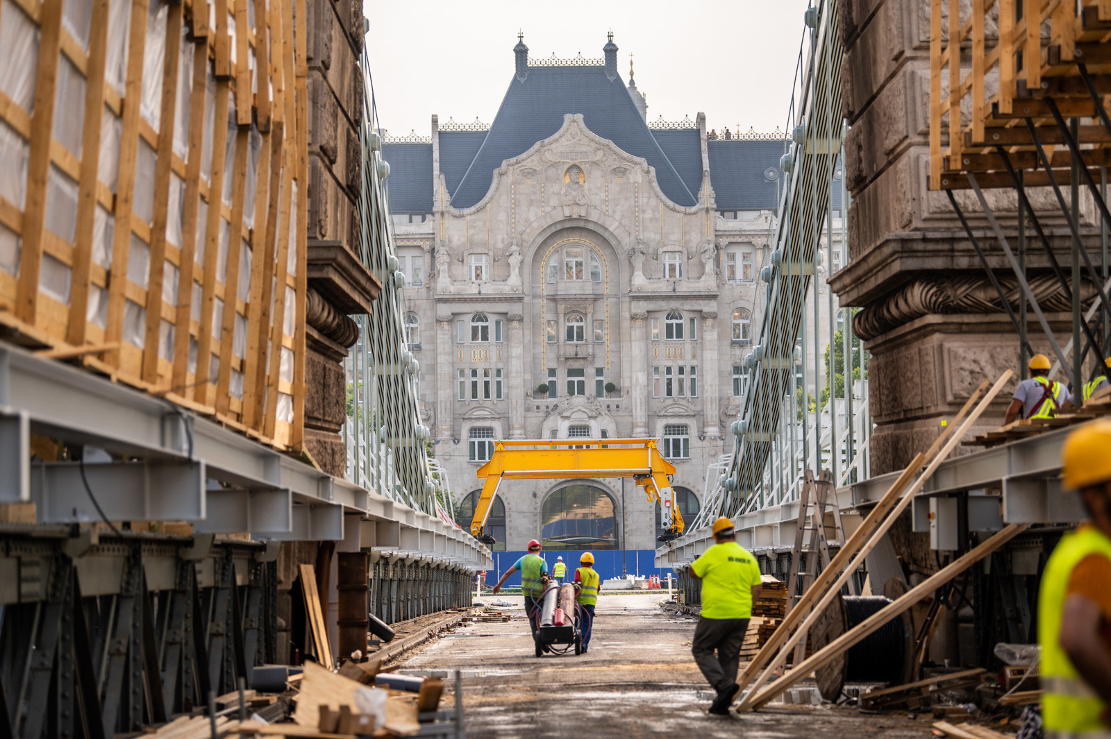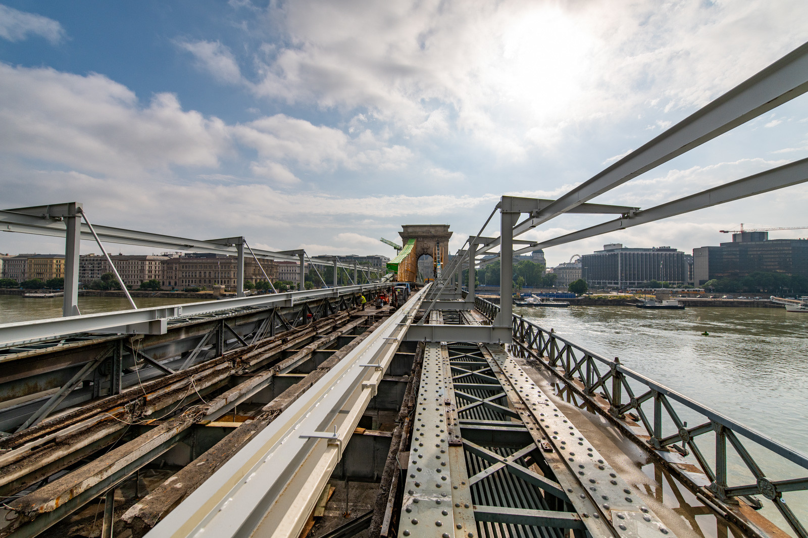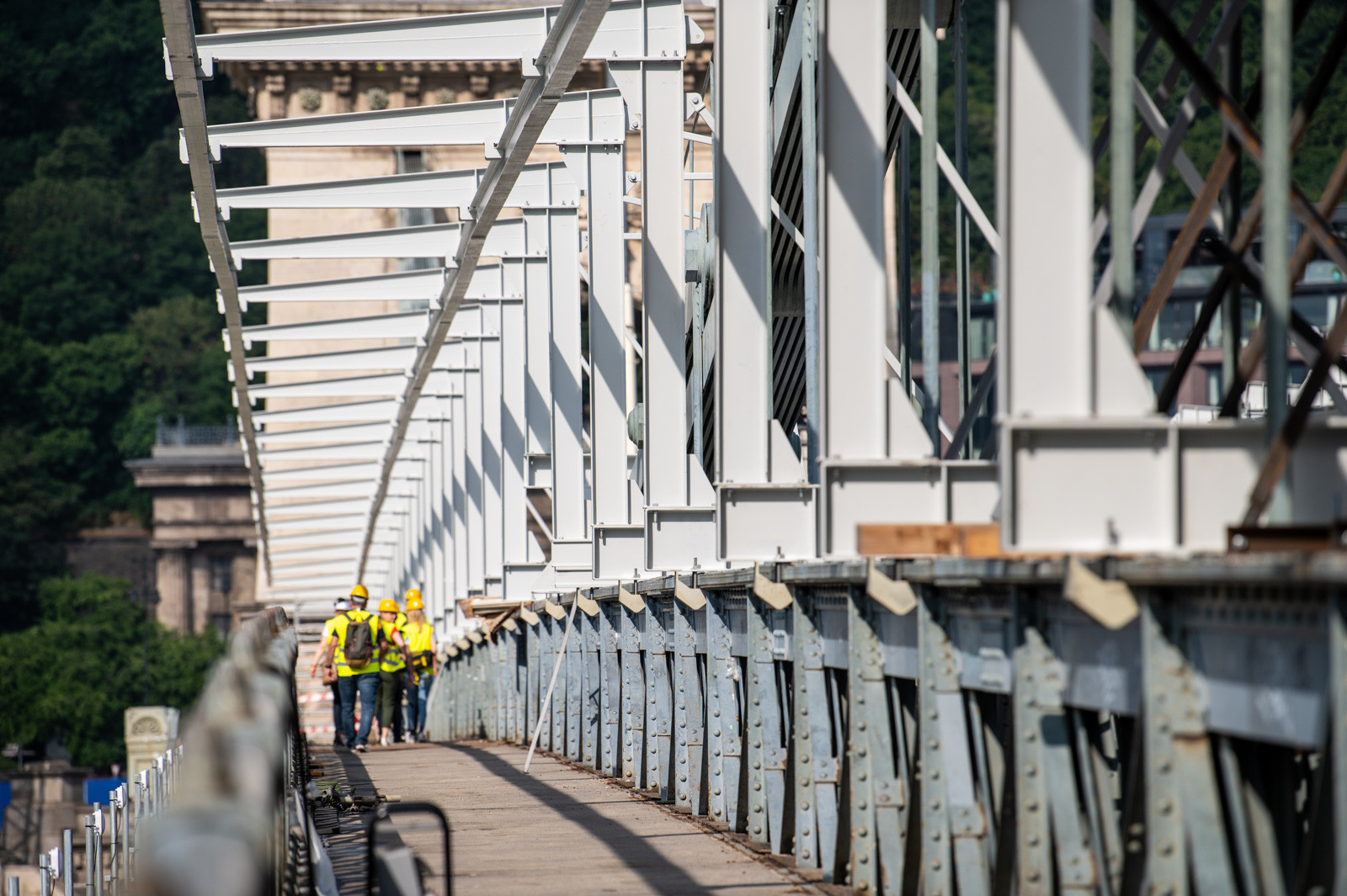 A hídról leszerelték a dísz- és közvilágítást, illetve az aszfaltot is eltávolították az úttestről, és az útszegélyek bontásával is előrelépett a cég. A híd útpályájának jelentős átalakítása is a projekt része: az átkelő eddig használt elöregedett szerkezetének elbontása egy hete kezdődött el.