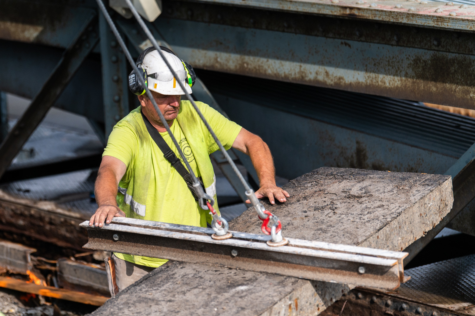 Mint lapunk megtudta, a már nagy használatot látott vasbeton pályalemezt a híd közepéről két irányba indulva először darabokra vágják.