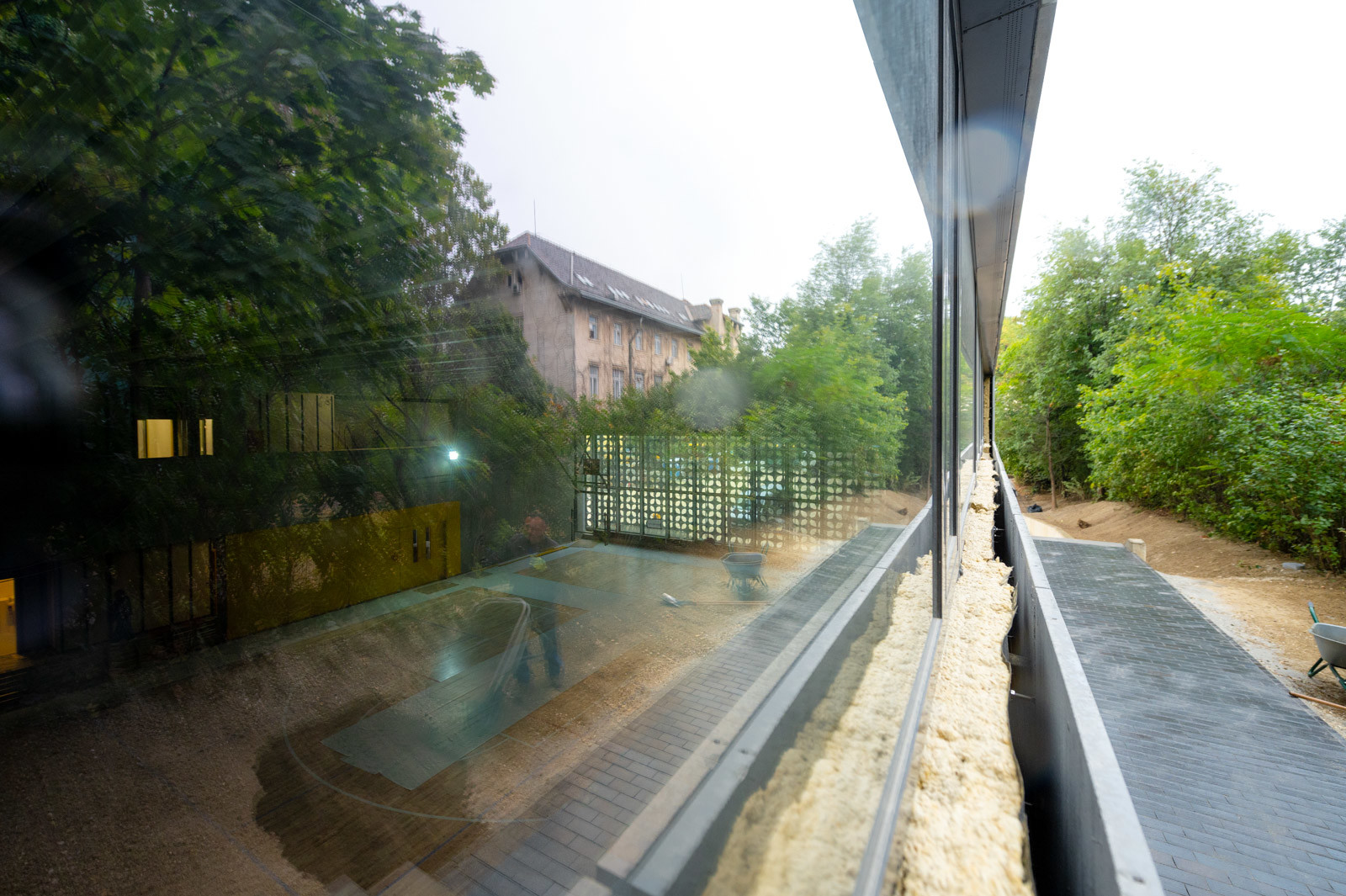 Az udvaron folyamatban van a sportpálya építése, amely során zajlanak a kertészeti -tereprendezések és elkezdték a növények telepítését. Emellett folyamatban van a gumipálya előkészítése a megfelelő rétegrenddel, ami tömörített több rétegű kavicságyazatból és szűrő betonból készül. Ezt követi az öntöttgumi burkolat, majd a sporttechnológiai eszközök telepítése, és a befejező kertészeti munkákkal zárulnak a külső munkálatok.