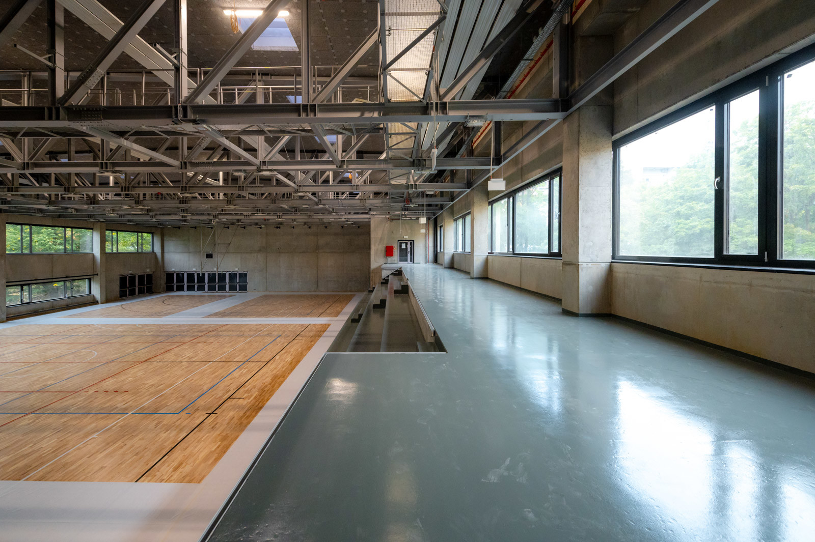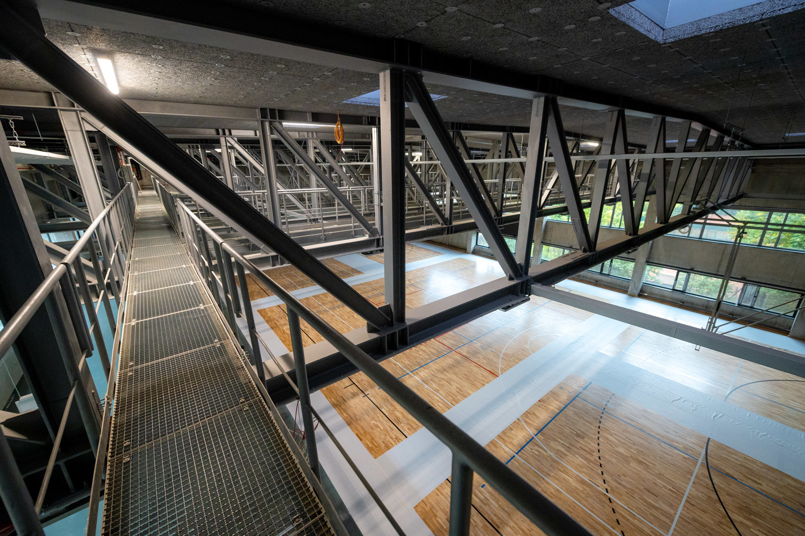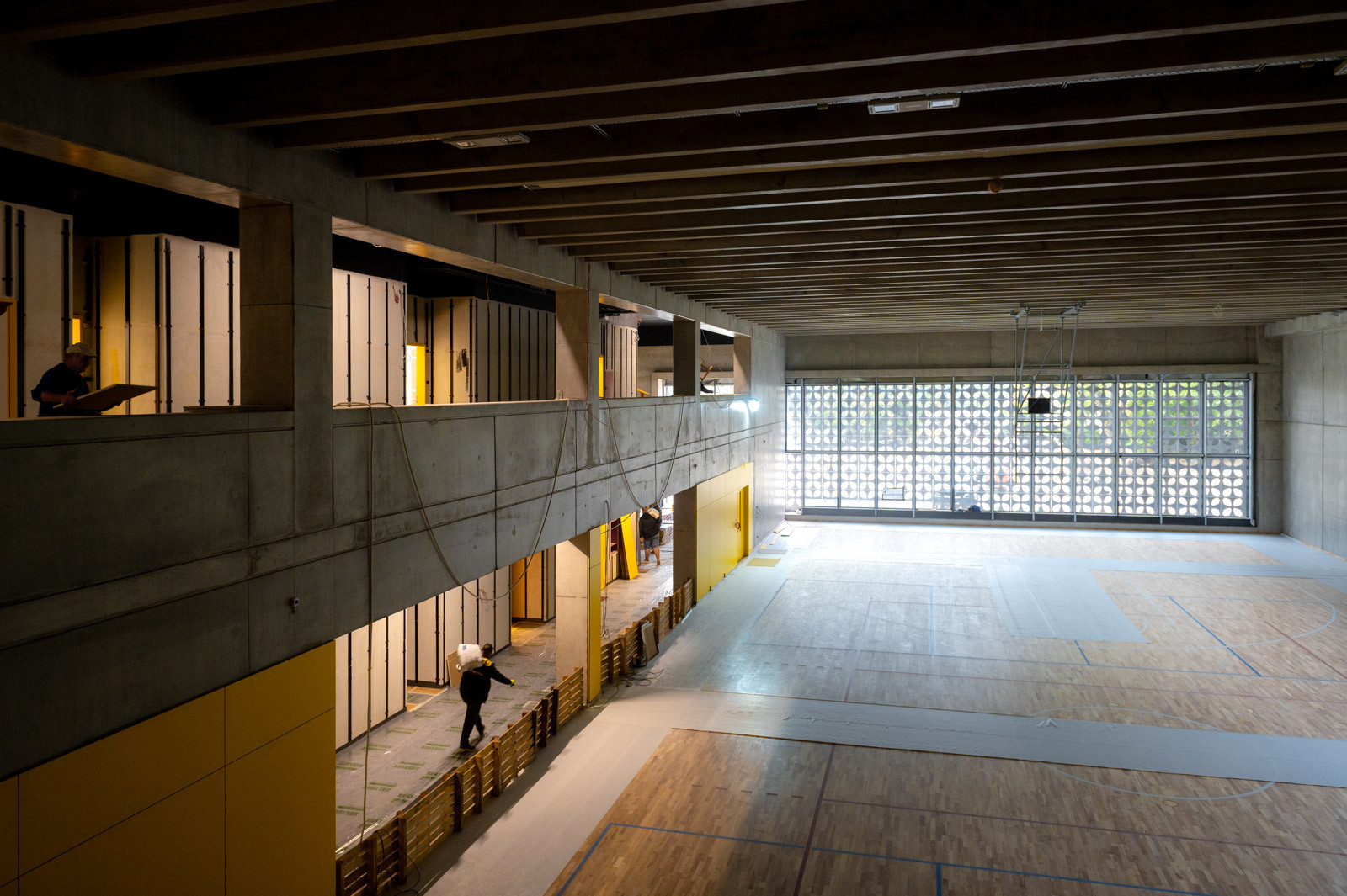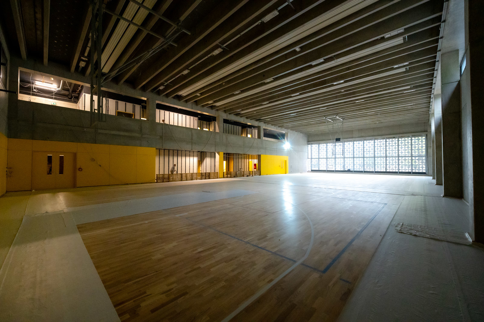 Mint azt korábban is megírtuk, az új épületben két sportpálya épül egymás felett: alul egy kosárlabdapálya, felette pedig egy kézilabdapálya.