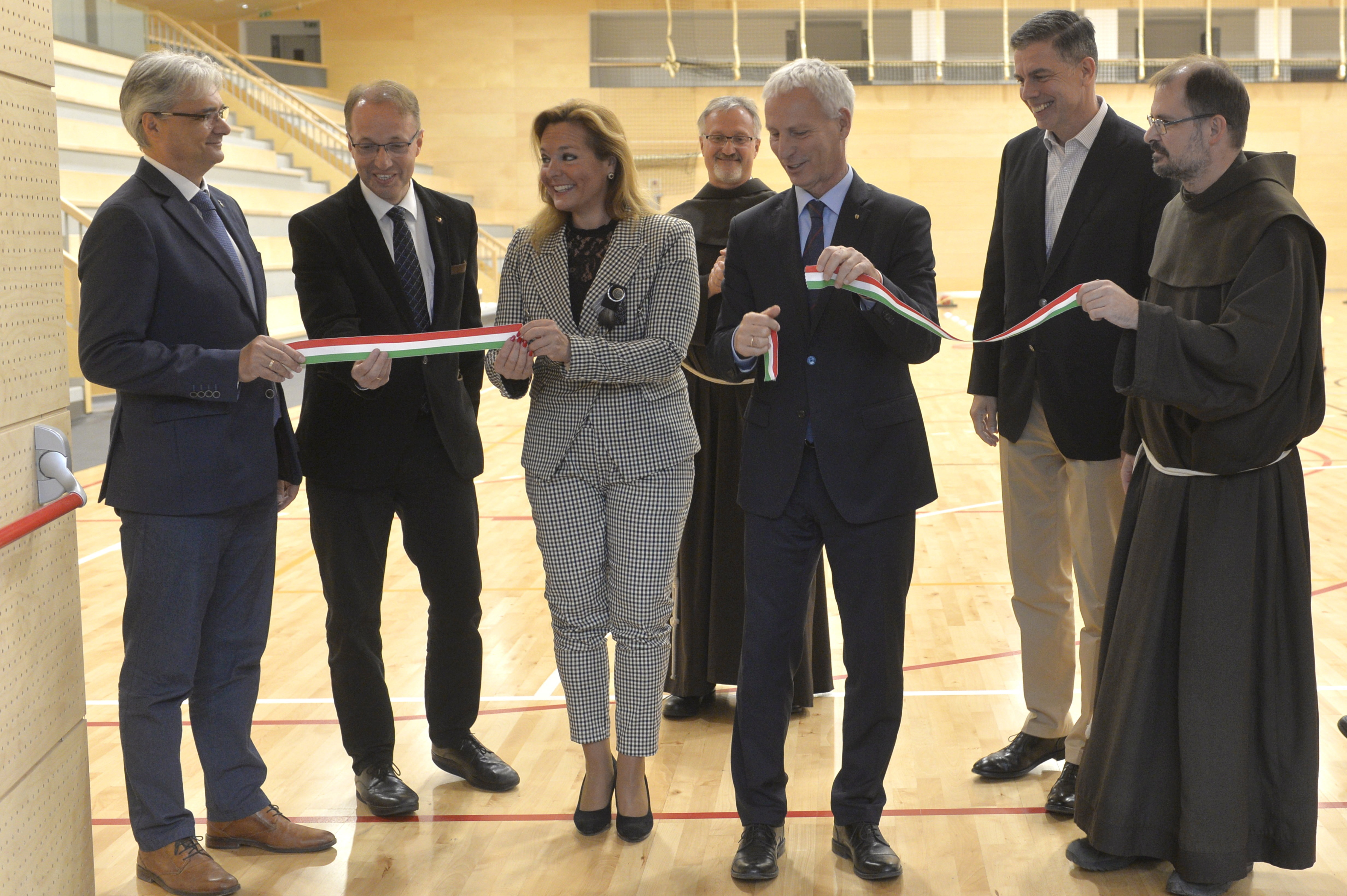 Korábban már beszámoltunk arról, hogy tornacsarnokkal bővül a szentendrei Ferences Gimnázium. Az elkészült tornacsarnokot szerdán adták át. Az iskolai, városi és egyéb szabadidős sportrendezvényekre alkalmas létesítmény megépítéséhez a kormány 2,15 milliárd forinttal, az iskola fenntartója, a Magyarok Nagyasszonya Ferences Rendtartomány százmillió forint önrésszel járult hozzá. A kivitelezést a Pesti Építő Zrt. végezte el.