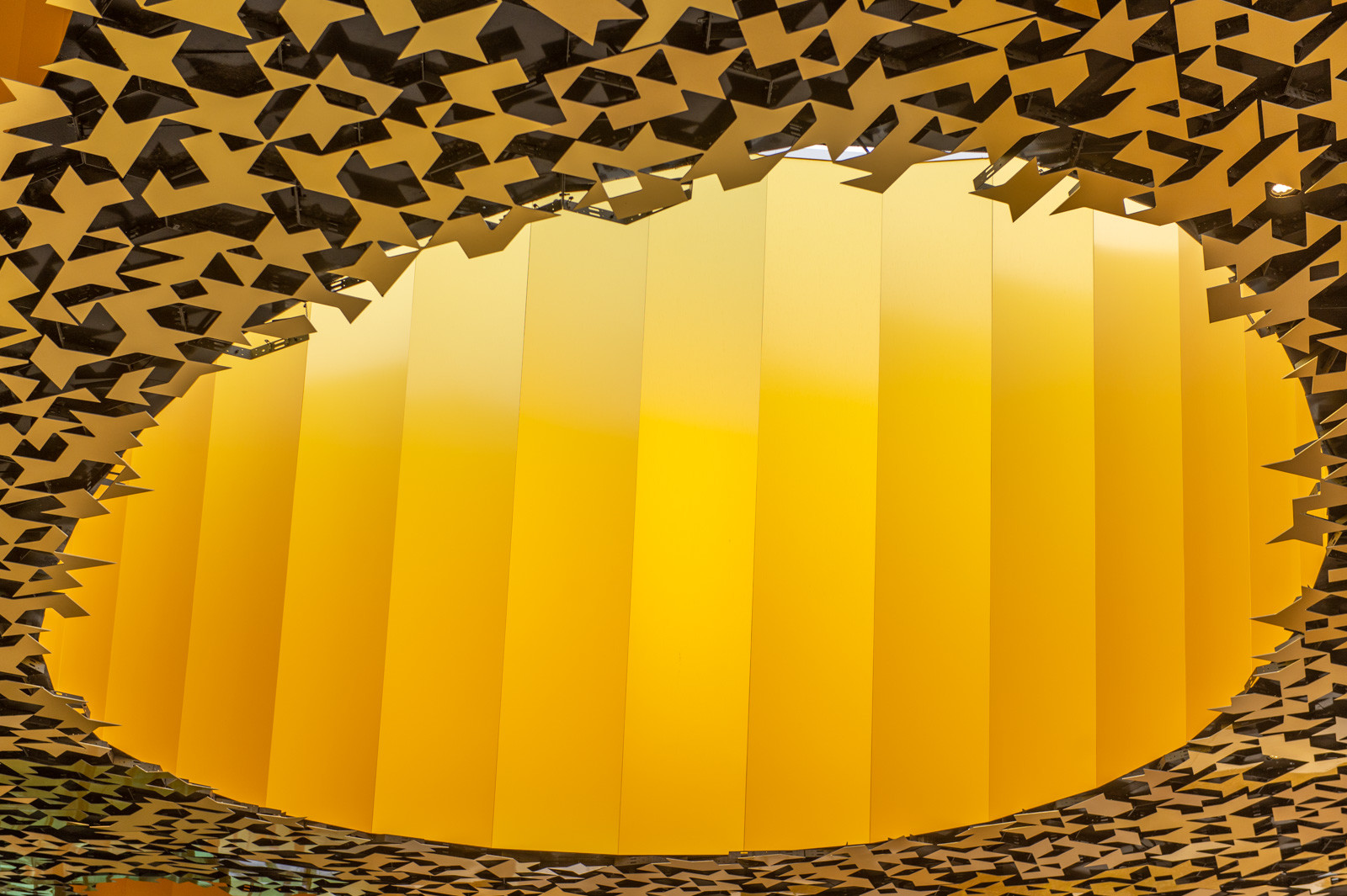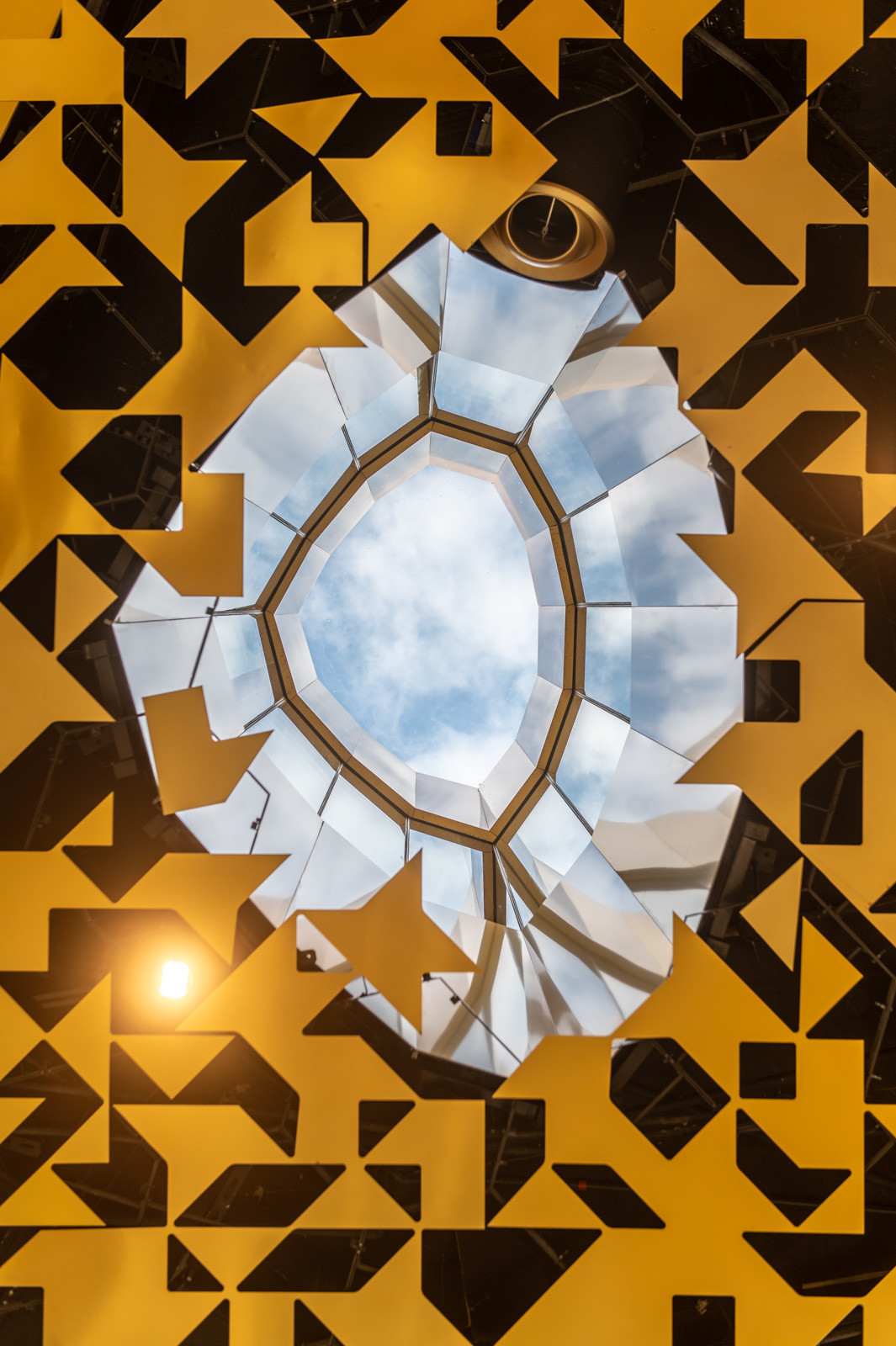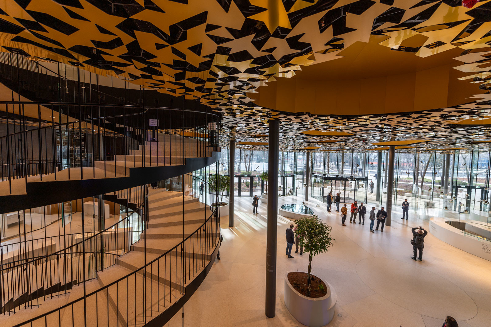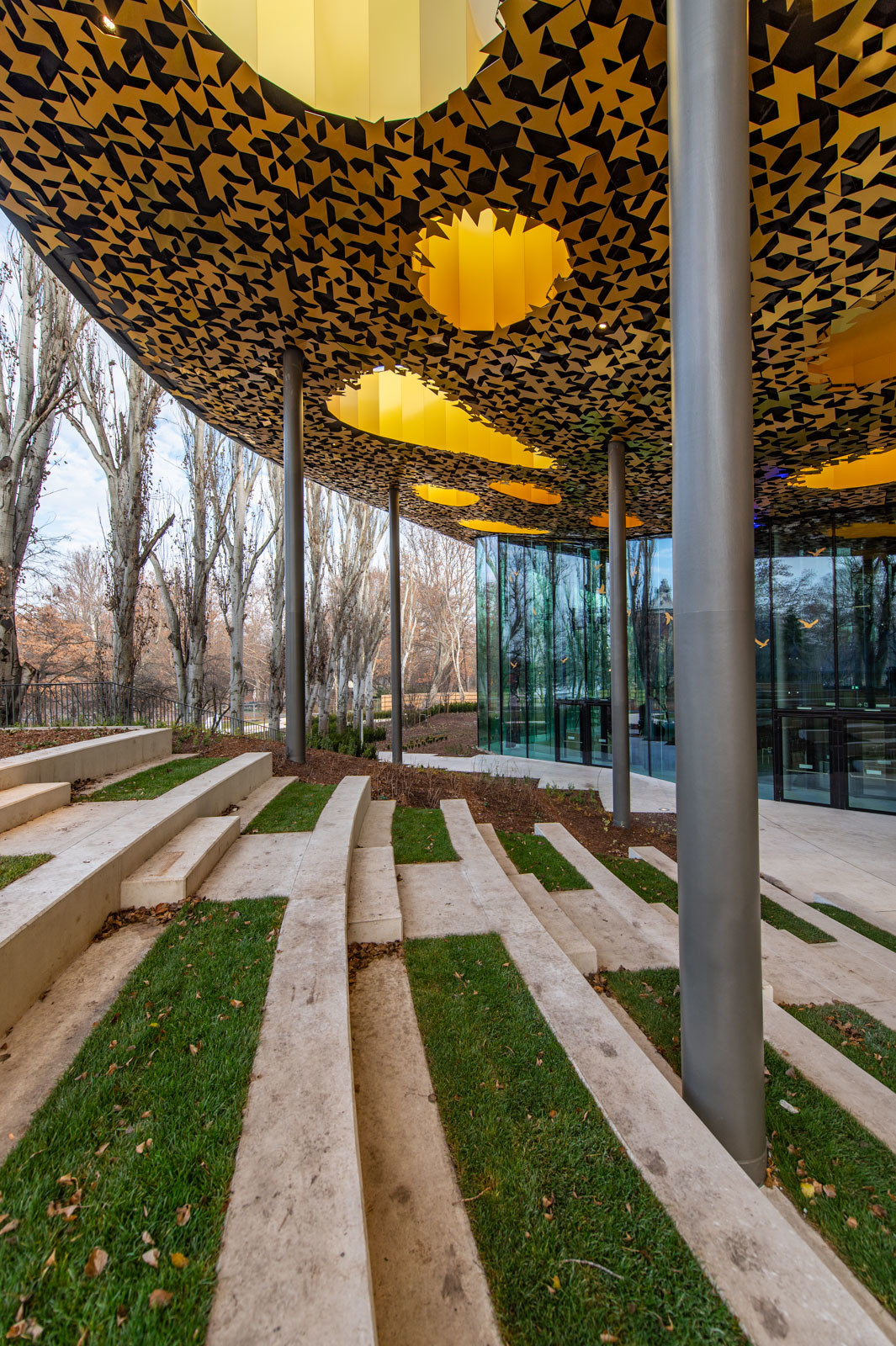 Kiemelte az organikus, "lebegő" tetőszerkezetet, amelyben szinte nincsenek szögletes elemek. Felületét pedig csaknem száz egyedi tervezésű fénykút töri át, amelyek közül több egészen a legalsó szintekig átvezeti a természetes fényt a belső terekbe.