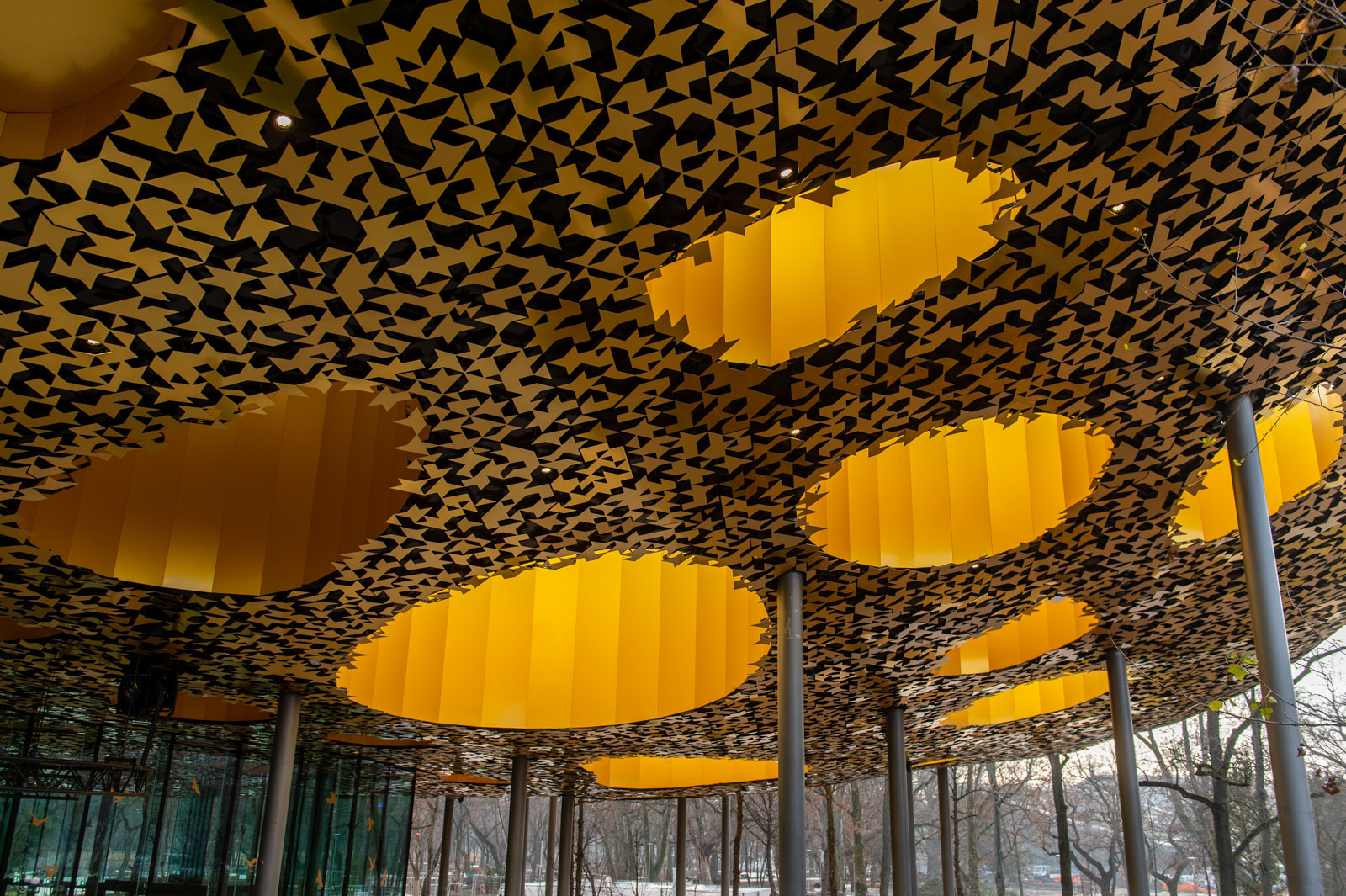 az organikusan hullámzó, lyukakkal áttört tetőszerkezetével és hatalmas üvegfalaival az épület nem csupán hazánkban, de világszerte is egyedülállónak számít.