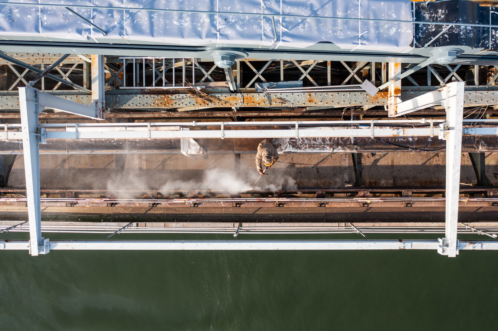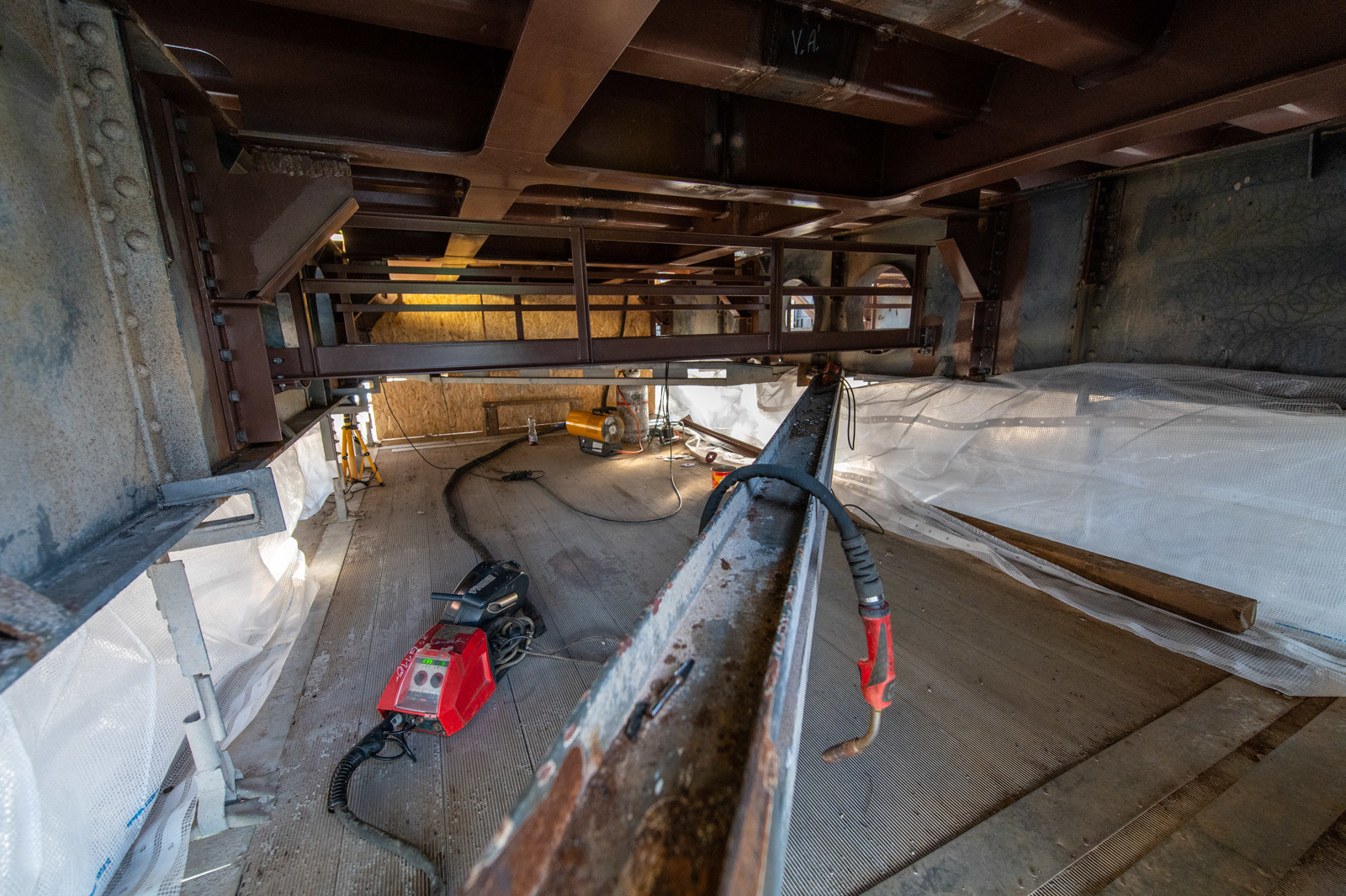 A fűtött sátrakban hőlégfúvók segítségével folyamatosan biztosítják a munkavégzéshez szükséges hőmérsékletet és a beépítendő anyagok előmelegítését. A híd felszíne alatt - OSB-lapokkal és ponyvákkal elzárt területen - szintén fűtött környezetben javítják a bentmaradó szerkezetek hibáit.