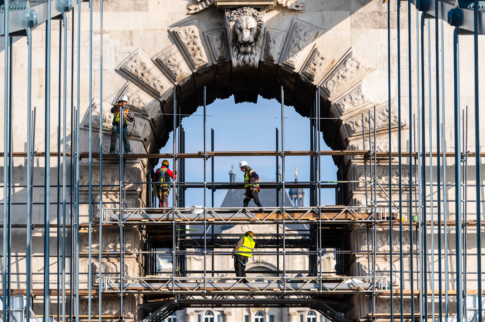 Fűtött sátrakban hegesztenek a felújítást végző szakemberek a téli hidegben, így biztosítják, hogy ilyenkor is megszakítás nélkül dolgozhassanak a Lánchíd munkaterületén. A kivitelezők ilyenkor úgy szervezik a munkát, hogy megfeleljenek a téli eljárásrendeknek, alkalmazkodva a fagyos időjáráshoz, a viharos erejű szélhez vagy éppen a korai sötétedéshez – tudta meg munkatársunk a helyszínen tartott eseményen.