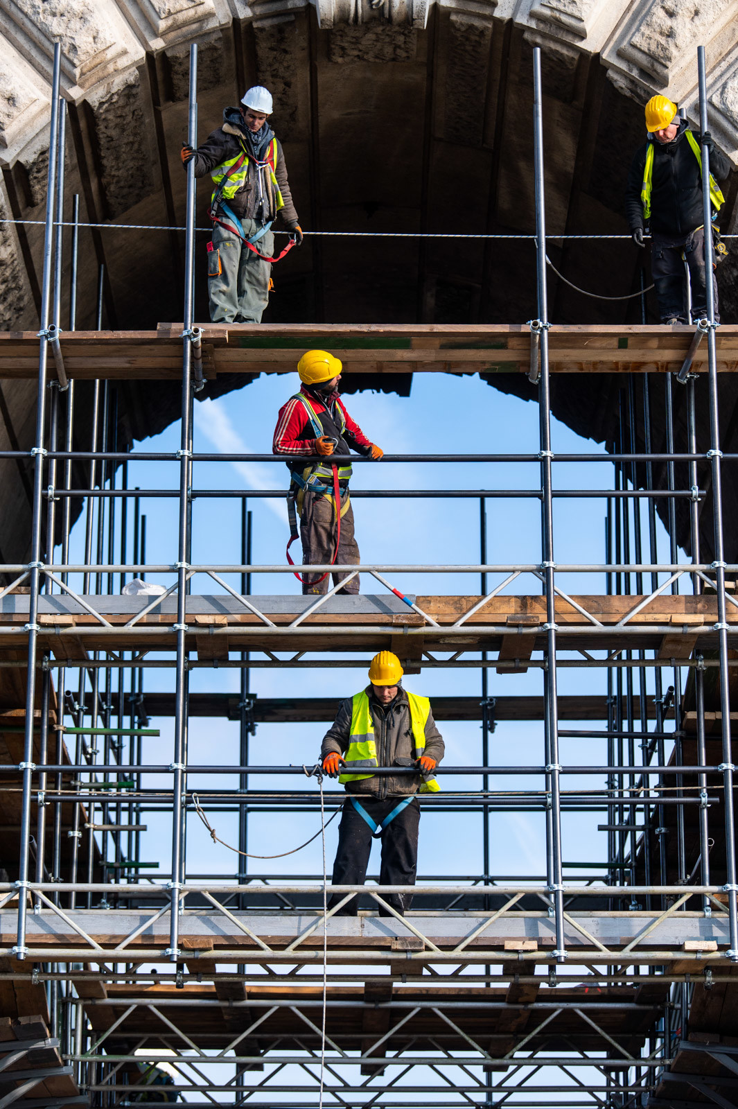 Az időjárásnak megfelelő technológiákat alkalmazva haladnak a munkákkal, így az egyes hídelemeken zajló (bástyák, a kapuzat állványzata, lánccsatorna) feladatokkal.