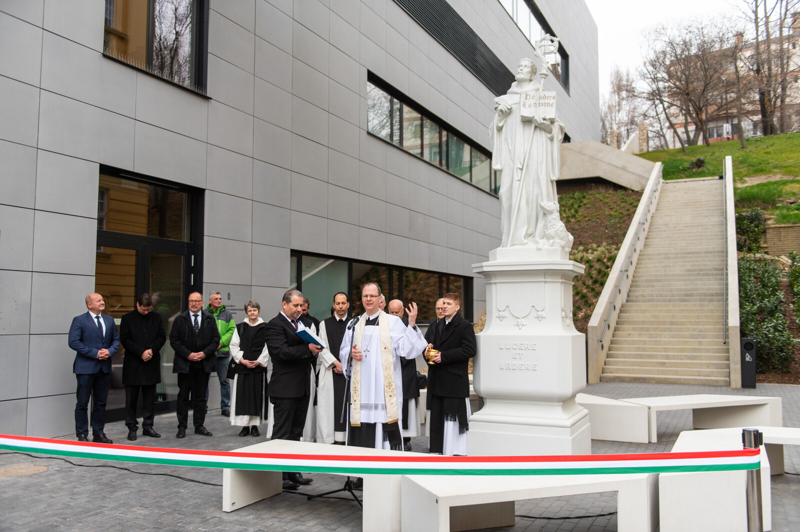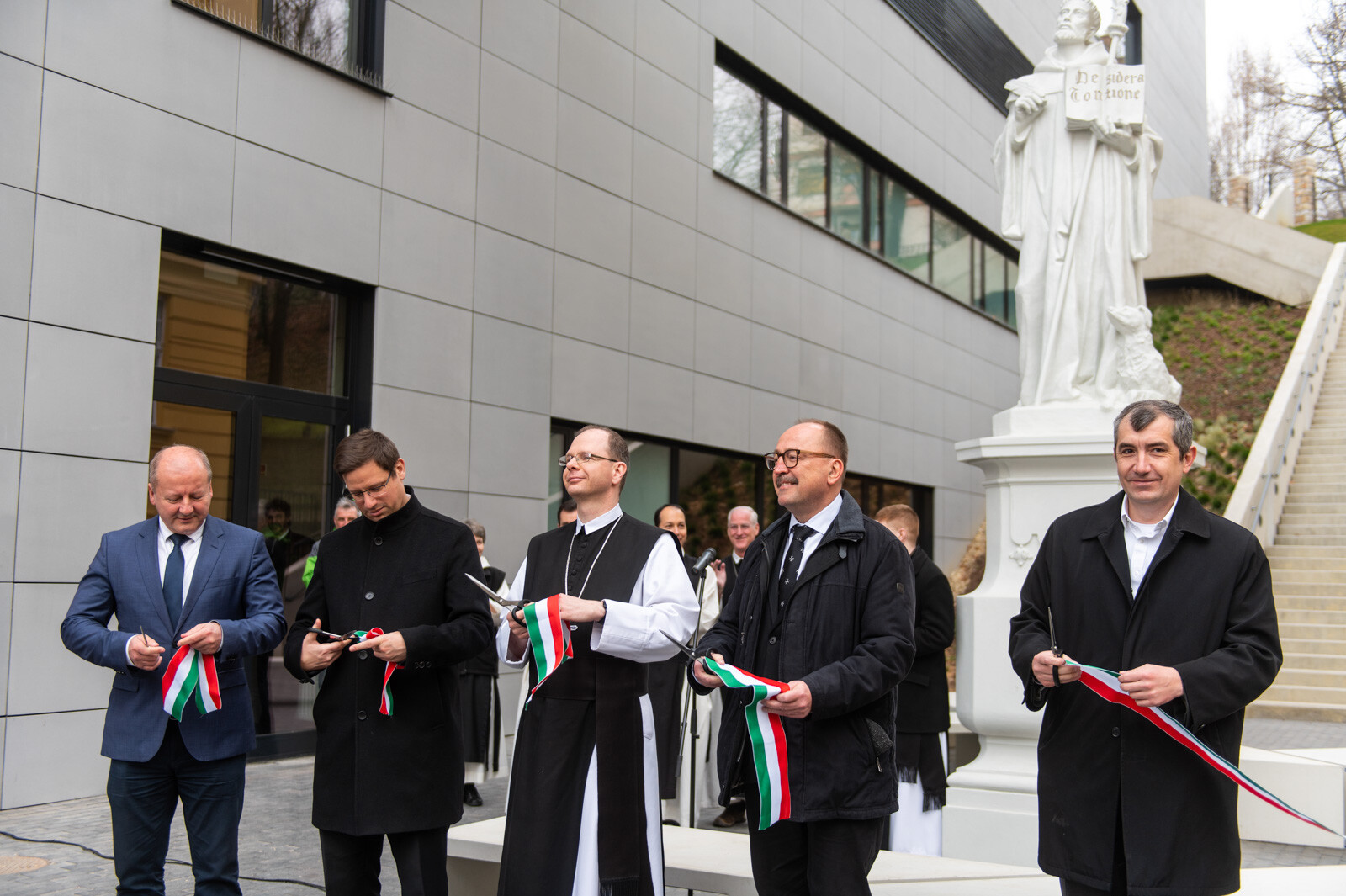 Az új épületet Bérczi László Bernát ciszterci apát áldotta meg. Az apát köszöntőjében úgy fogalmazott: "elődeink bátorságának és hitének talaján állunk ma itt".