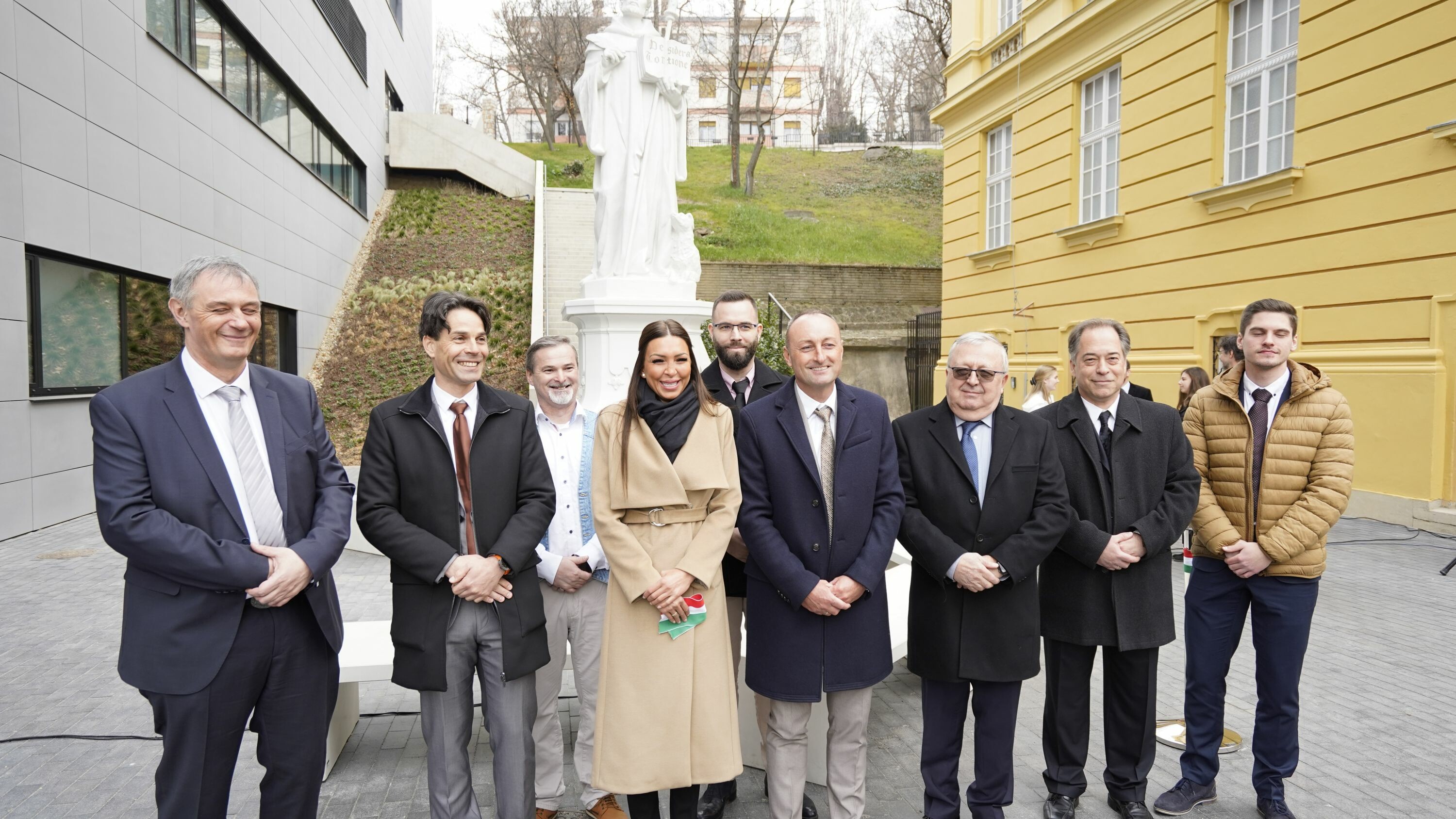 Simicskó István országgyűlési képviselő arról beszélt: az új sportcsarnokkal és a gimnázium mellett lévő Szent Imre-templom felújításával megszépült Újbuda szíve.