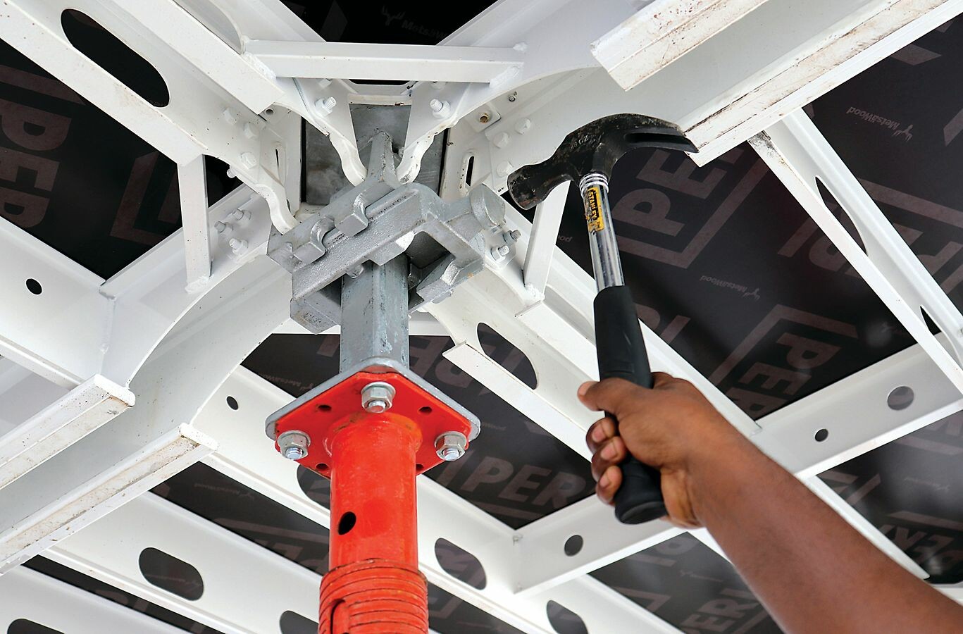 Az ALPHADECK rendszer gyorsan, biztonságosan, alulról szerelhető, és elegendő hozzá két ember – ezen tulajdonságai révén kiemelkedik a födémzsalu rendszerek közül.