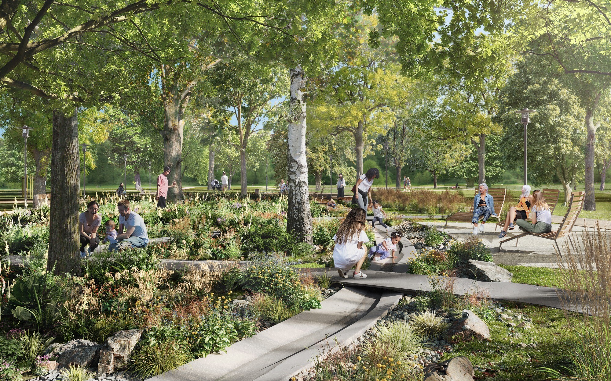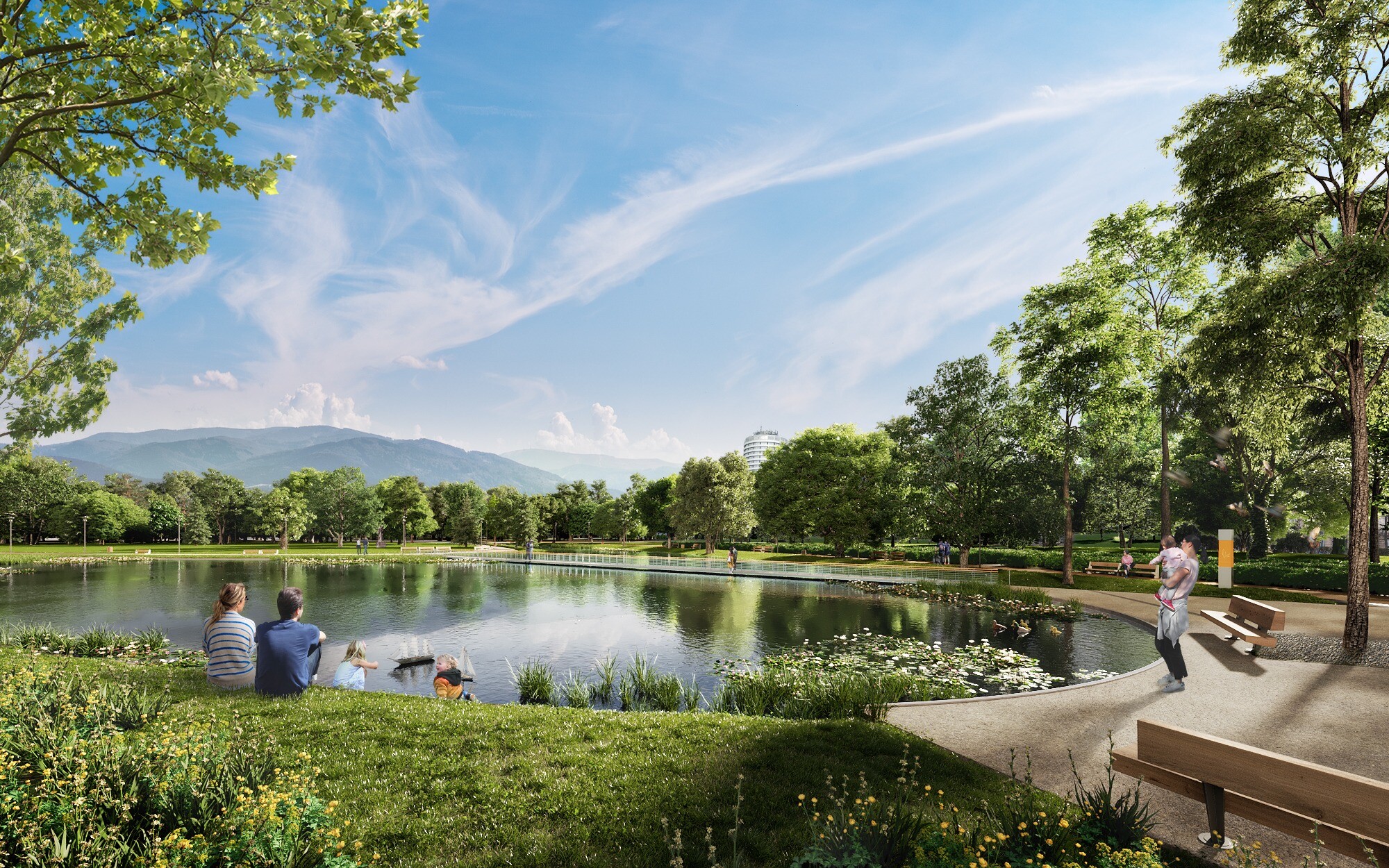A cél az volt, hogy nőjön a park területe, legyen 15 ezer négyzetméterrel nagyobb a zöldfelület, legyen több sportpálya, és jelenjen meg a víz.