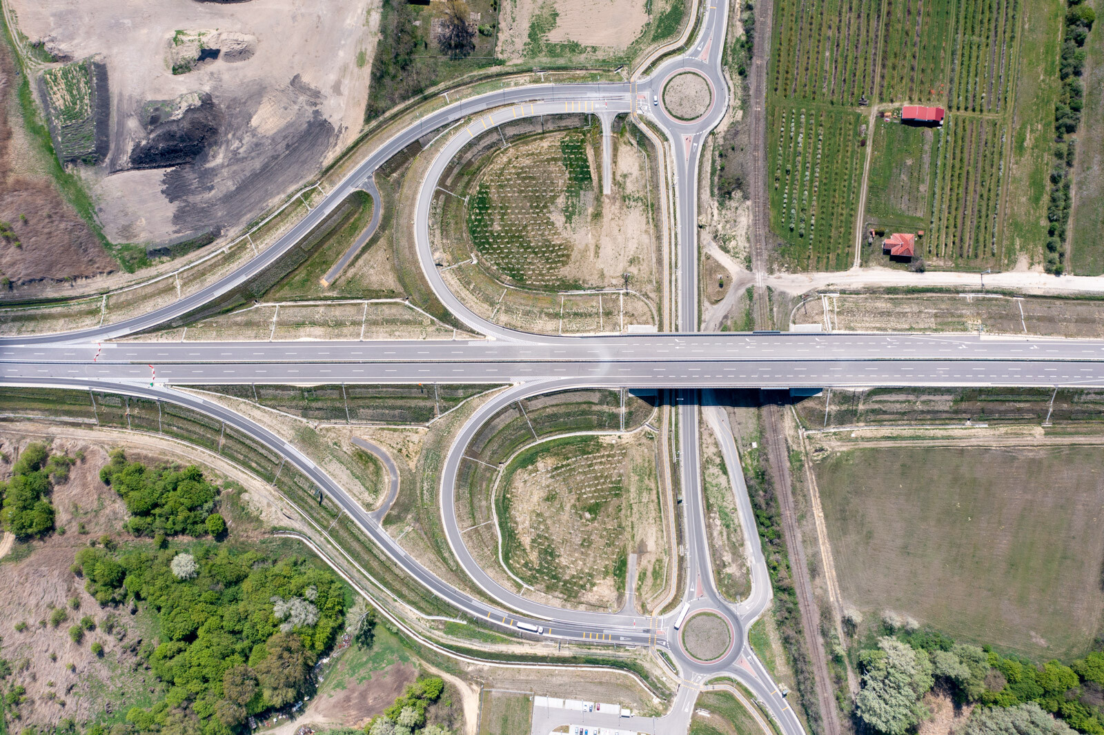 A szentkirályi elkerülő szakasz kezdőpontjában egy közvilágítással ellátott ötágú körforgalmi csomópontot építenek, az elkerülő másik vége pedig osztályozós csomópontot kap. Az elkerülő szakasz nyomvonala mellett ugyanakkor a területek kiszolgálását párhuzamos földúthálózat biztosítja majd, a földutak a csomópontokon keresztül lesznek elérhetőek.