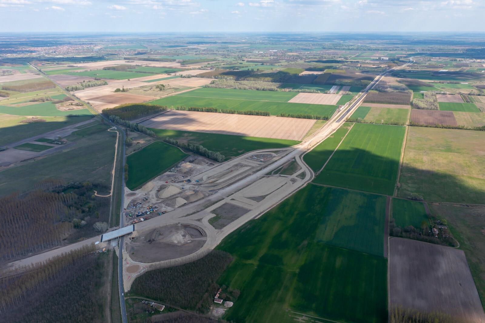 Folyamatos a főpálya építése az M44-esen a Közgép Zrt. kivitelezésében épülő Lakitelek-Szentkirály szakaszon, ahol földmunka, aszfalt alap- és kötőréteg építés, vízépítési munkák zajlanak - értesült a magyarepitok.hu.