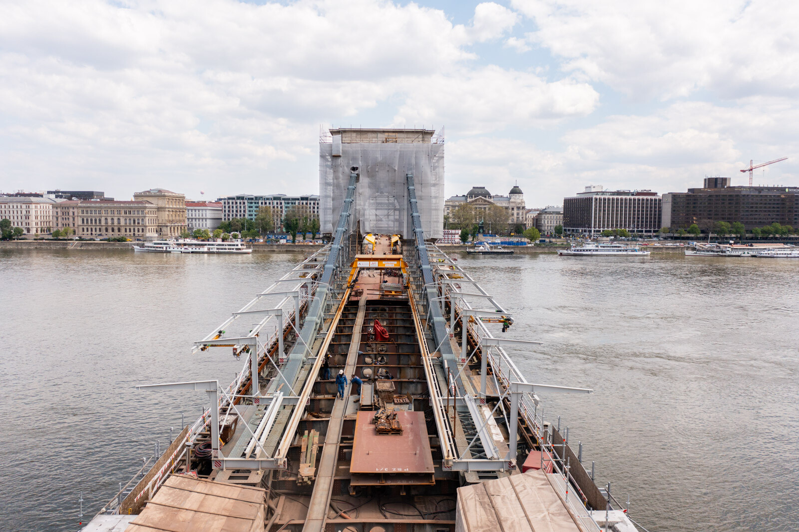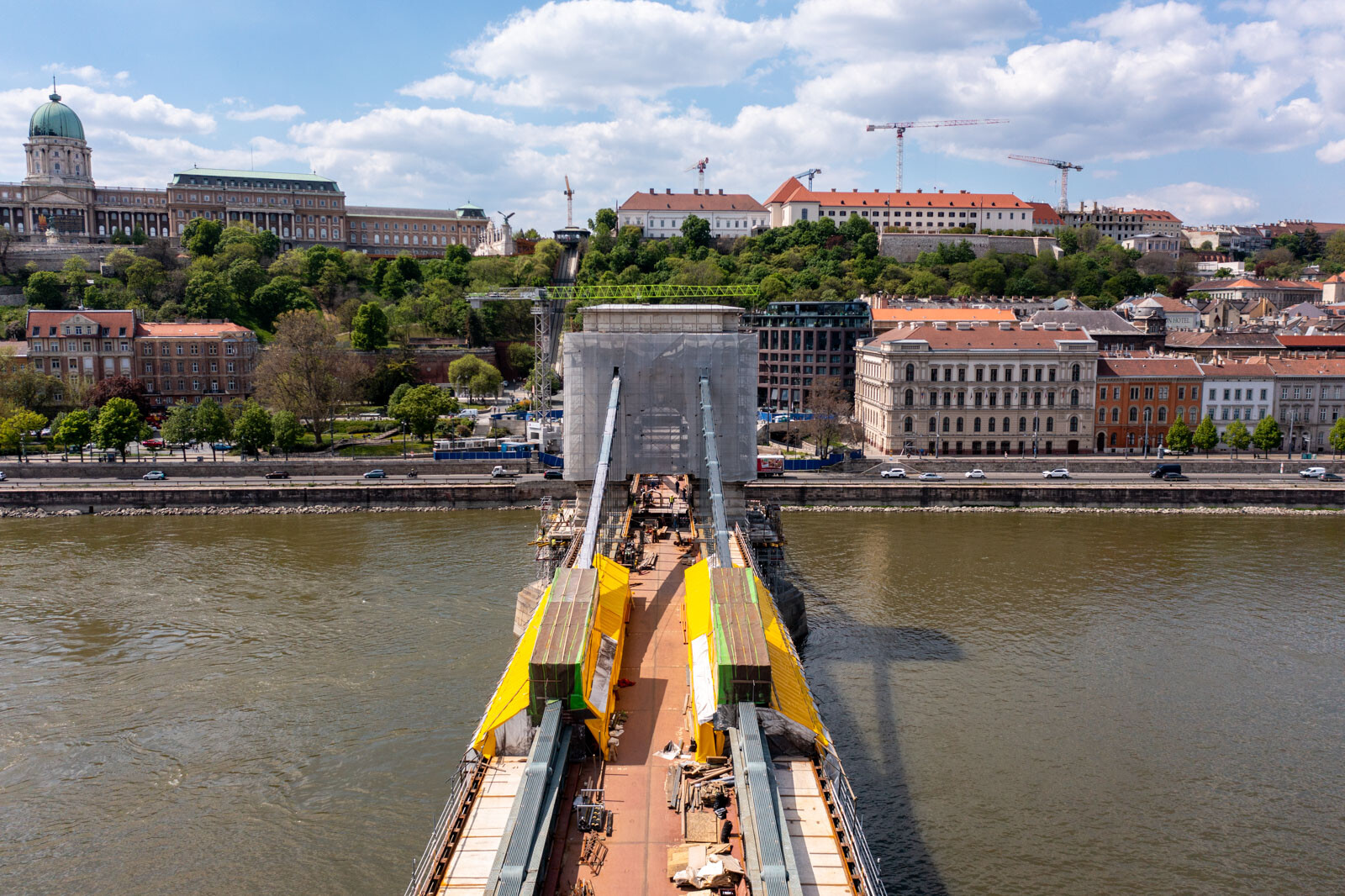 Már a kezdetektől fogva beszámoltunk a Lánchíd felújításáról, mely immár egészen előrehaladott szakaszában van az A-Híd Zrt. kivitelezésében. Írtunk arról, amikor elszállították az oroszlánokat, meglátogattuk a szobrokat a resturátorműhelyben, de az építkezéshez szükséges toronydaruk felállításánál is ott voltunk (itt alvállalkozóként a HBM Soletache Bachy Kft. végzett munkát).