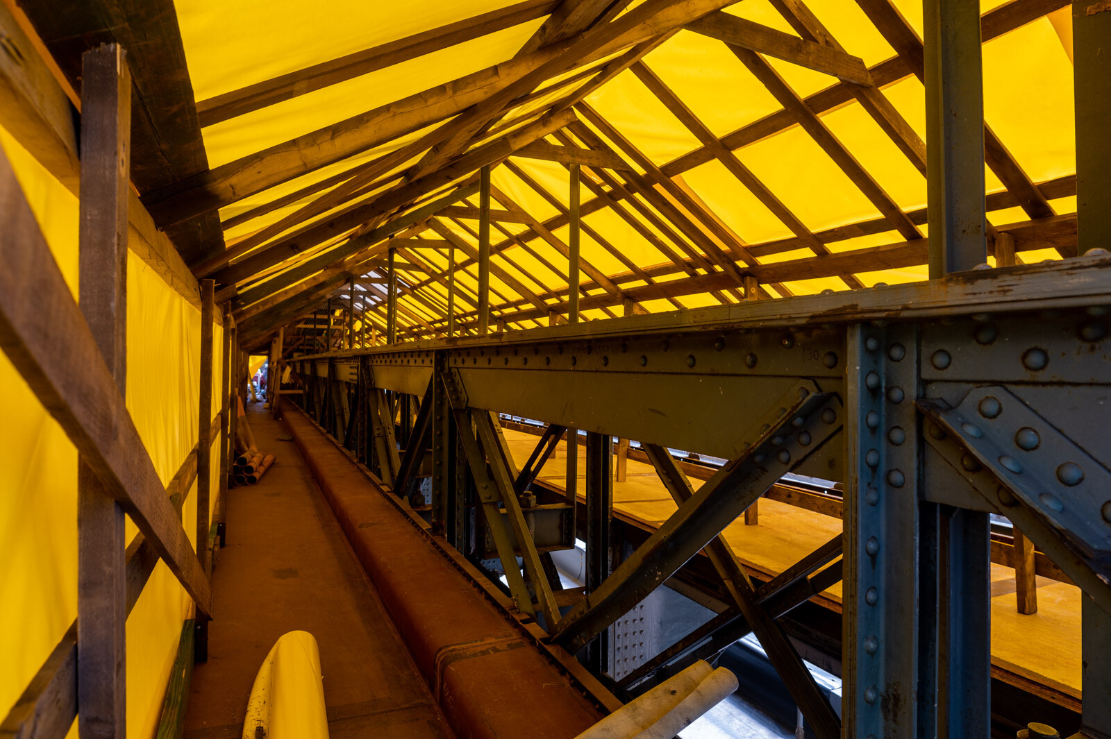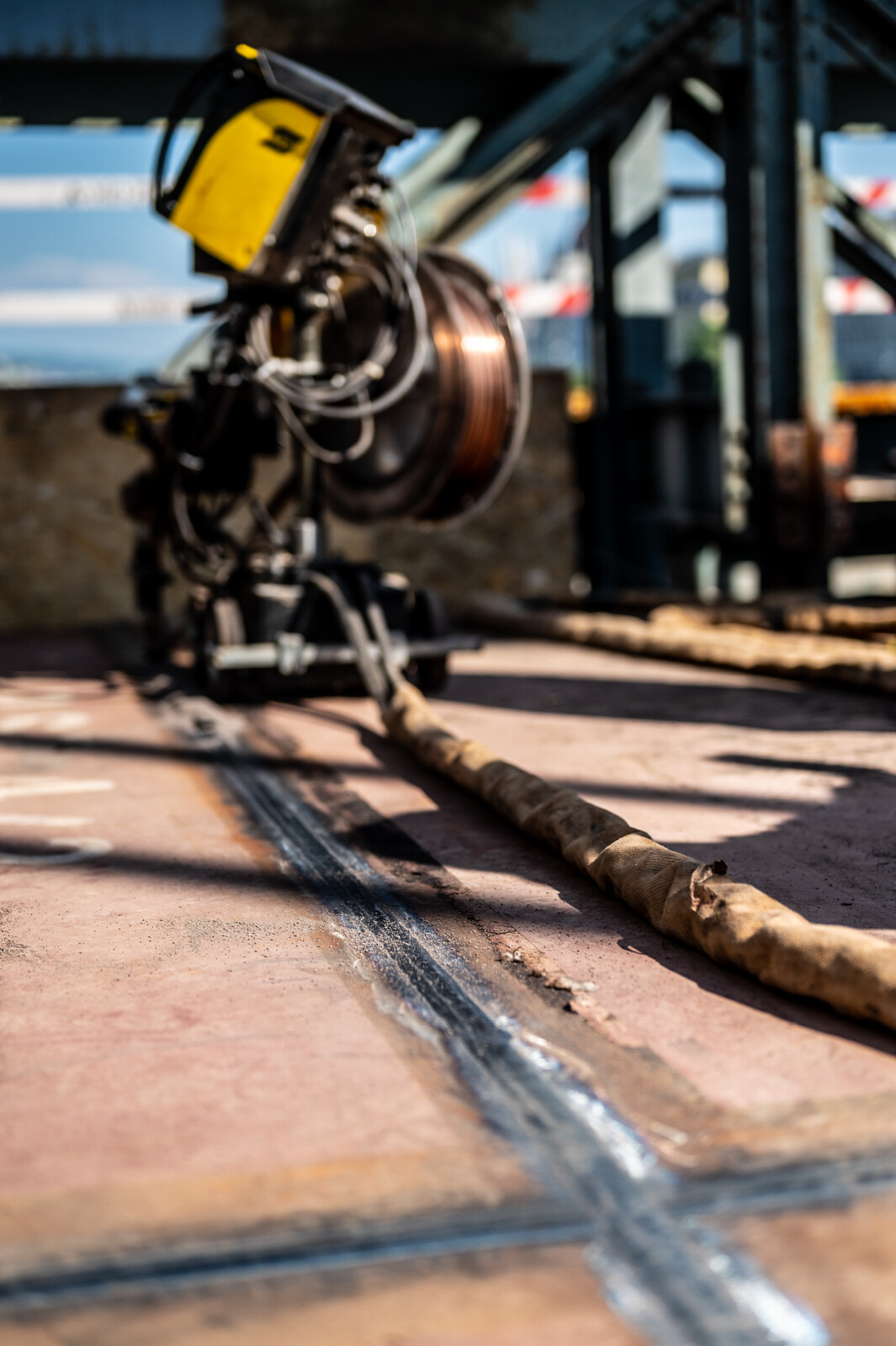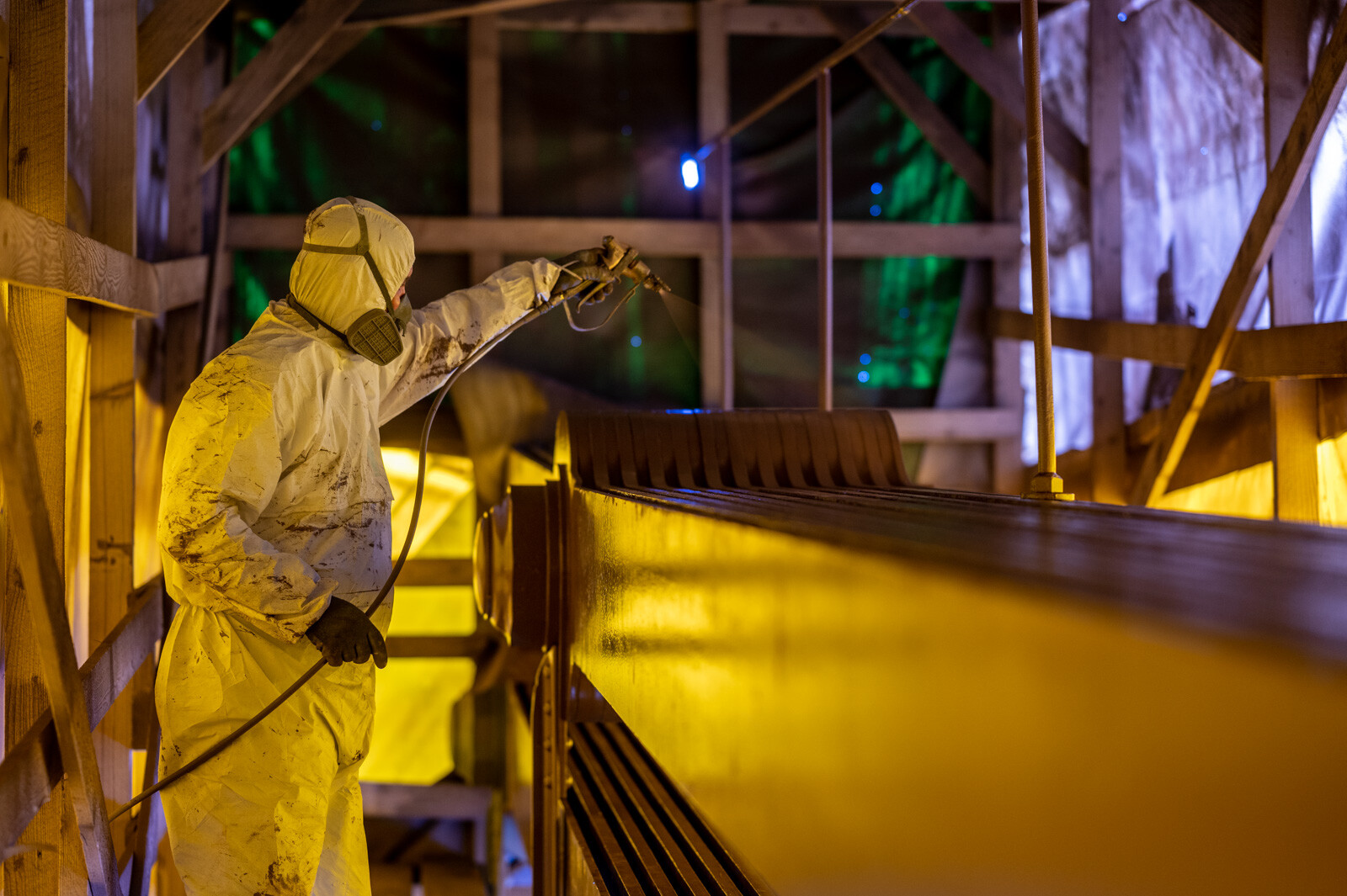 A láncok pilonokból leérkező részeinek festését már tavaly év végéig elvégezték a kivitelező munkatársai, a pályaszinten azonban csak azután láthattak hozzá a rozsdásodás elleni védelemhez, hogy az acélszerkezeti munkákat elvégezték, továbbá elbontották a hatalmas elemeket mozgató bakdaruk különleges sínpályáját.