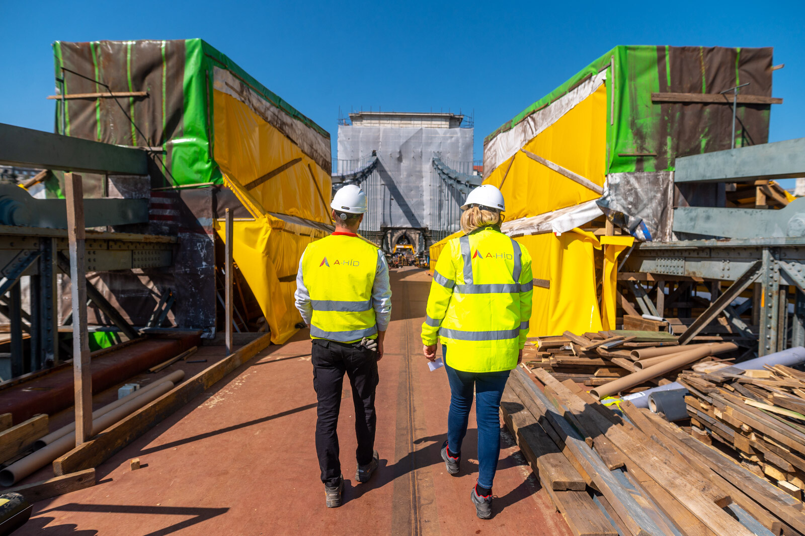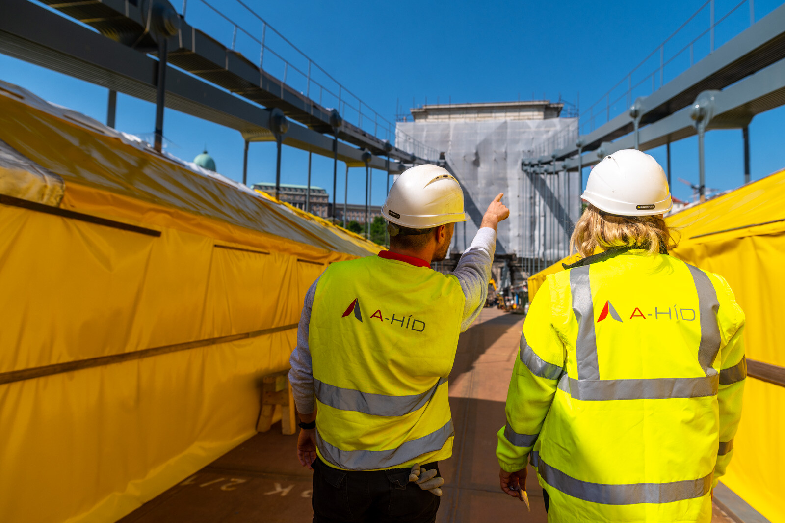 Elkezdődött a medernyílás pályaszerkezetének, valamint a láncok alsó szakaszának rozsdásodás elleni védelme a Lánchídon, melynek projektjén az A-Híd Zrt dolgozik. A munkához sátrakat állítottak fel, amelyeket folyamatosan mozgatnak majd a szakemberek. Emellett már a parti nyílásokban is folyamatosan helyezik be az új acél pályatáblákat, és jól haladnak a helyszíni kőmunkák.