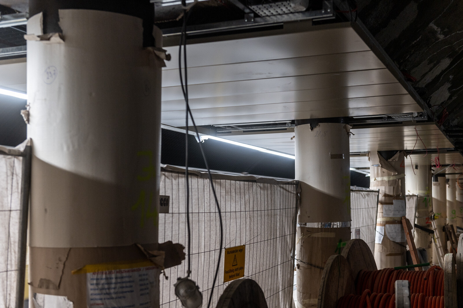 Mindezeken túl a SWIETELSKY szakembereitől lapunk megtudta: a peronszinti álmennyezet akusztikai burkolatai is részben a helyükre kerültek már, illetve elkészült a peron kőburkolata is. Hangsúlyozták még: a munka az ütemterv szerint halad, és a metró területén dolgozó többi kivitelezővel is összehangolt az együttműködés.