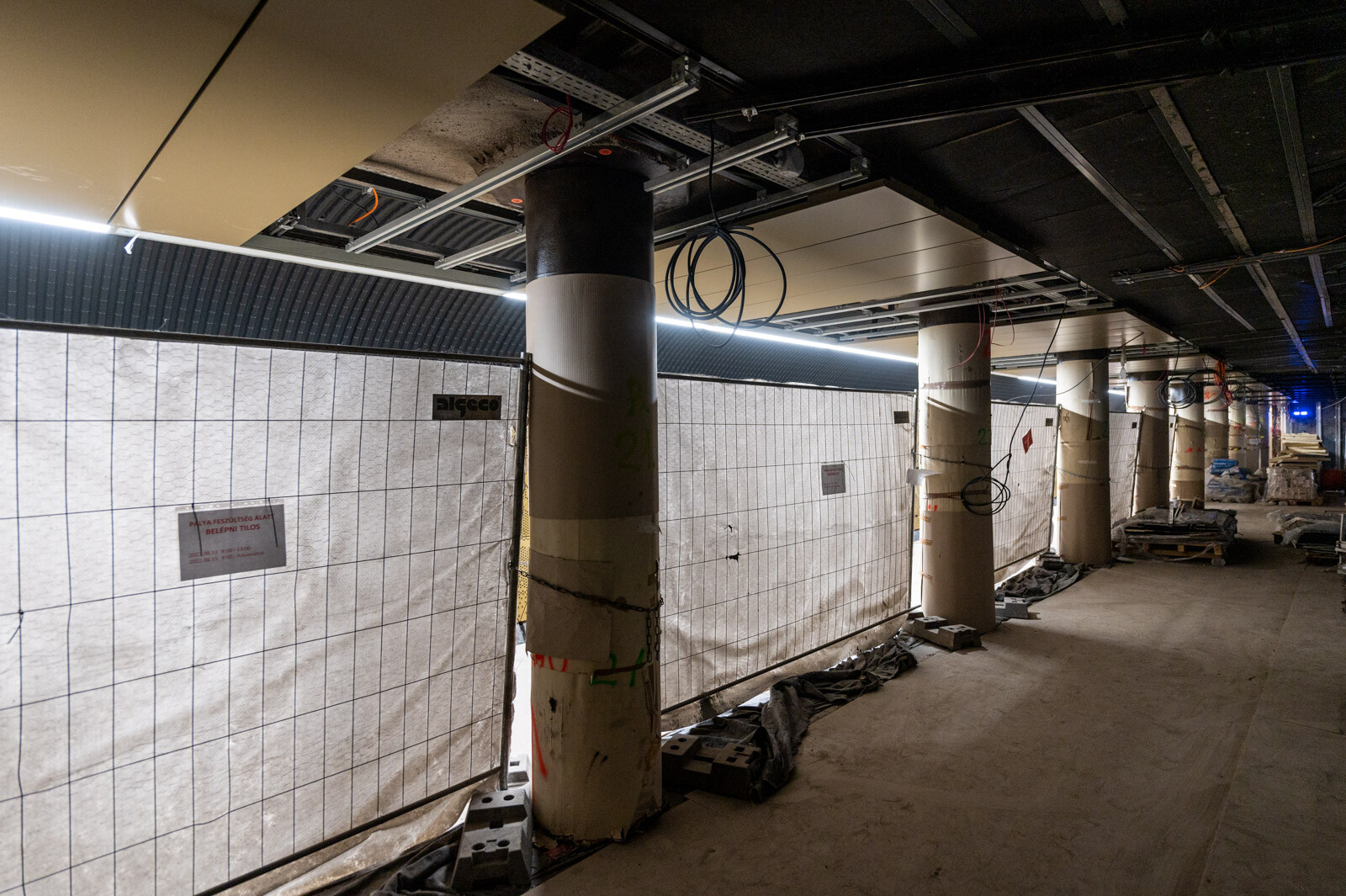 A már eddig is beépített burkolati elemeknek köszönhetően ez az állomásrész kifejezetten látványosan néz ki: a végső, átadásra kerülő állapotot már kezd kirajzolódni.
