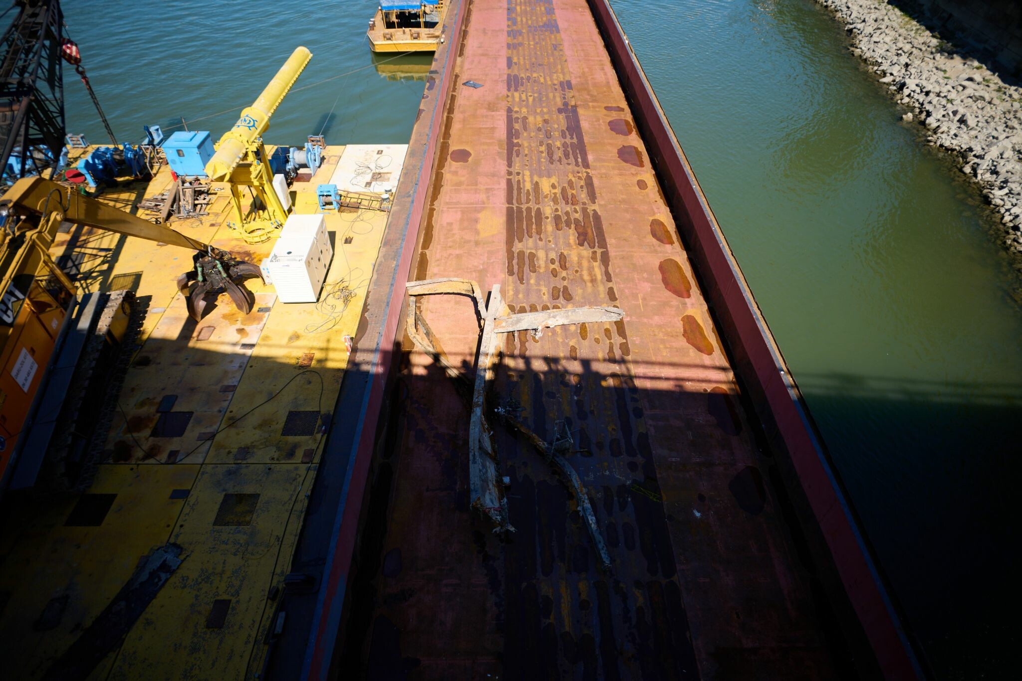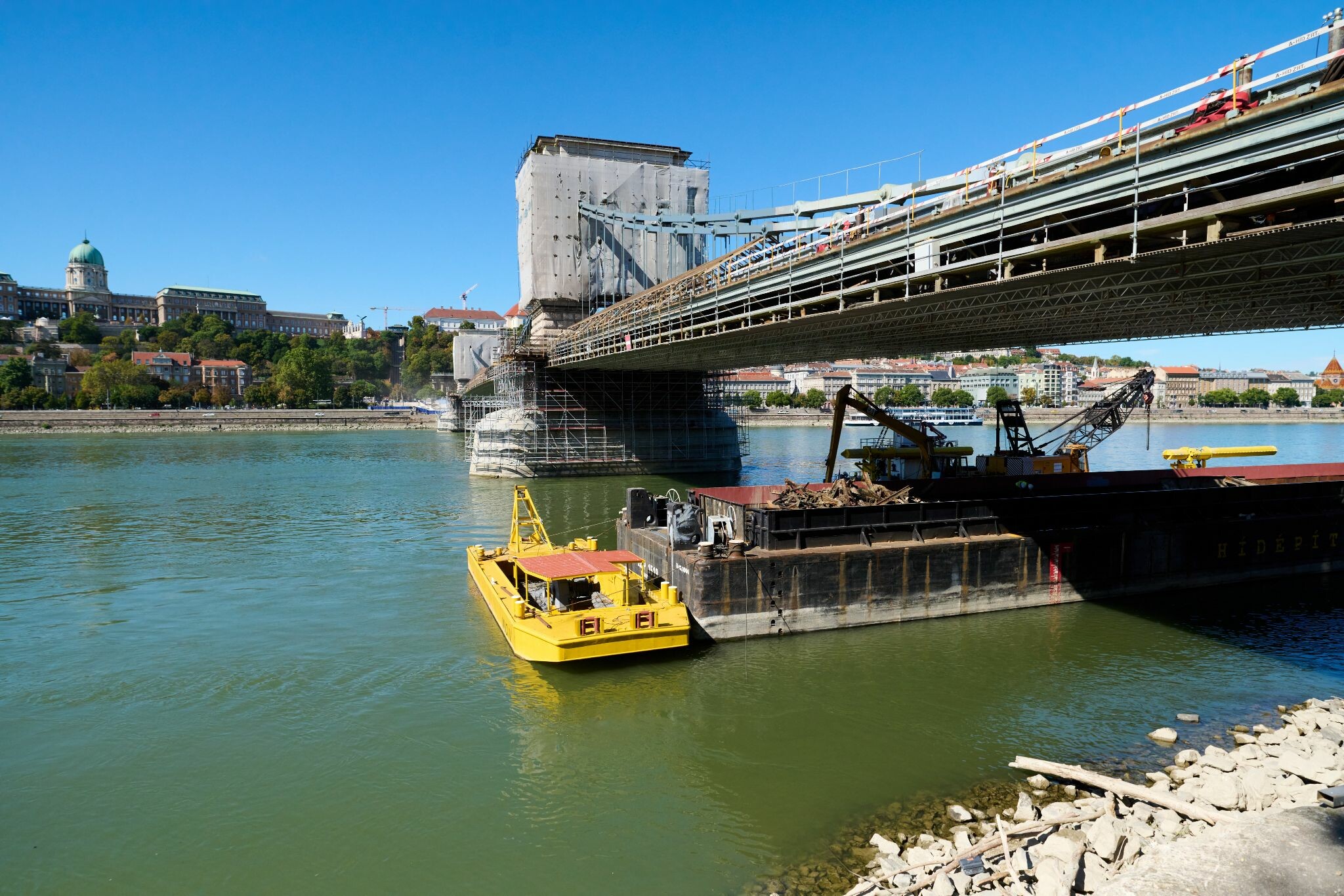 Folytatódott a Duna lőszer- és roncsmentesítése a BKK beruházásában az A-Híd Zrt. kivitelezésében megújuló Lánchídnál. Ennek keretében szeptember 9-én felszínre hozták a Dunából a Lánchíd régi korlátjának egy darabját.