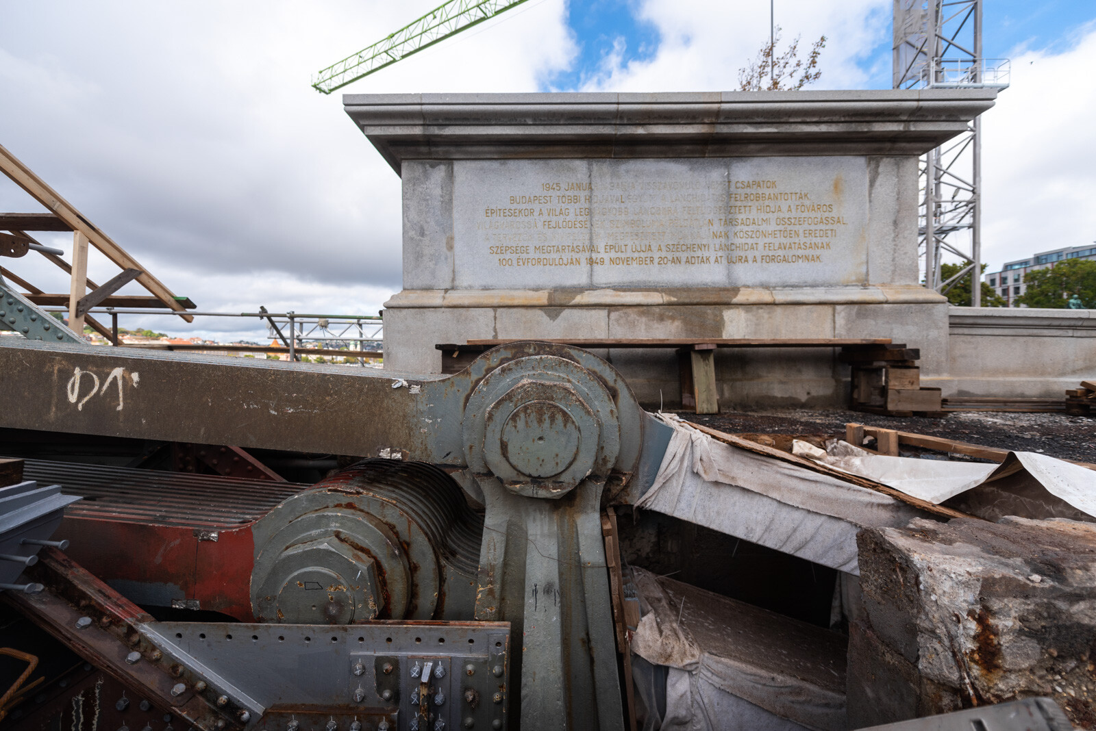 Nemcsak az ősszel visszatérő oroszlánszobrok, hanem a talapzataik is megszépülnek: a Lánchíd pesti oldalán lévőket hamarosan befejezik a kivitelező szakemberei. (A kőoroszlánok restaurációjáról cikket és fotókat is közöltünk.) Ezek a talapzatok az átkelő 1945-ös felrobbantásakor szétestek, és az akkori technikával, illetve rendelkezésre álló anyagokkal 1949-ben építették újjá őket.