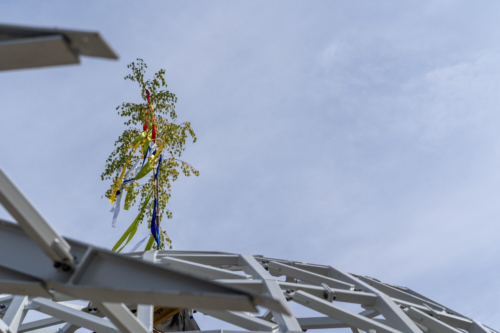 A munkafolyamat részeként az 1.250 négyzetméteres üvegtető kialakítására egyedi gyártású, 4,5x3 méteres osztatlan üvegtáblákat emeltek be, melyek súlya egyenként 1,3 tonna volt.