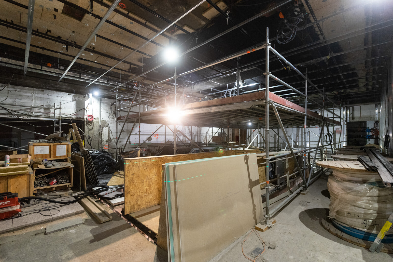 A SWIETELSKY Építő Kft. szakemberei már az álmennyezet és az akusztikai burkolatok építését végzik, illetve zajlik az oldalfal másodlagos tartószerkezetének építése is.