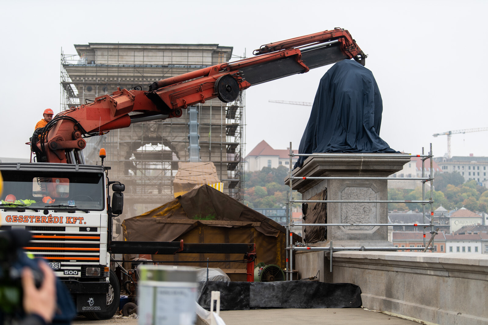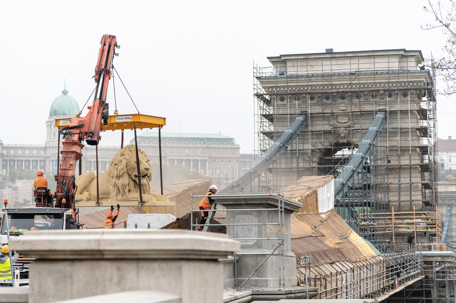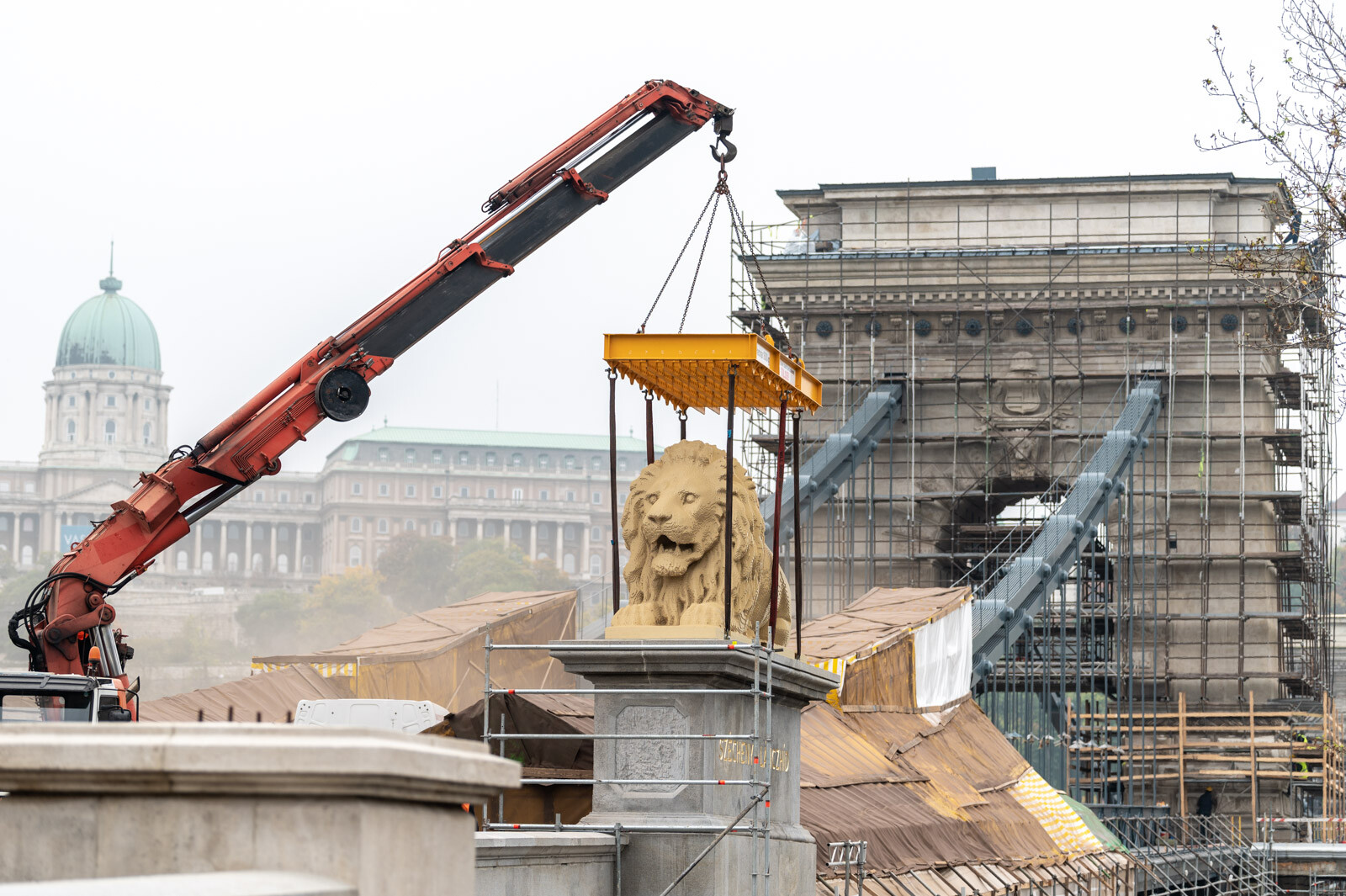 Az egyenként több mint 10 tonnás szobrok visszaköltöztetése ugyan október 18-án már megkezdődött a budai oldalra – erről részletes cikkben és fotógalériában számoltunk be -, de jelenleg még nem láthatók, mert az építkezés miatt elzárt területen vannak.