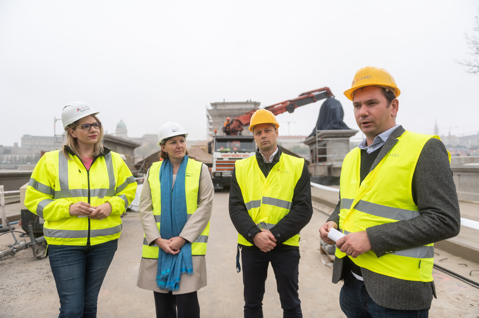 „Büszkeséggel tölt el, hogy egymást követik a jelentős mérföldkövek a Lánchíd felújításában: csaknem másfél hete volt, hogy visszatértek a budai hídfő megszépült kőoroszlánjai, és lélegzet-visszafojtva figyeltük, ahogy a daru a helyére emeli az egyenként több mint tíztonnás szobrok darabjait” – mondta el az eseményen Walter Katalin, a Budapesti Közlekedési Központ vezérigazgatója.