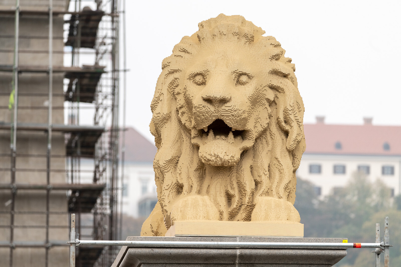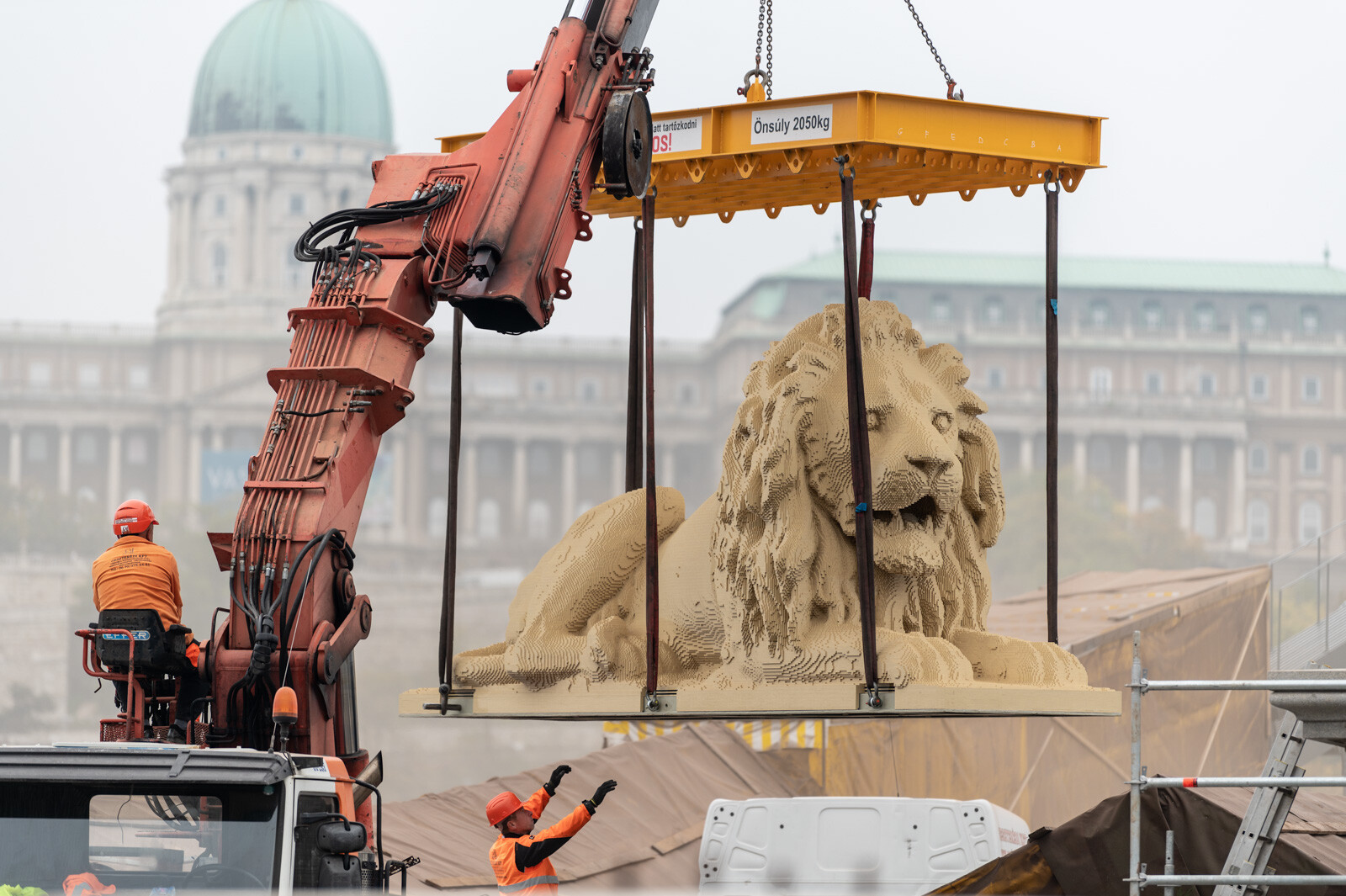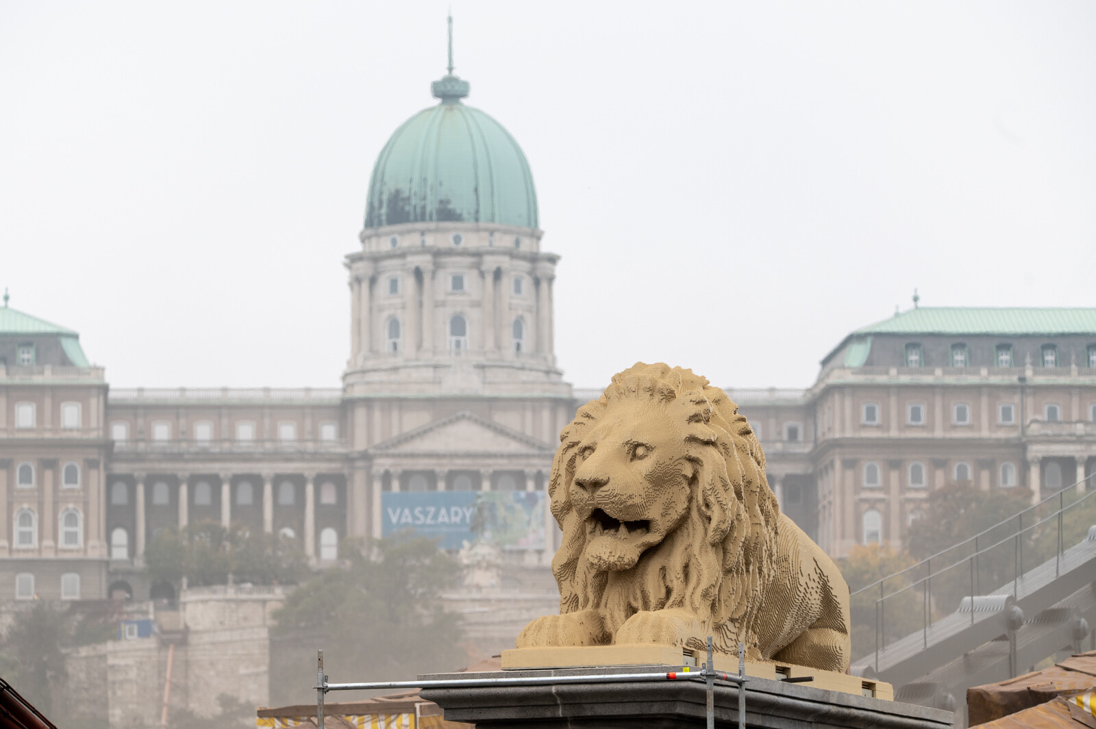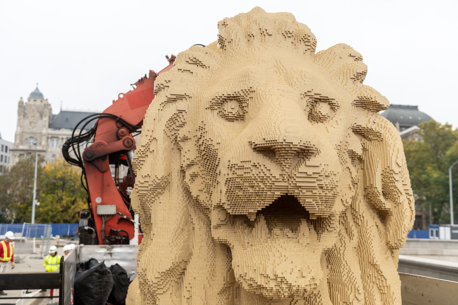 Az eredeti kőoroszlánok LEGO kockákból épített teljes méretű mása november végéig tekinthető meg a Clark Ádám téren.