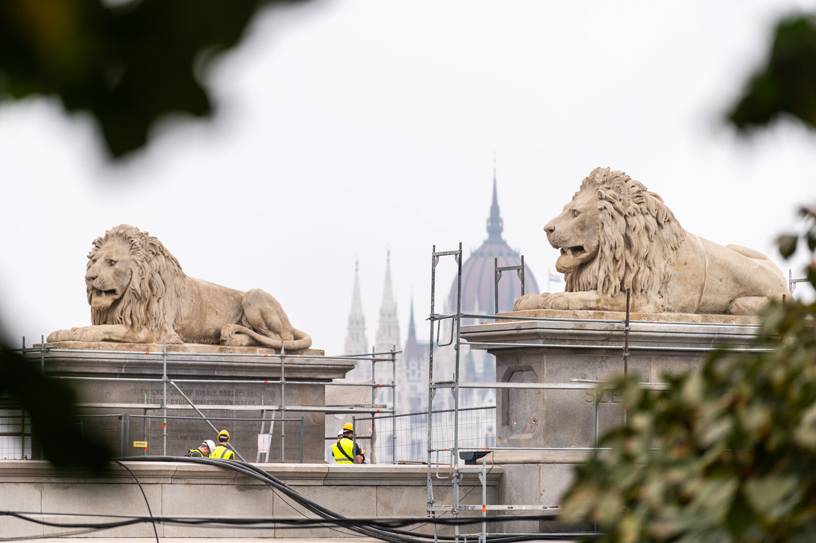 Addig is a turisták, valamint a budapestiek, akik számára oly fontos ez a jelkép, a Clark Ádám téren vehetik szemügyre az oroszlánok eredeti nagyságú mását, melynek leleplezéséről fotósunk galériát készített.