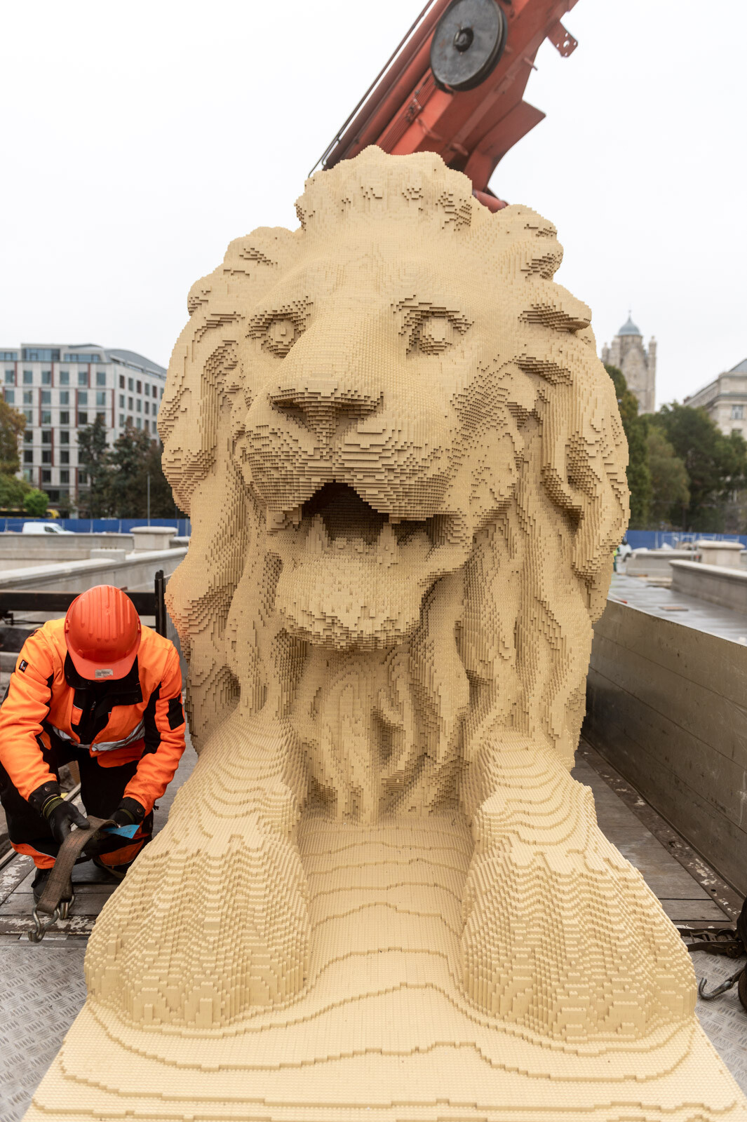 Az oroszlánt Dóczy Balázs hivatalos LEGO építőmester modellezte és tervezte, és 560 óra alatt építették meg. Balázs a világ 27 hivatalos LEGO építőmesterének egyike, akinek nevéhez már több, kockákból megépített budapesti nevezetesség és épület kapcsolódik – többek között a Lánchíd vagy a Zeneakadémia makettje.