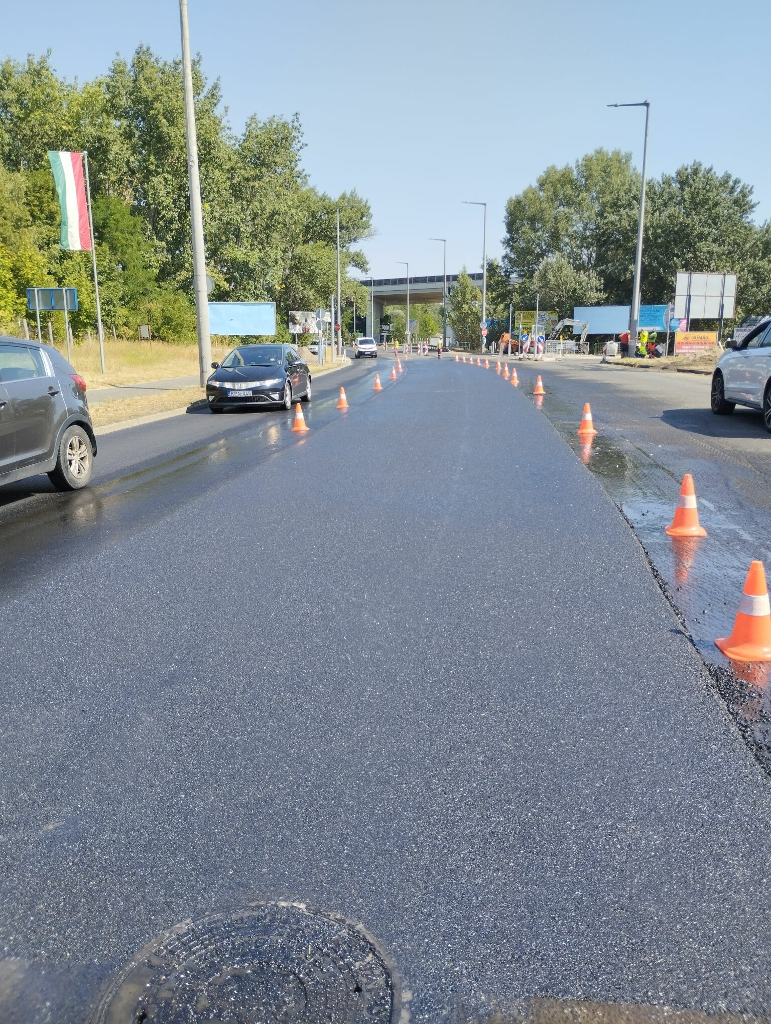 Megtörtént továbbá a teljes csomópont aszfalt burkolat cseréje is körülbelül 3000 négyzetméter felületen, 8 forgalomtechnikai ütemben, melyek között szükségszerű volt az éjszakai munkavégzés is a kivitelező részéről a forgalmi torlódások minimalizálása érdekében.