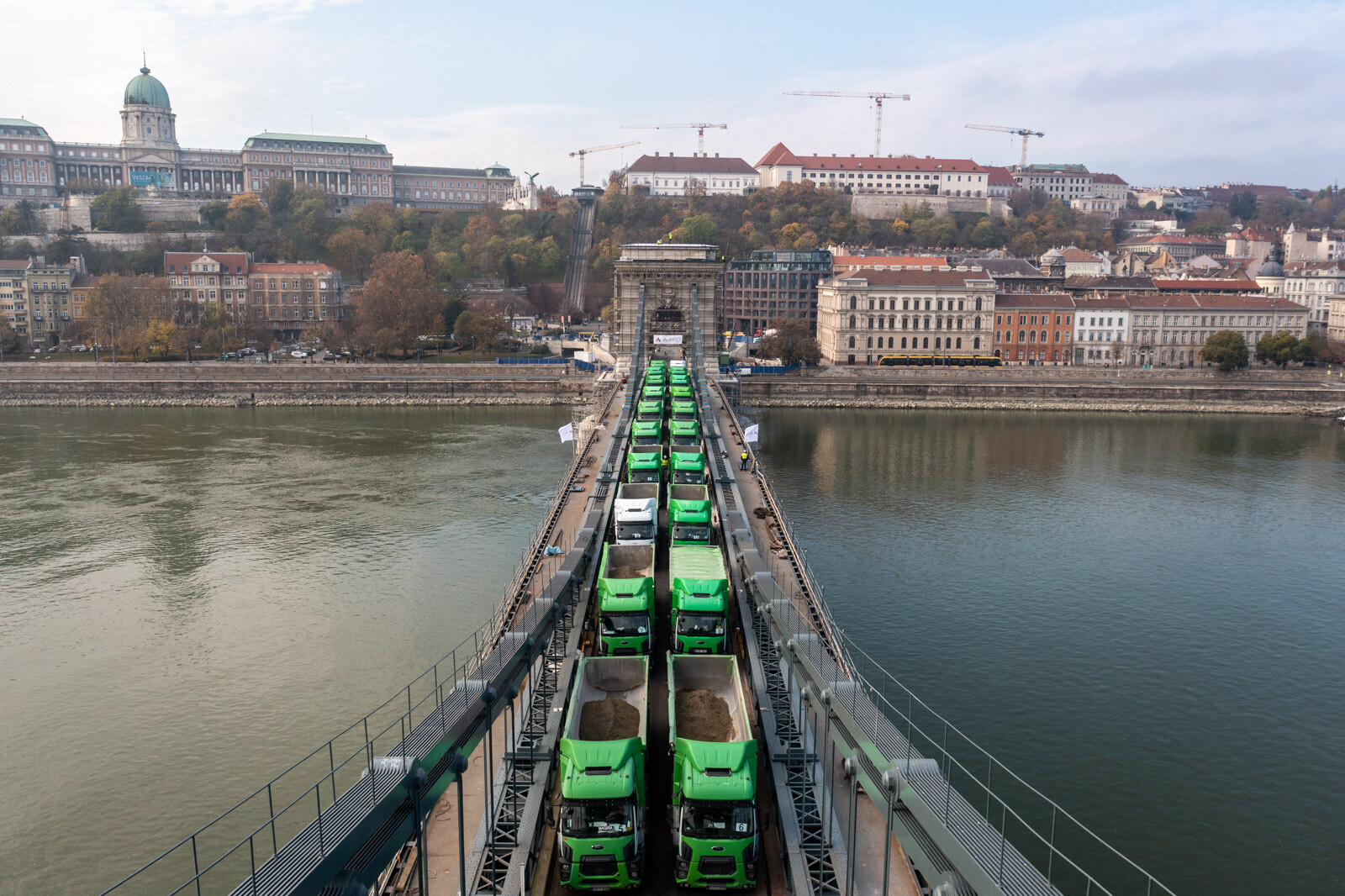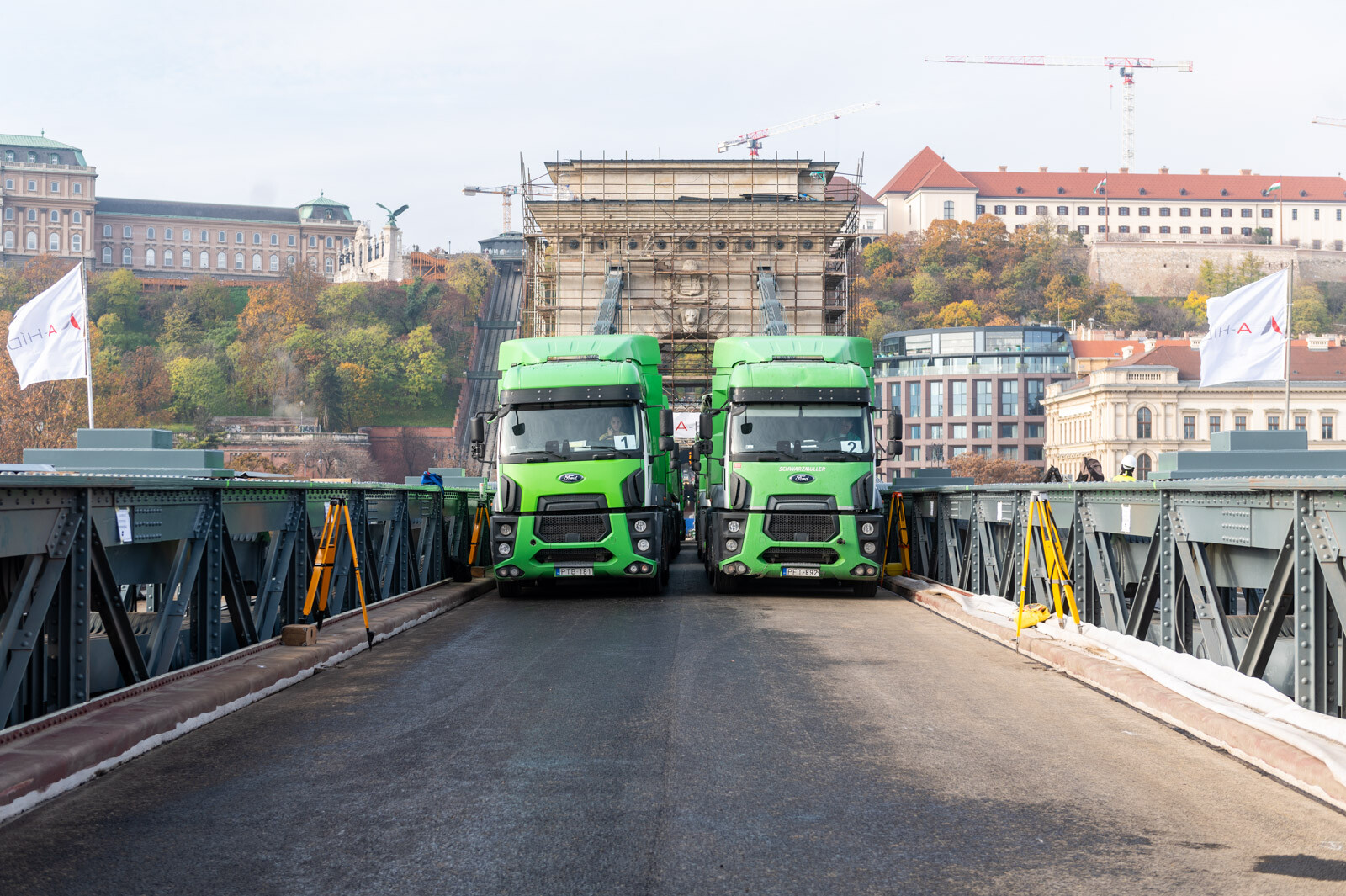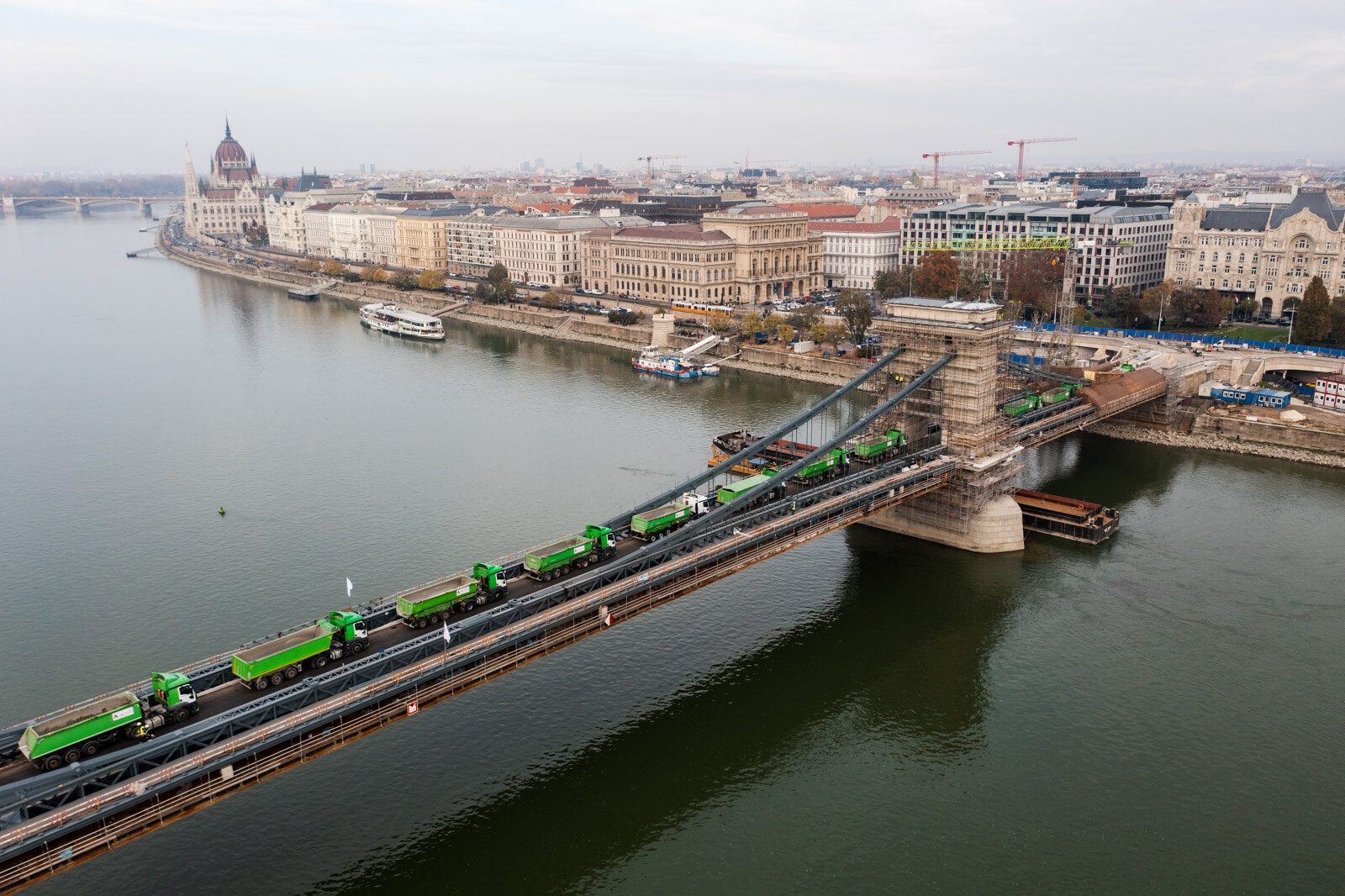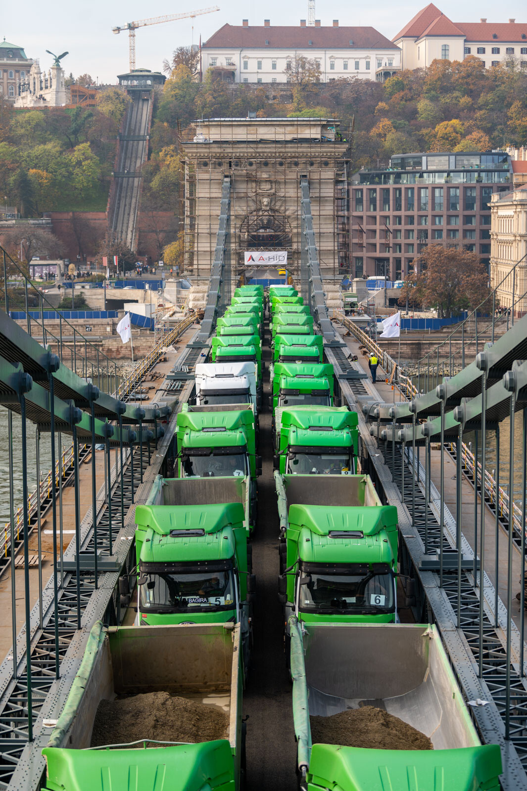 November 12-én, szombaton 24, egyenként 20 tonnás tehergépkocsival tesztelték a Lánchíd teherbírását. Az elsődleges adatok alapján jól vizsgázott az átkelő, amelynek a felújítása továbbra is az ütemtervnek megfelelően és a költségkereten belül zajlik az A-Híd Zrt. kivitelezésében – tájékoztatott a Budapesti Közlekedési Központ (BKK).