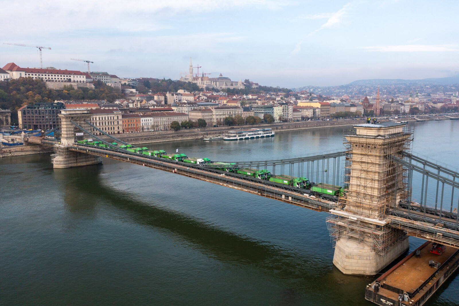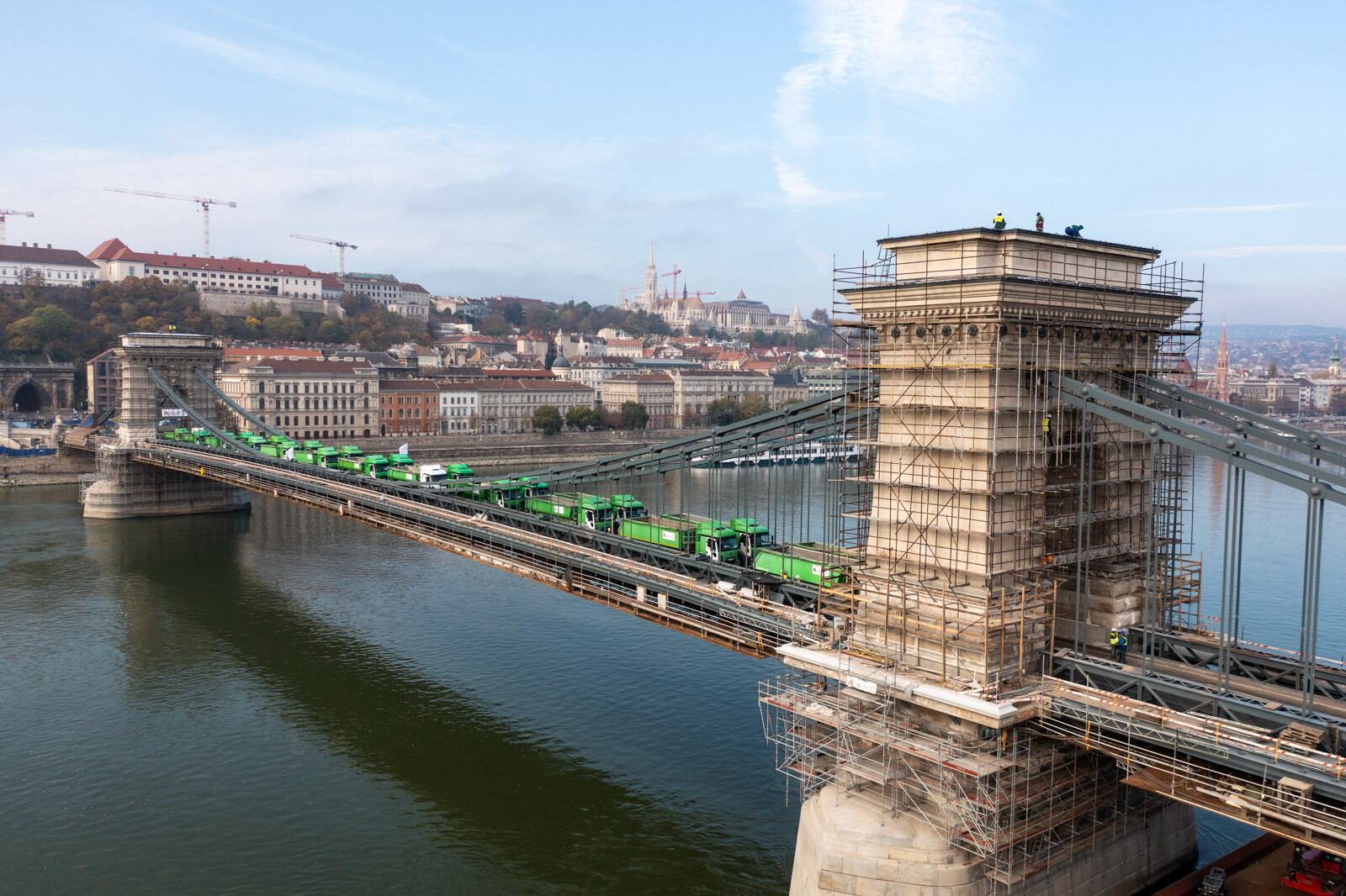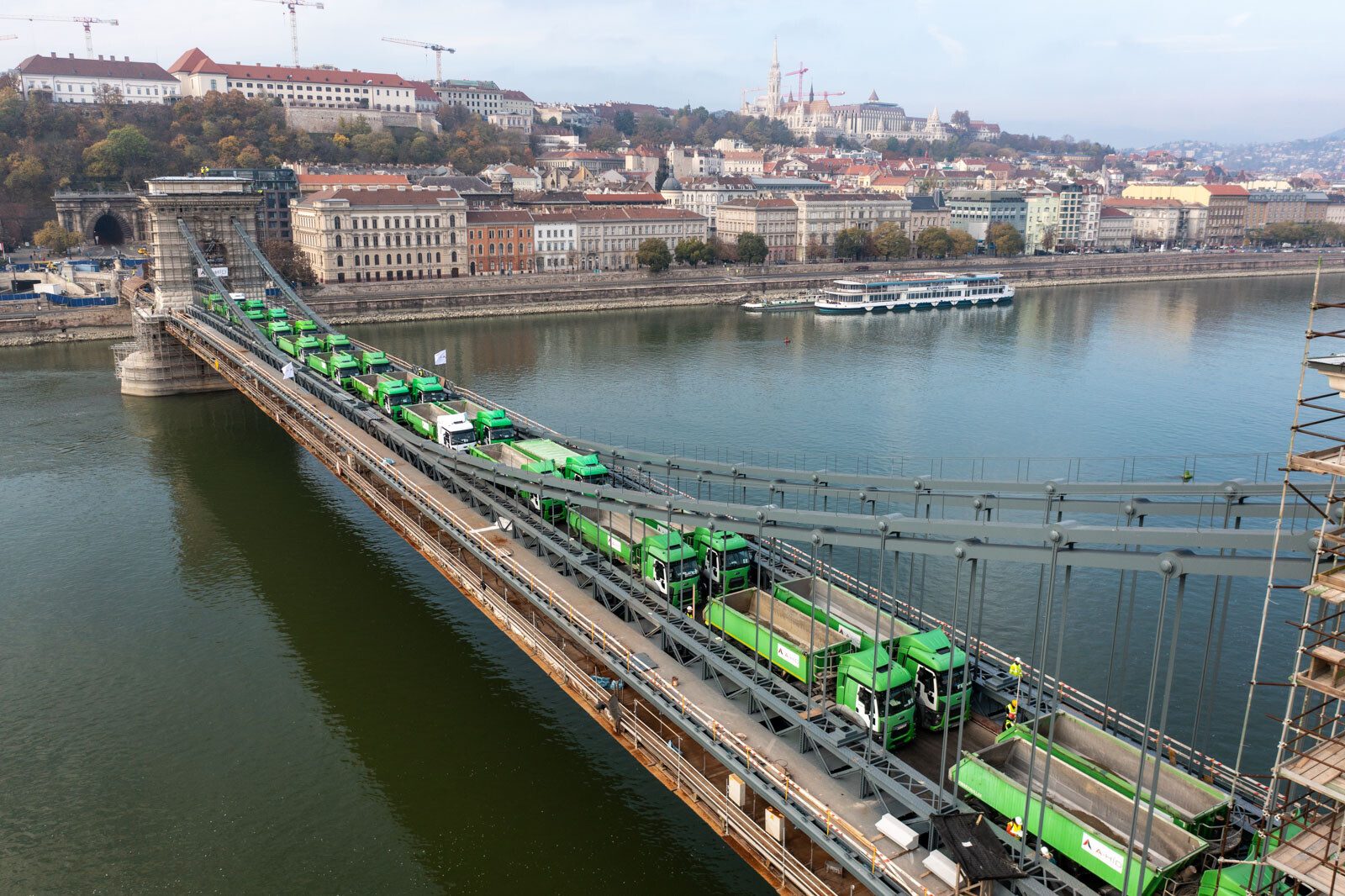 November 12-én, szombaton 24, egyenként 20 tonnás tehergépkocsival tesztelték a Lánchíd teherbírását. Az elsődleges adatok alapján jól vizsgázott az átkelő, amelynek a felújítása továbbra is az ütemtervnek megfelelően és a költségkereten belül zajlik az A-Híd Zrt. kivitelezésében – tájékoztatott a Budapesti Közlekedési Központ (BKK).