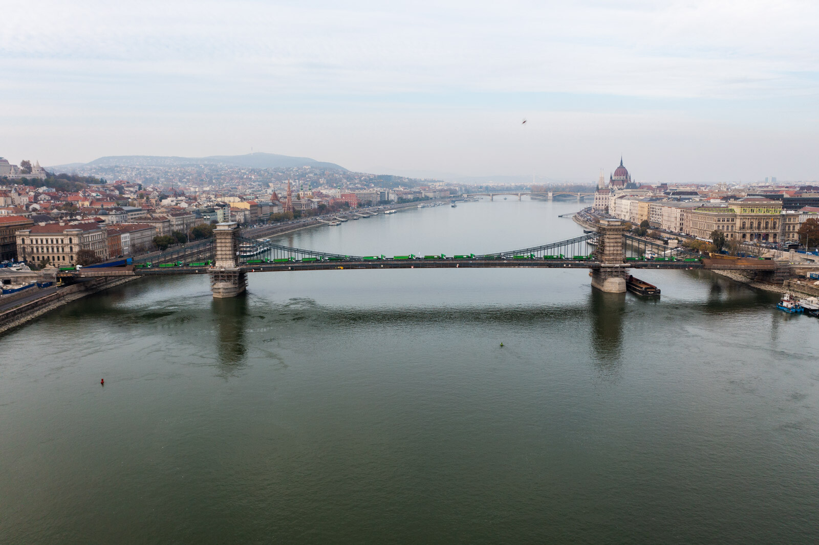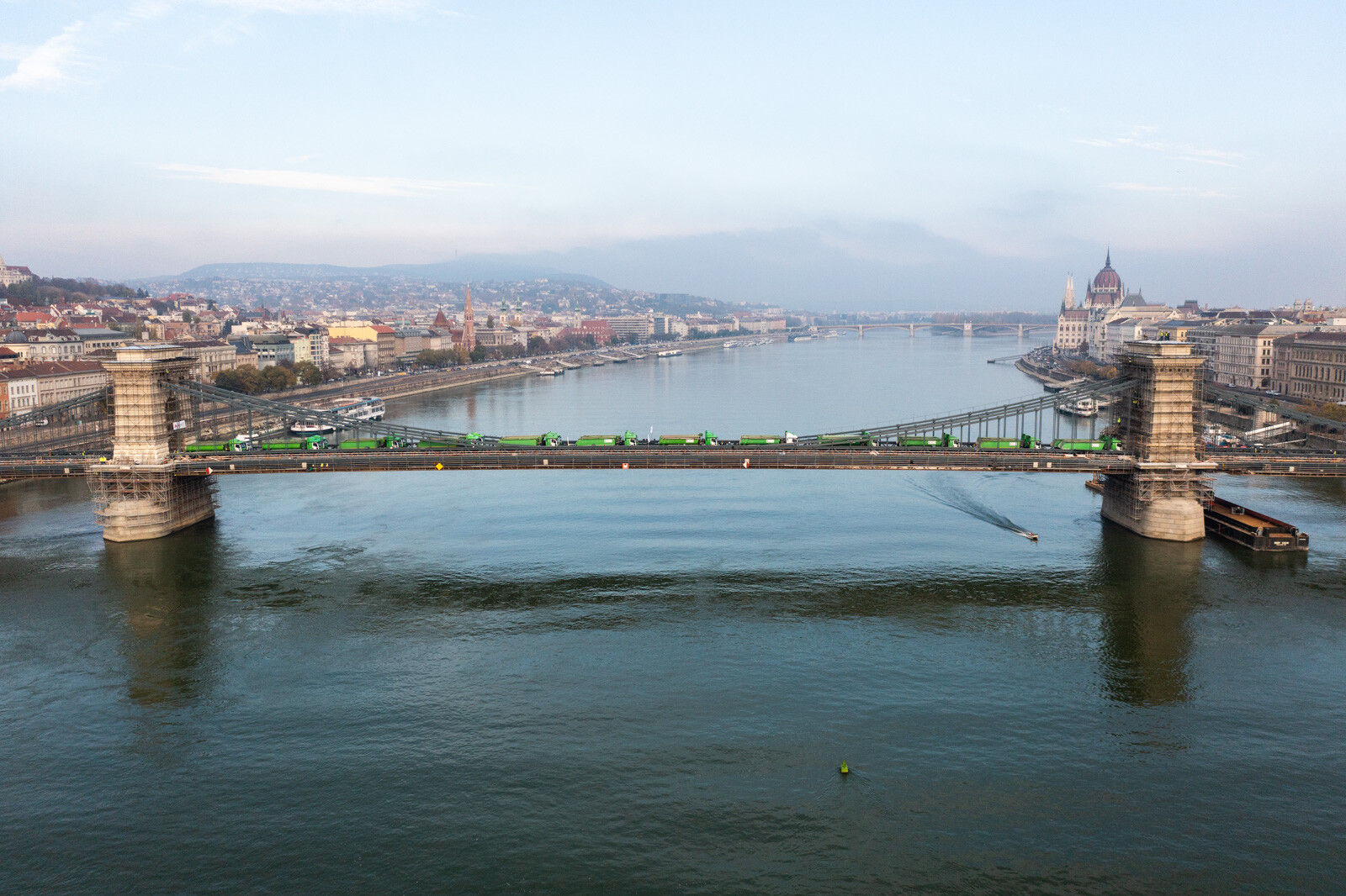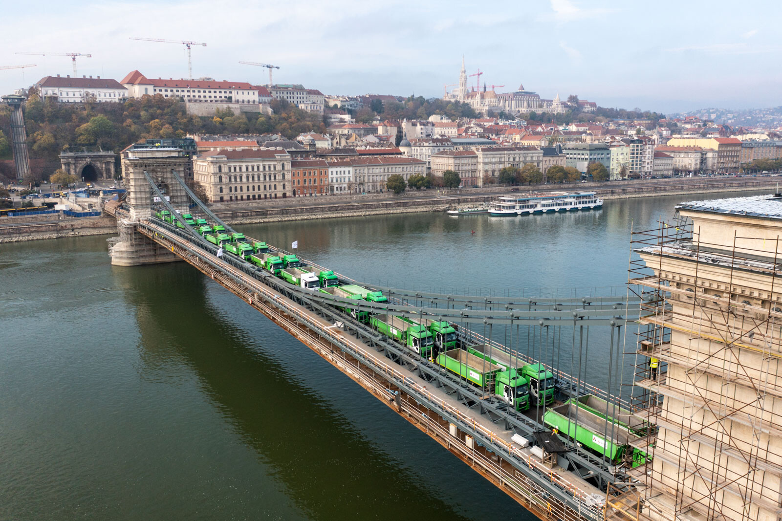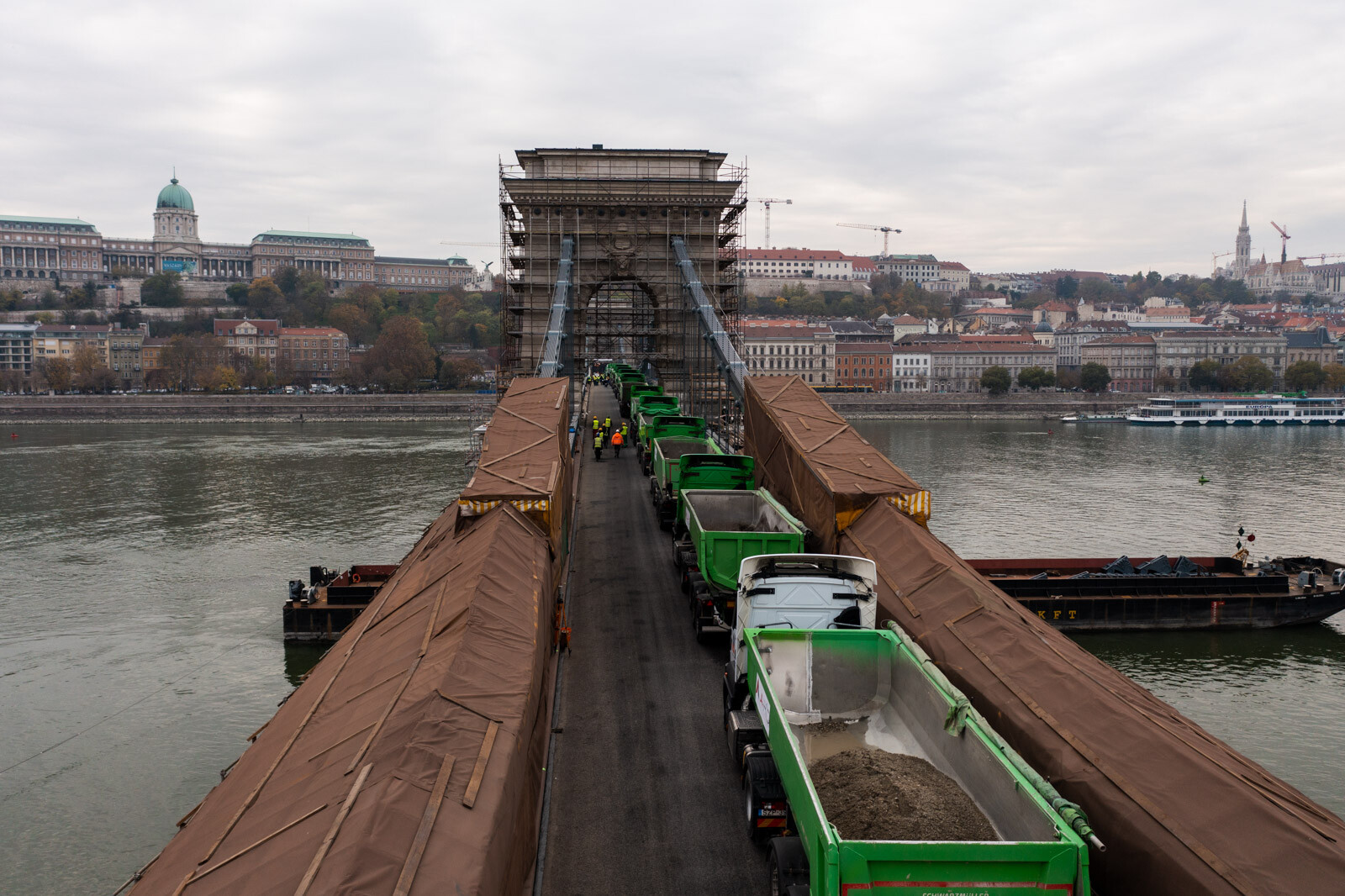 November 12-én, szombaton 24, egyenként 20 tonnás tehergépkocsival tesztelték a Lánchíd teherbírását. Az elsődleges adatok alapján jól vizsgázott az átkelő, amelynek a felújítása továbbra is az ütemtervnek megfelelően és a költségkereten belül zajlik az A-Híd Zrt. kivitelezésében – tájékoztatott a Budapesti Közlekedési Központ (BKK).