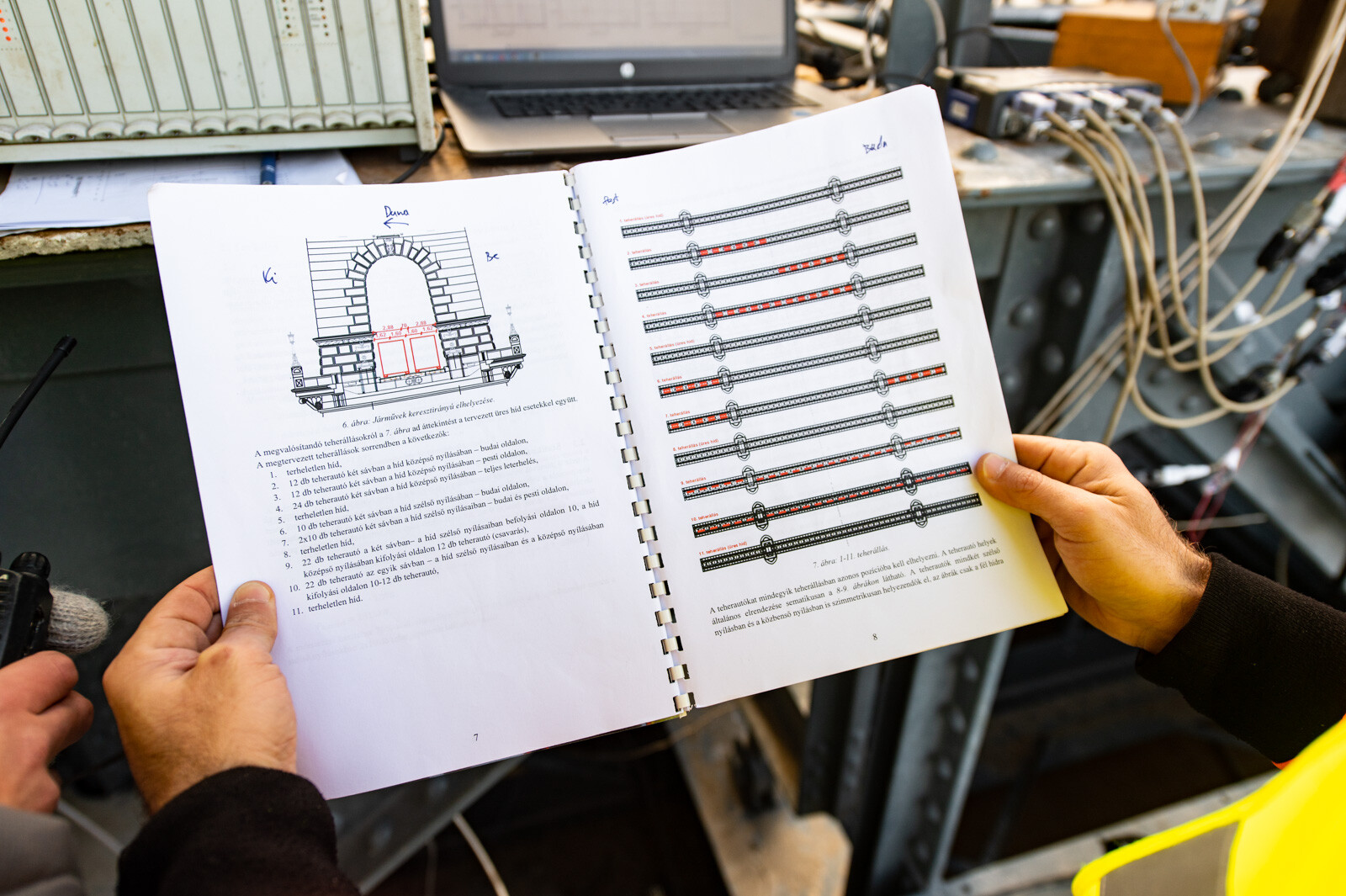 A próbaterhelés méréseit a Budapesti Műszaki és Gazdaságtudományi Egyetem Hidak és Szerkezetek Tanszékének szakemberei végezték. Ehhez 24, egyenként 20 tonnás teherautót használtak tucatnyi teherállásban, időnként üres útpályával, máskor egy vagy két sorban, egyszerre 12 vagy 24 járművet felsorakoztatva az előre meghatározott pozíciókban.