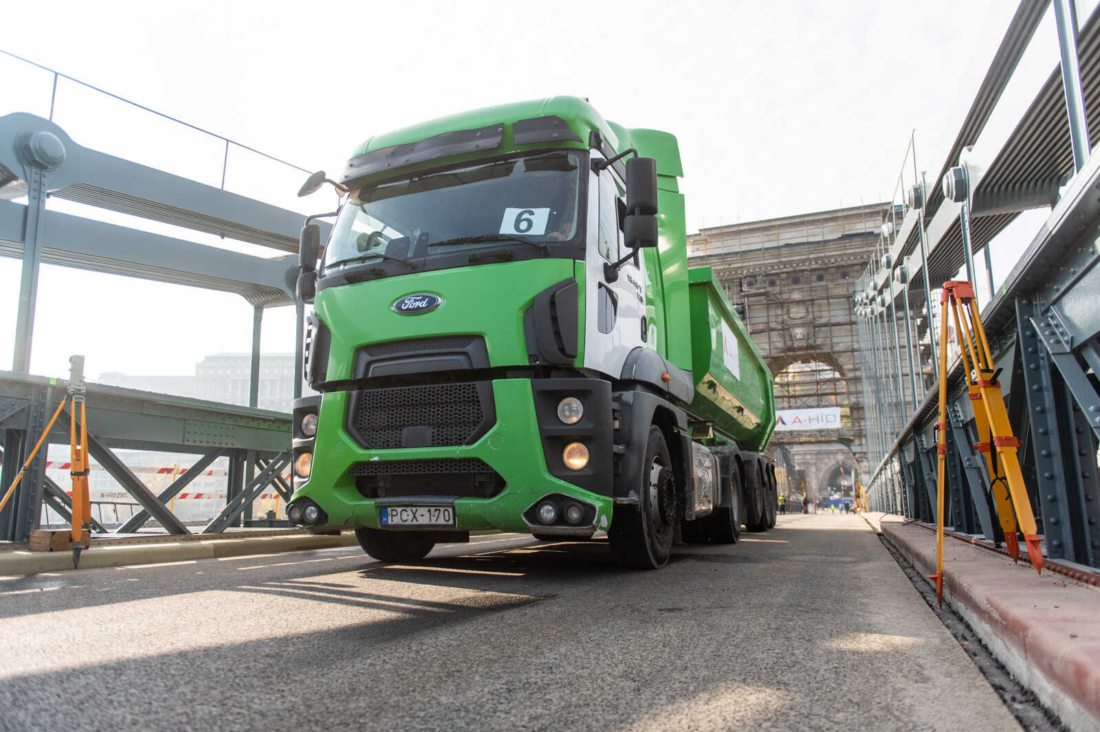 Ezenkívül természetesen azt is mérték, hogyan viselkedik az átkelő, ha nagy tömegű jármű halad át rajta 5, 20 és 30 kilométer per órás, valamint a tehergépkocsival biztonságosan elérhető legnagyobb sebességgel.