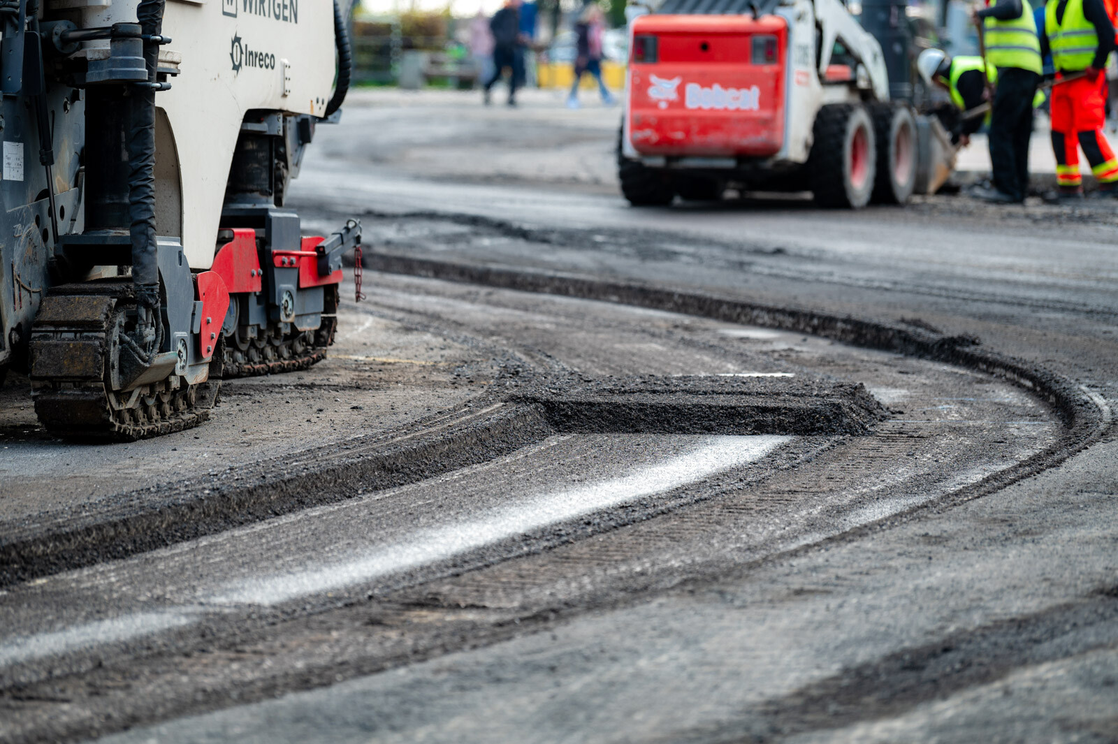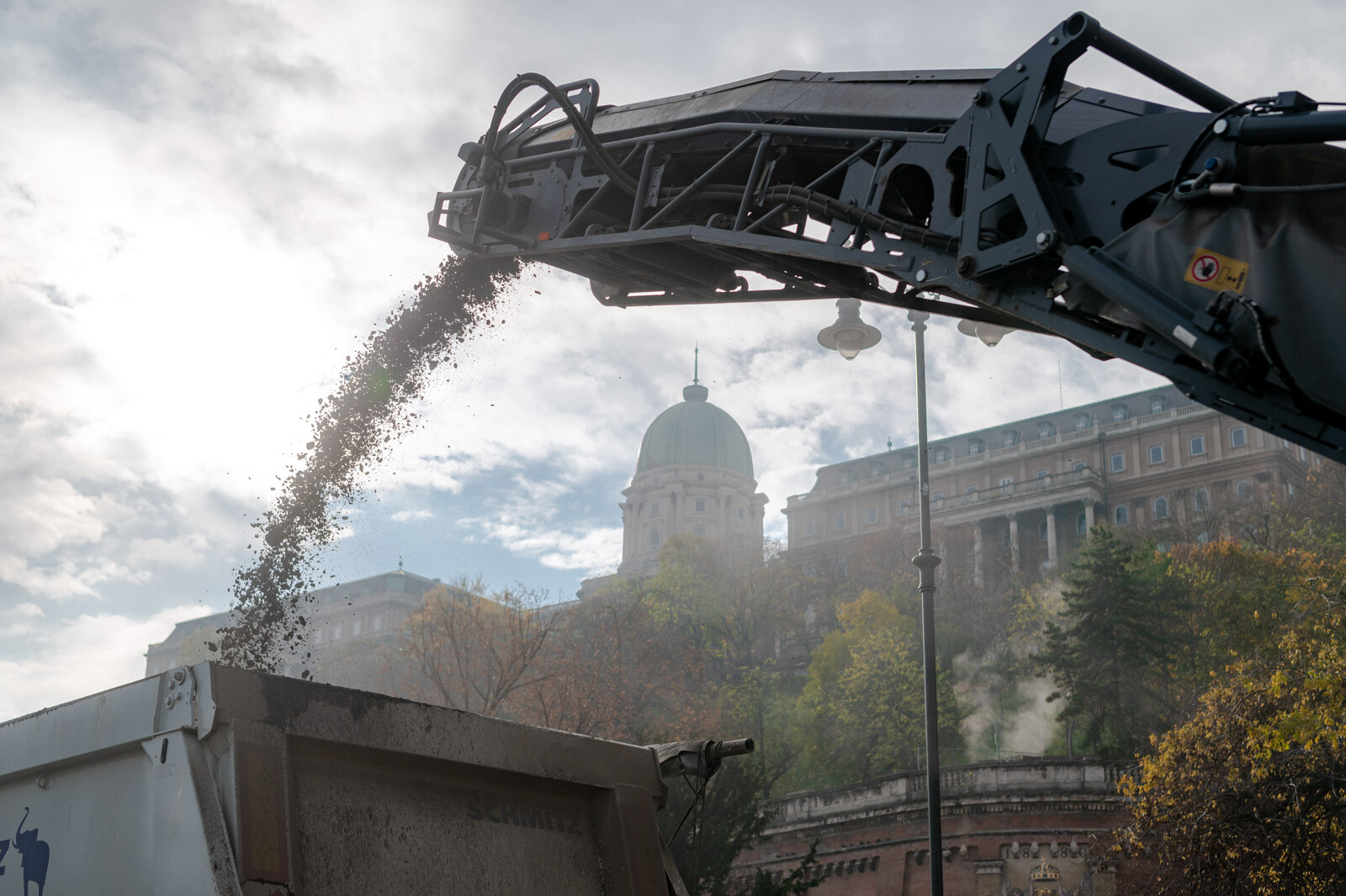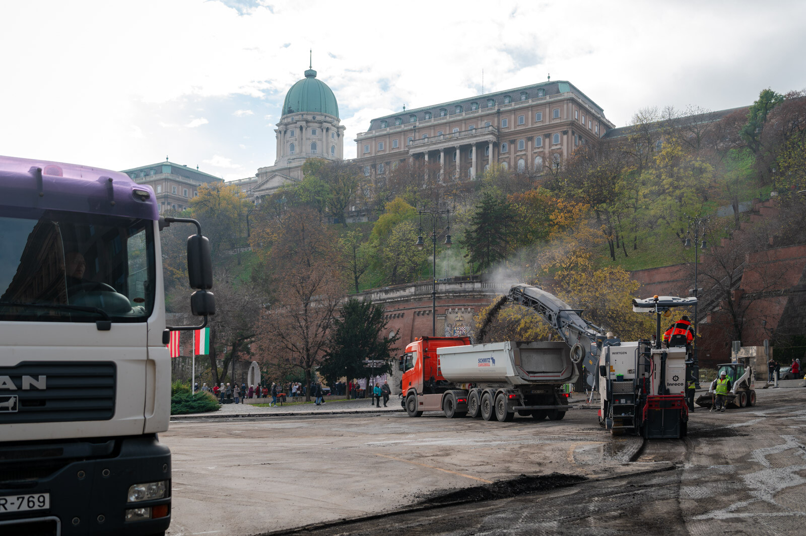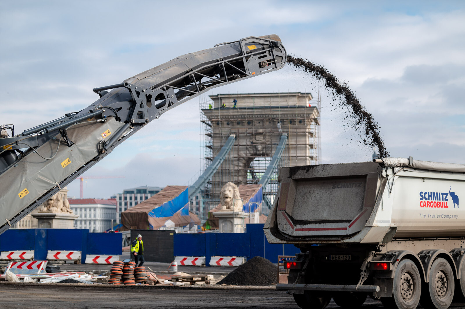 A szakemberek a november 19-20-i hétvégén felmarták a Lánchíd felújításához kapcsolódva tavaly májusban kialakított ideiglenes körforgalom aszfaltját, és helyreállították a korábbról ismert „nagy” körforgalom nyomvonalát, emellett geodéziai kitűzésekkel elkezdték a szegélyek és a szigetek visszaépítését.