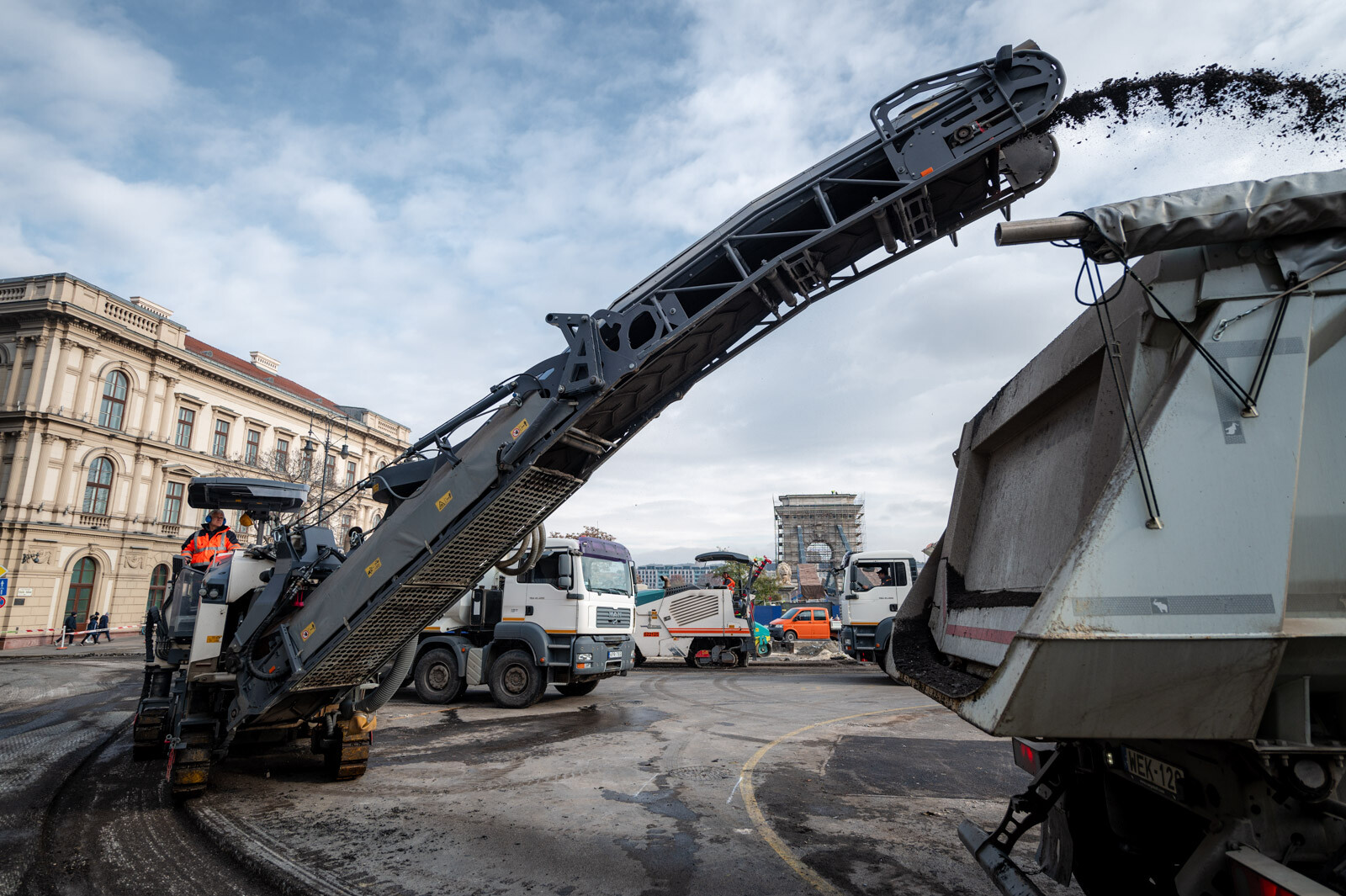 A legfelső aszfalt kopóréteg – az időjárástól függően – a november 26-27-i hétvégén kerül fel, amikor az útépítési munkák miatt ideiglenesen újra lezárják az átmenő forgalom elől a teret. Ekkor festik fel a burkolati jeleket is az útra. A virágágyás kialakításához szükséges humusz folyamatosan fog bekerülni a tér közepére, ahová a füvesítés mellett december közepére az első, téli időjárásnak megfelelő növényeket is visszatelepítik majd – írták.