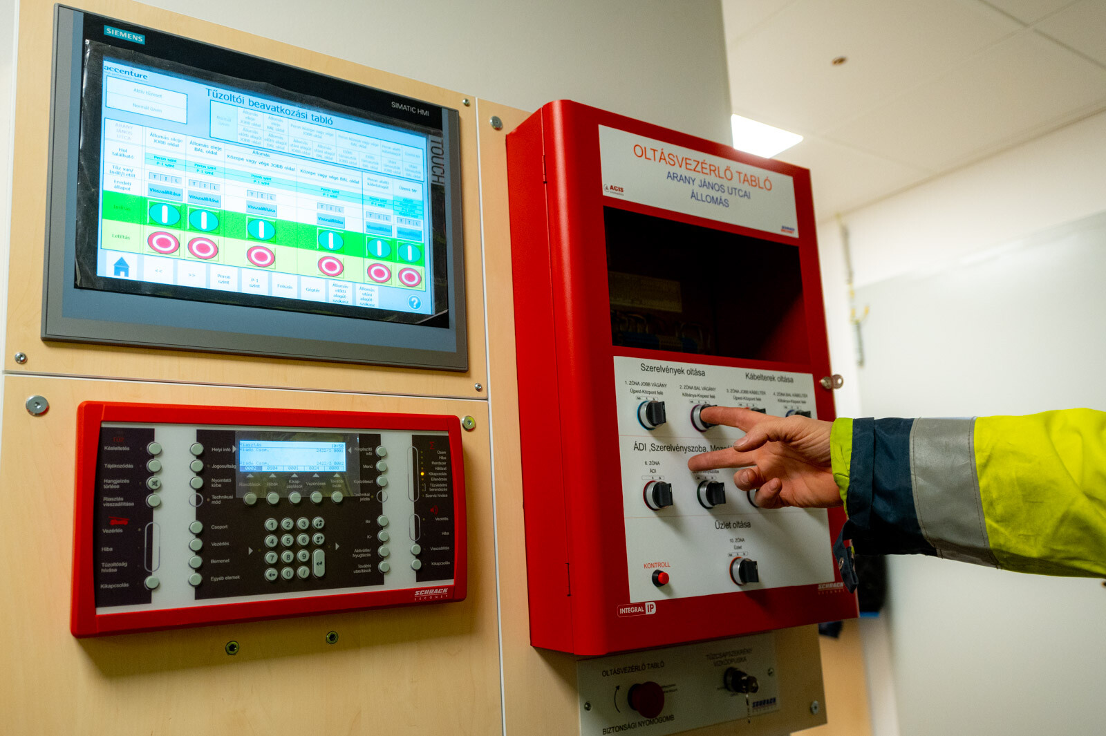 Az ÁDI másik fontos eleme a tűzjelző indító berendezés. Ezen a panelen indítható az oltásvezérlés egy esetleges tűz esetén. Ilyenkor bekapcsolnak a JET-ventilátorok, illetve a vízköddel oltó berendezések is, amelyek vizet porlasztanak a szerelvényszobákban, a kapcsolóterekben, az állomás egész területén, valamint a peronok alatt, a sínek között. Ezeket manuálisan is el lehet indítani, szabályozni.